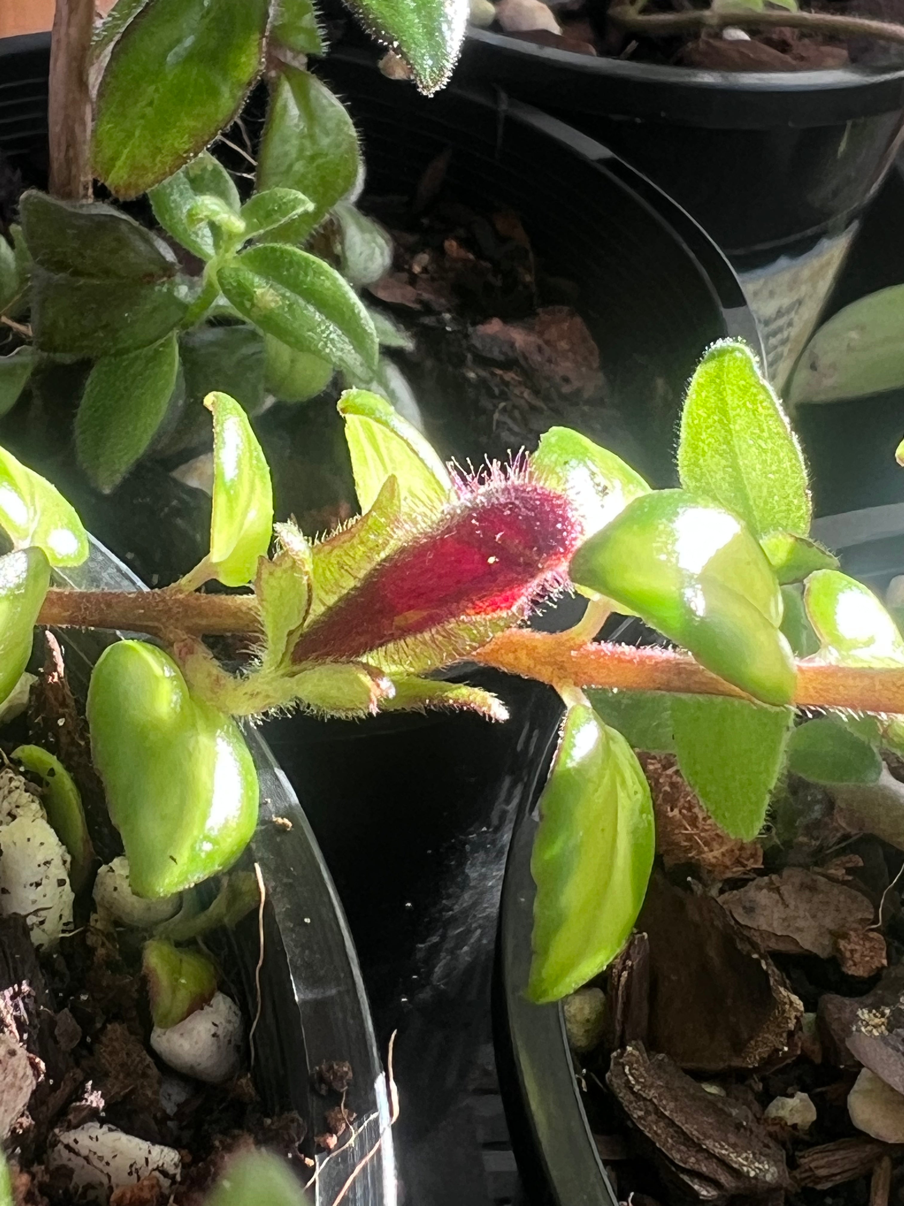Columnea microphylla Variegata is a trailing plant known for its small, ovate leaves with striking white or cream variegation. It is ideal for hanging baskets and has a cascading growth habit and thrives in humid conditions. The plant produces tubular red-to-orange flowers, providing a vibrant contrast against the variegated foliage. Native to tropical rainforests in Central and South America, it often grows as an epiphyte in its natural habitat. This variety is valued for its ornamental foliage and showy flowers, making it popular among collectors.
