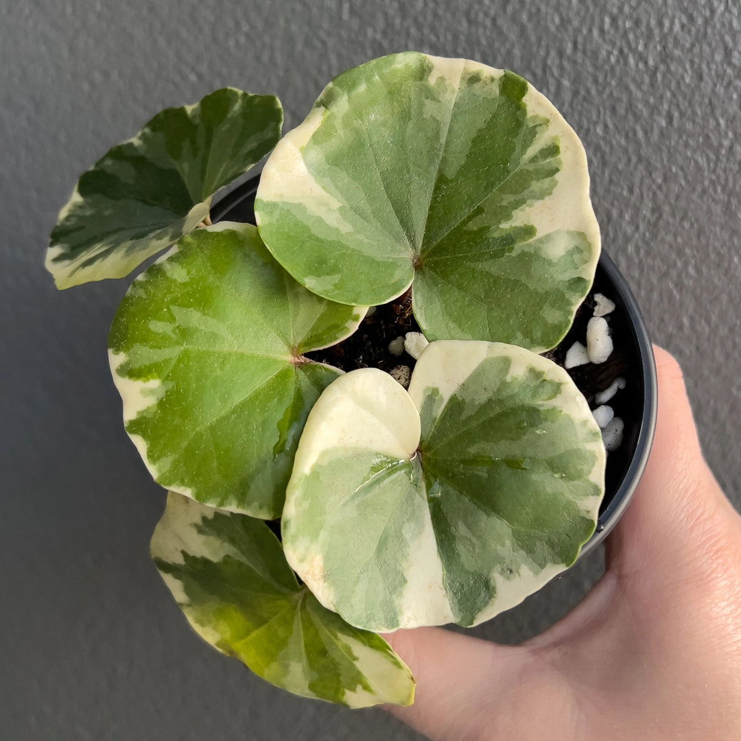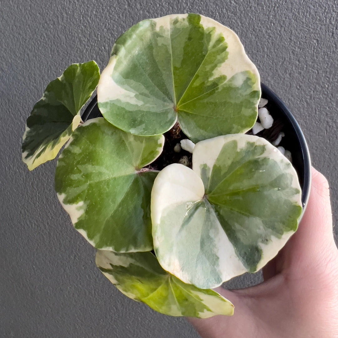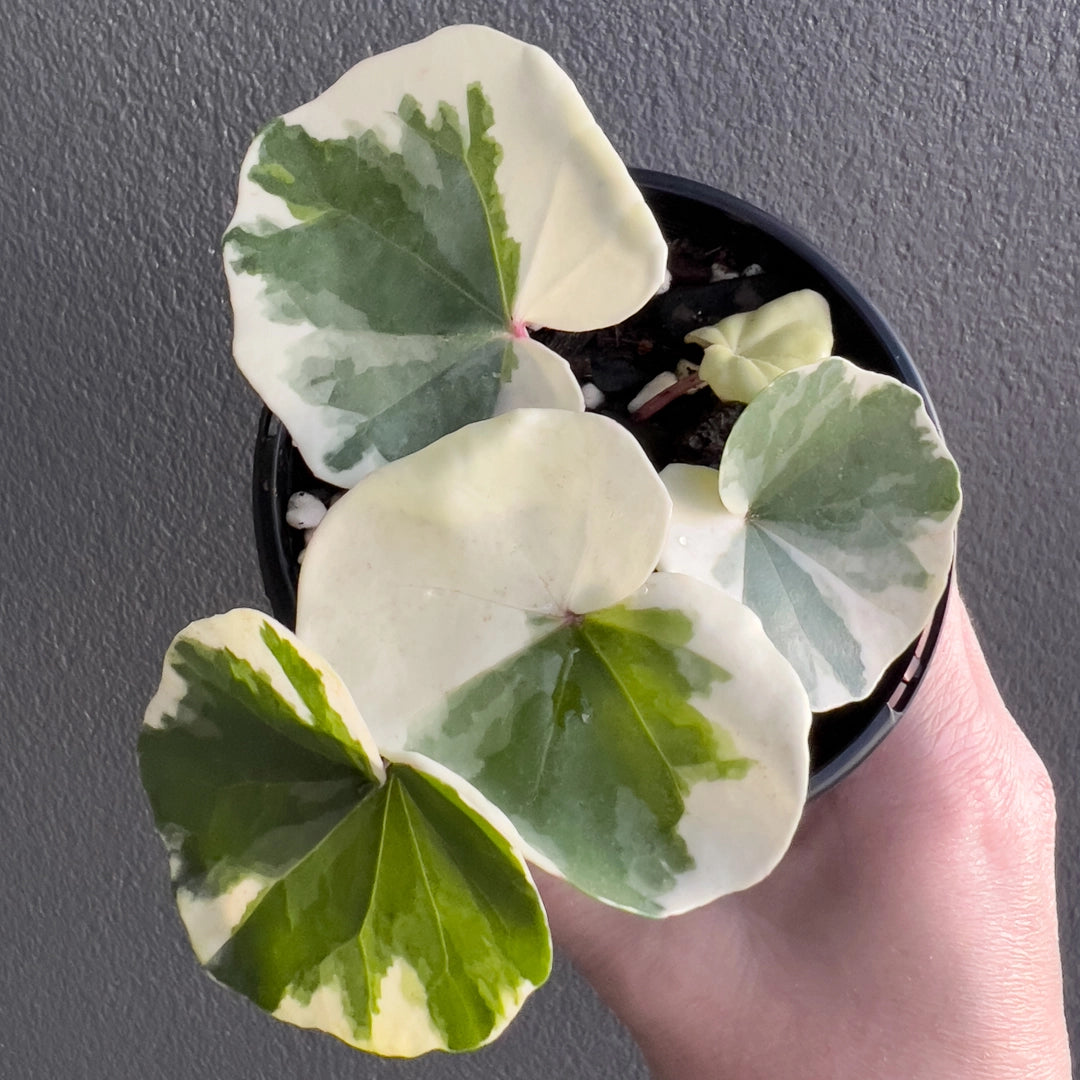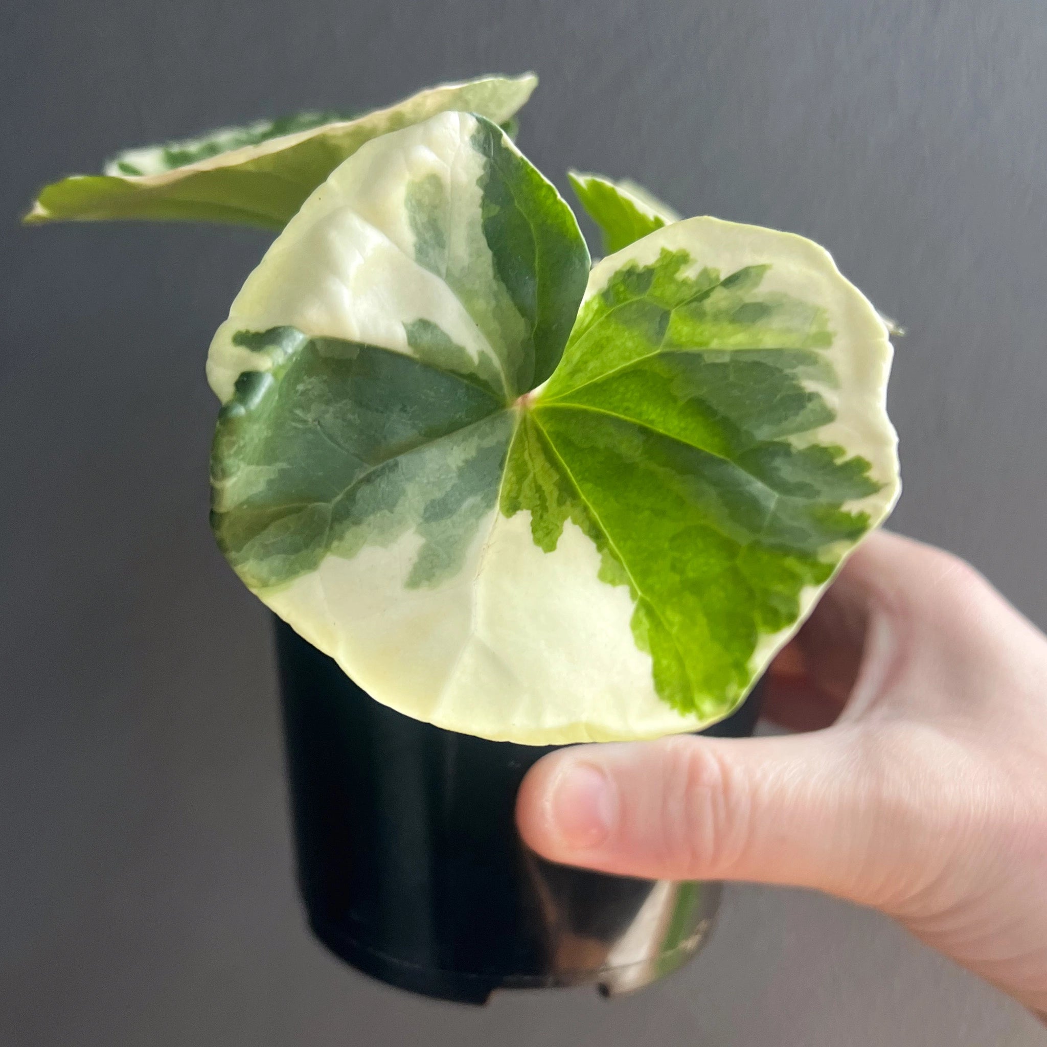 Introducing the Variegated Tractor Seat plant, known as Farfugium japonicum 'Argenteum' variegated and previously known as the Ligularia tussilaginea Albo Marginata.