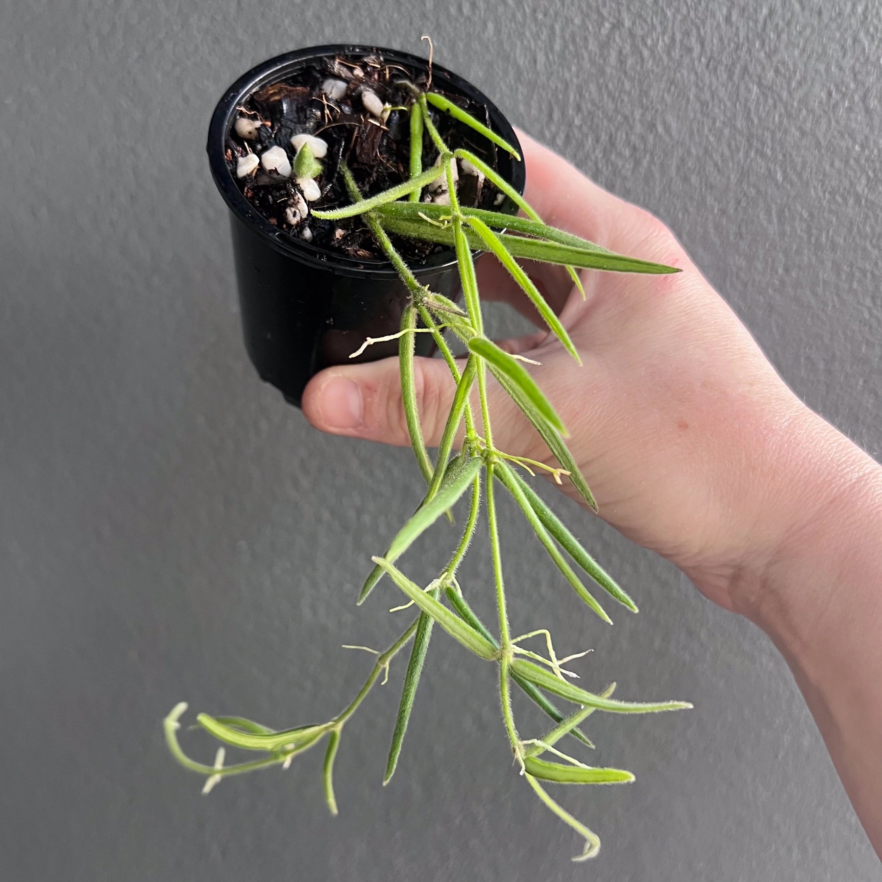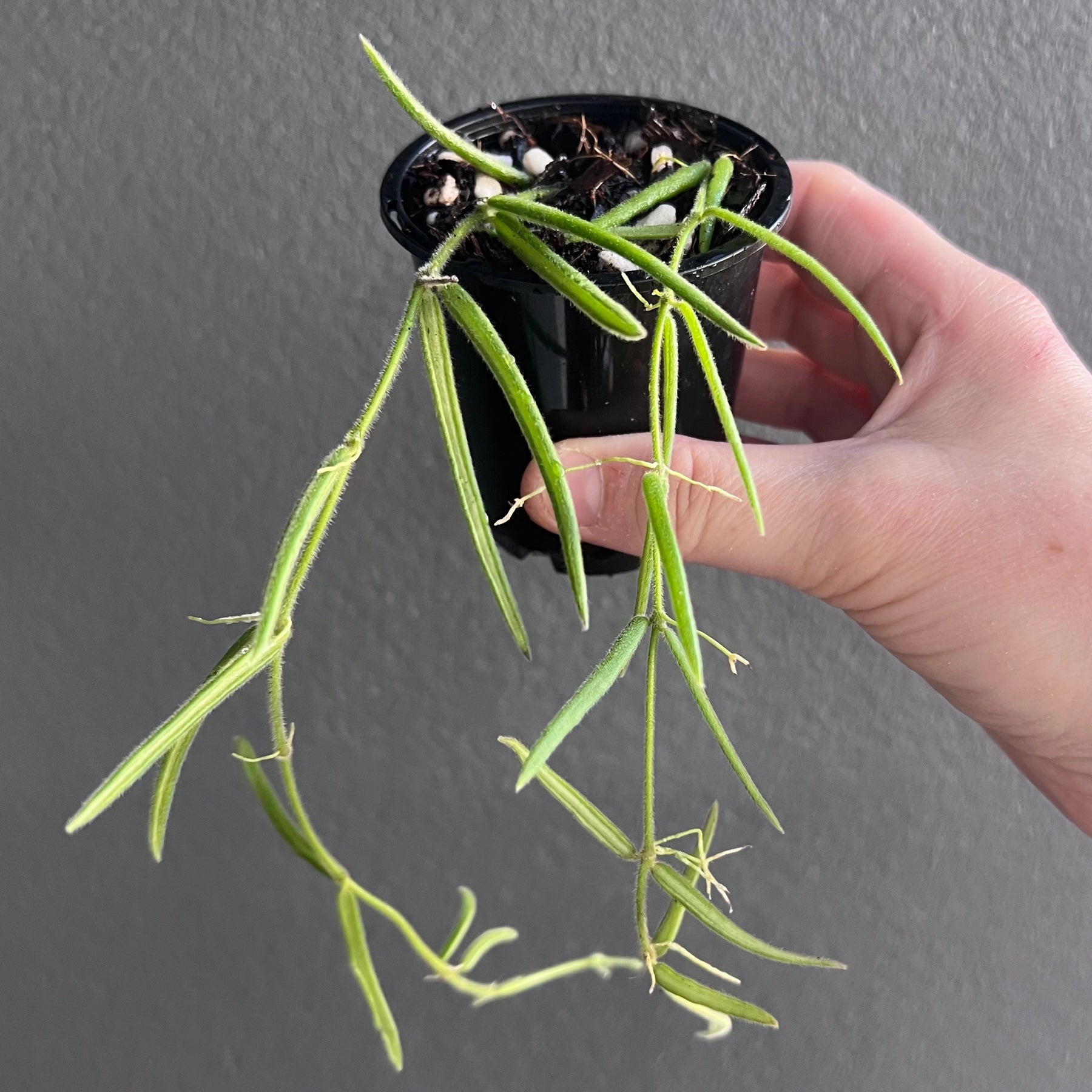 The Hoya linearis is a highly sought-after indoor plant with a unique and distinctive appearance. Unlike other Hoya varieties, its narrow, delicate leaves have a fine, fuzzy texture. This evergreen, succulent-like perennial plant features long stems that hang gracefully, forming a beautiful curtain-like display. In late summer, it produces fragrant white flowers with a lemon scent. Hoya linearis is known for its fast growth during the summer months, making it popular among plant enthusiasts looking for a visually appealing and rapidly developing plant. Its captivating attributes have contributed to its high demand in the plant market.