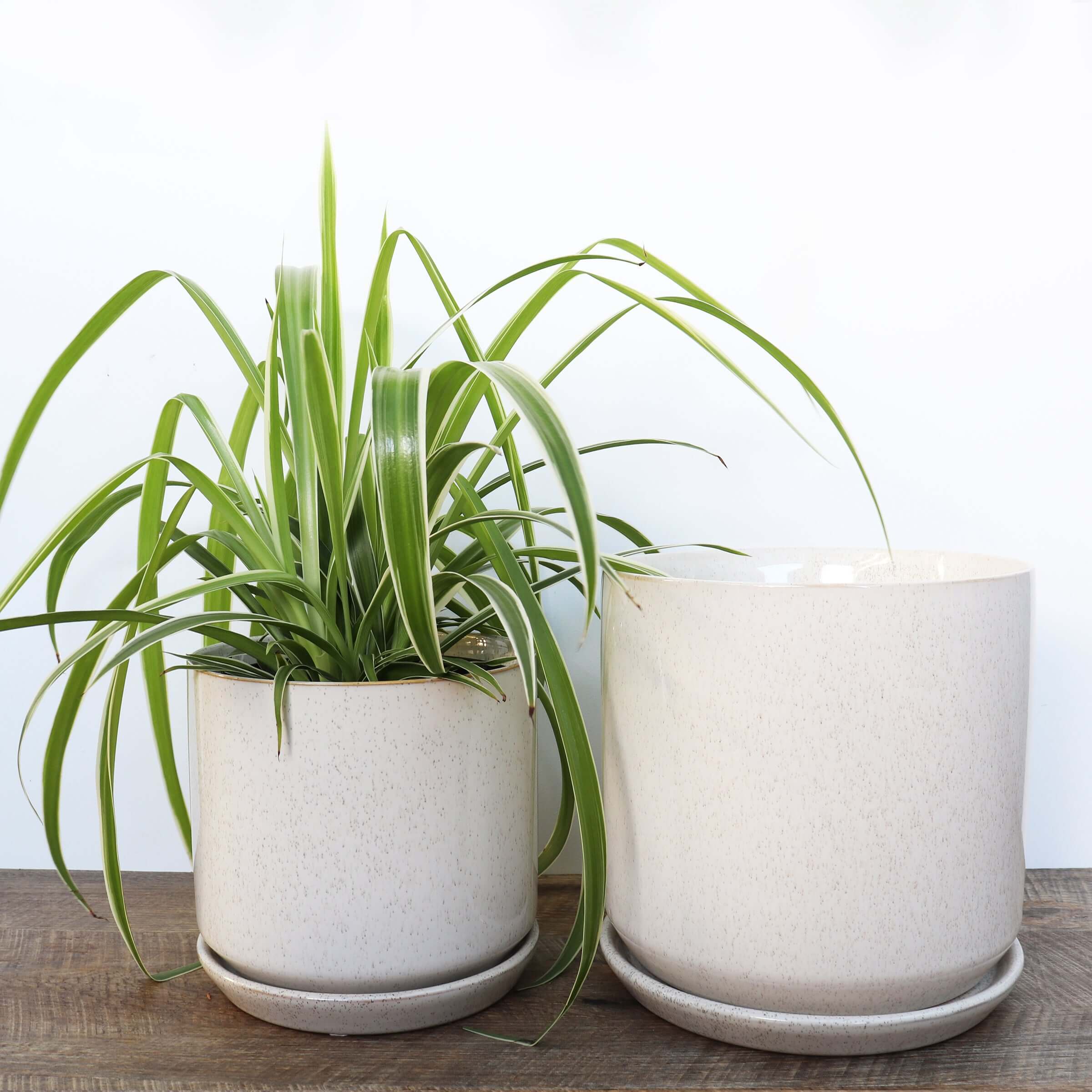 Our Sandstorm ceramic pots have a beautiful gloss finish. They are perfect for potted plants as they have a drainage hole and the base sits in a matching saucer. The simple design complements all interior styles from contemporary to federation homes.