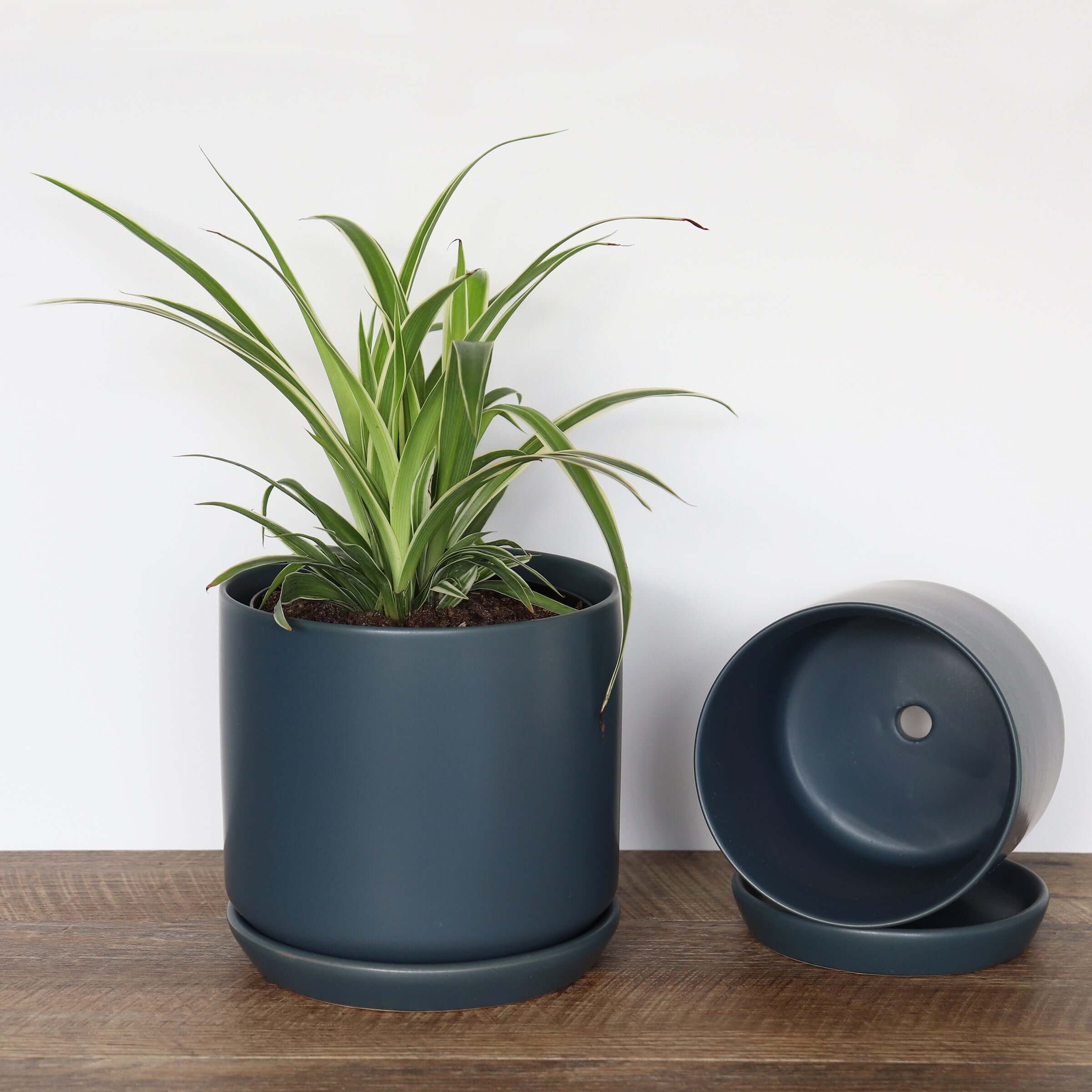 Our gorgeous stoneware pots have a beautiful matte finish. They are a classic combination of form and function. The base sits in a matching saucer which is perfect for potted plants as they have a draining hole. The simple design complements all interior styles from contemporary to federation homes.