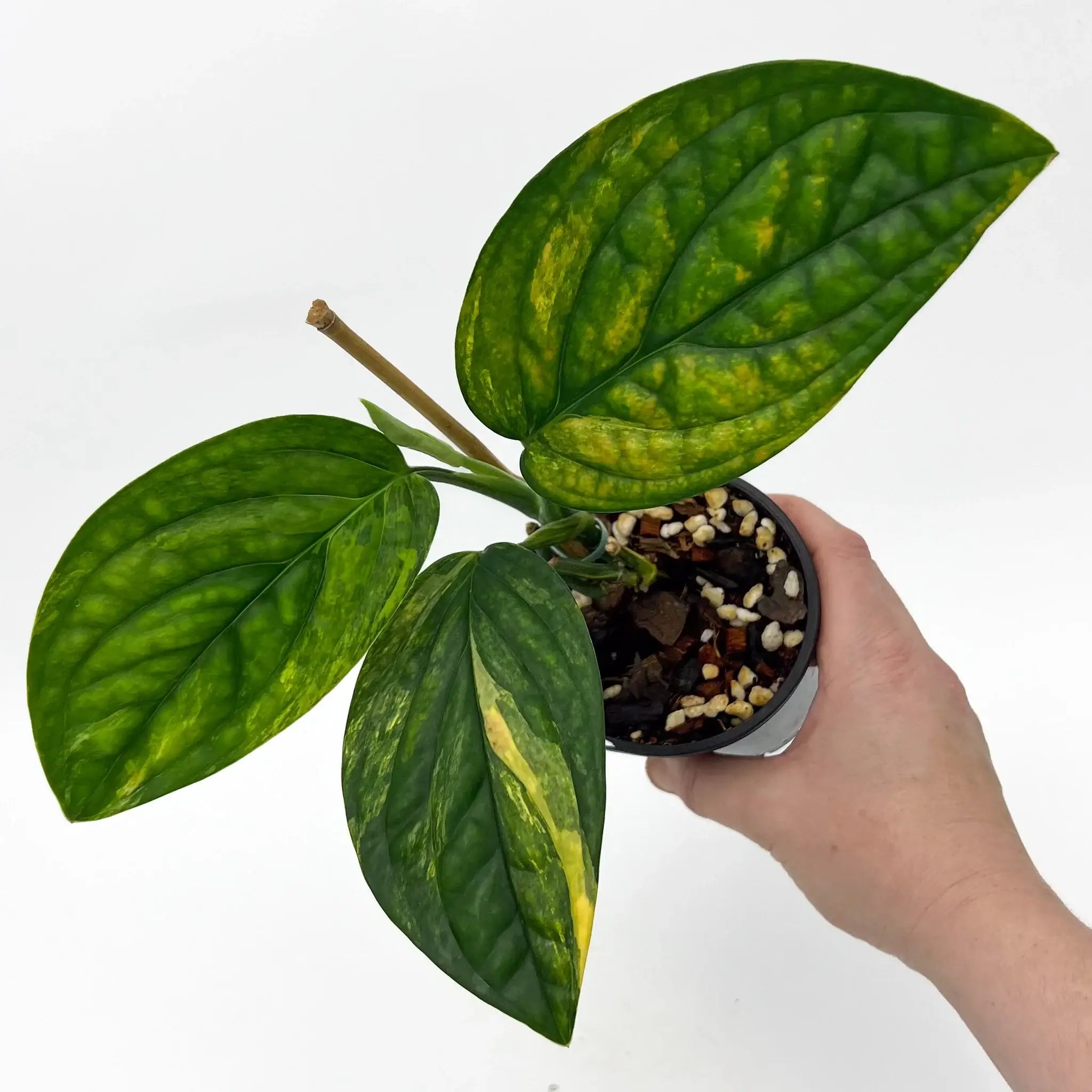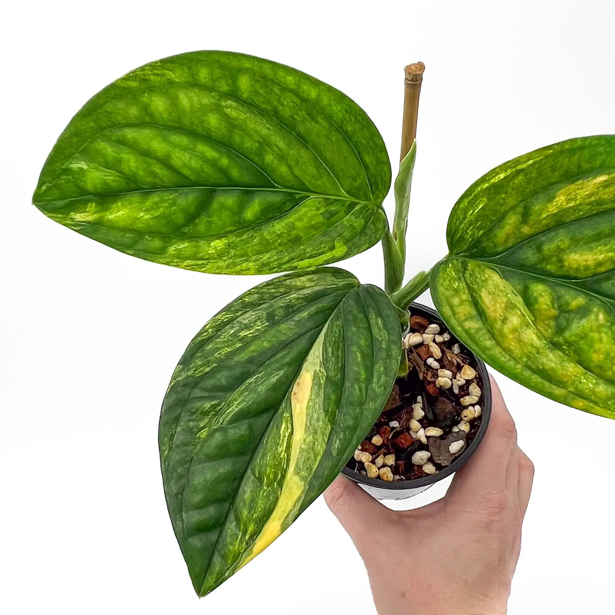 Please note that variegation in the Monstera Peru 'Variegated' may vary, and the brightness of yellow tones in new leaves may require time to develop and harden off. Variegation cannot be guaranteed to remain consistent.