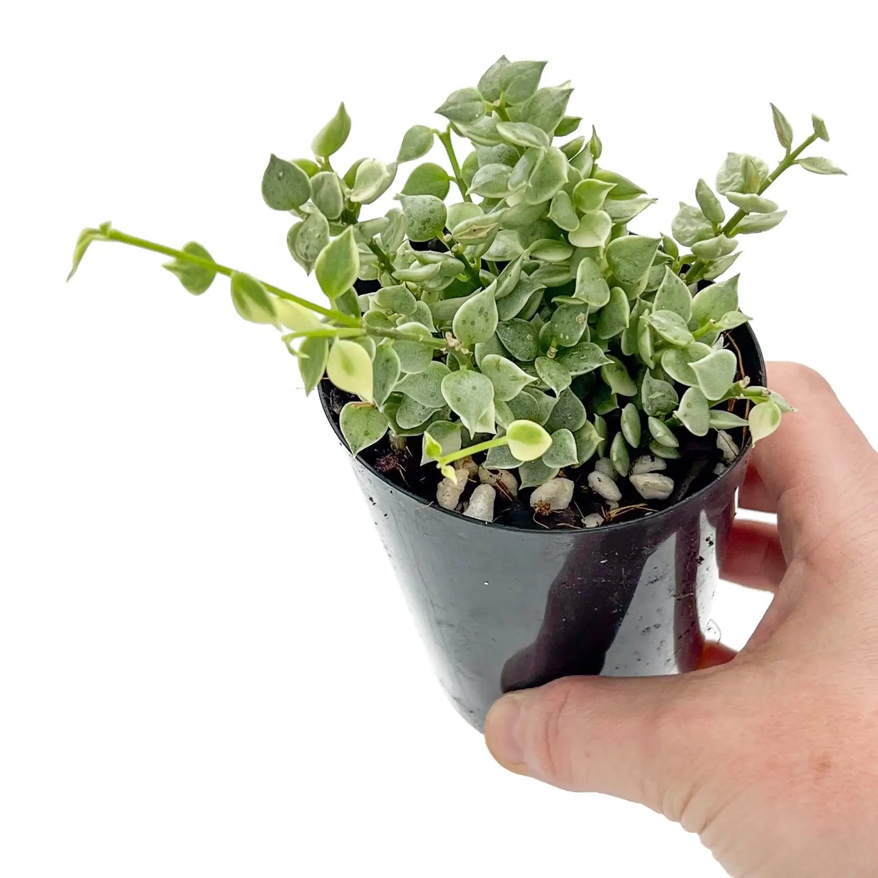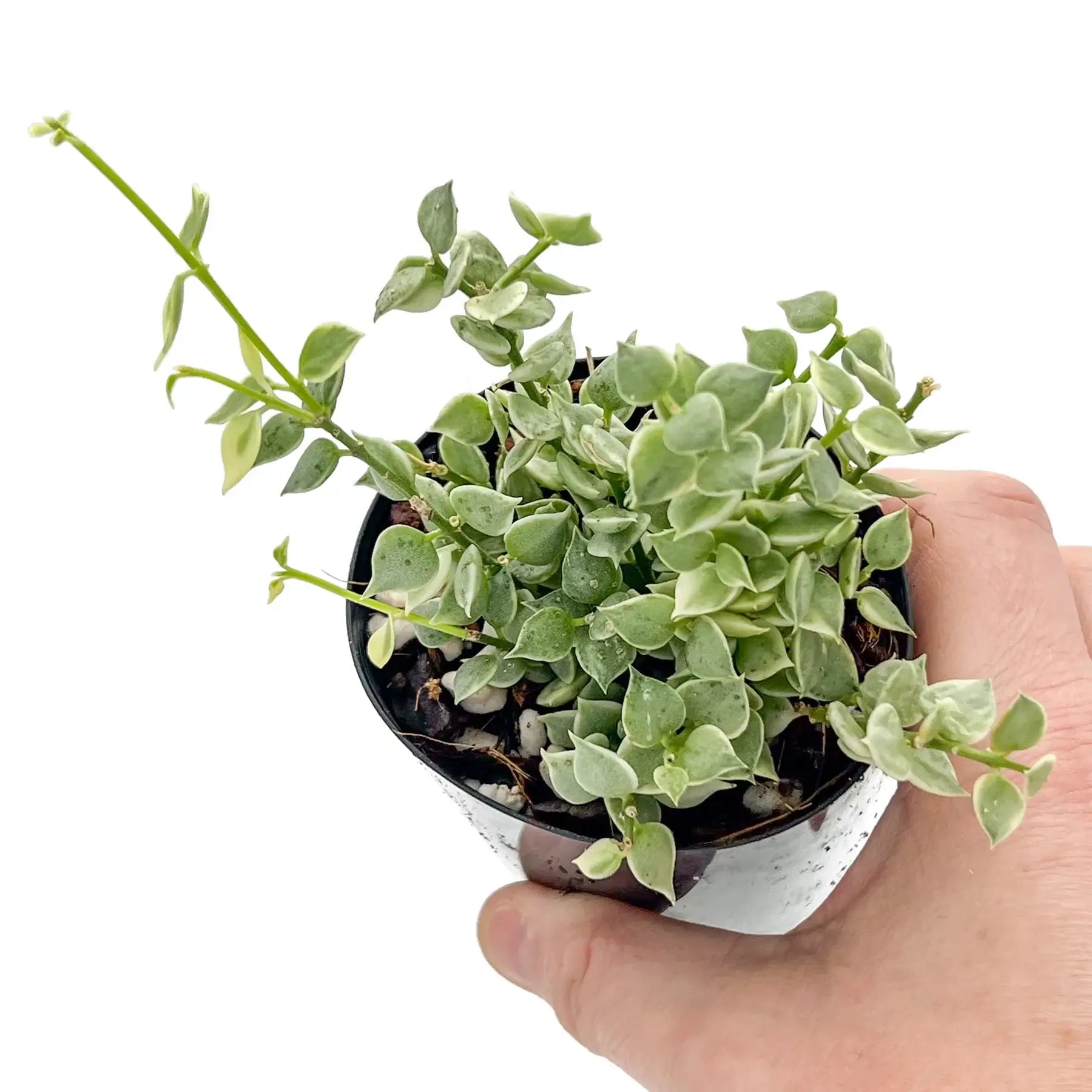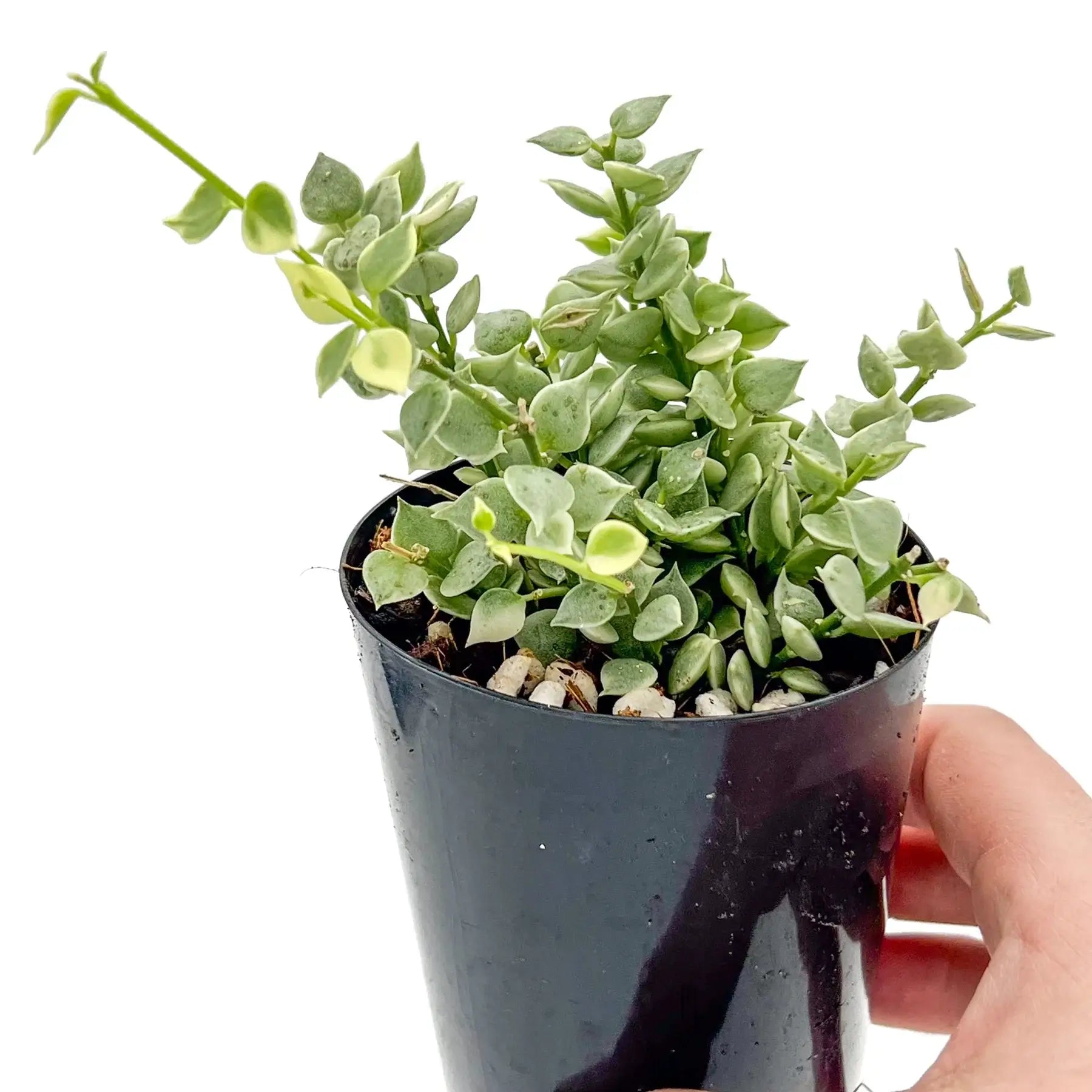 The Dischidia Variegated Million Hearts correct name is the Dischidia ruscifolia albomarginata. It's nicknamed 'Variegated Million Hearts' because of its succulent, heart-shaped leaves that feature delicate matte green colouring and creamy variegated margins. This charming plant boasts slender stems that can reach up to a meter in length, making it an excellent option for hanging baskets. Additionally, the Dischidia 'Variegated Million Hearts' is a fast-growing vine that is highly appealing and visually striking.