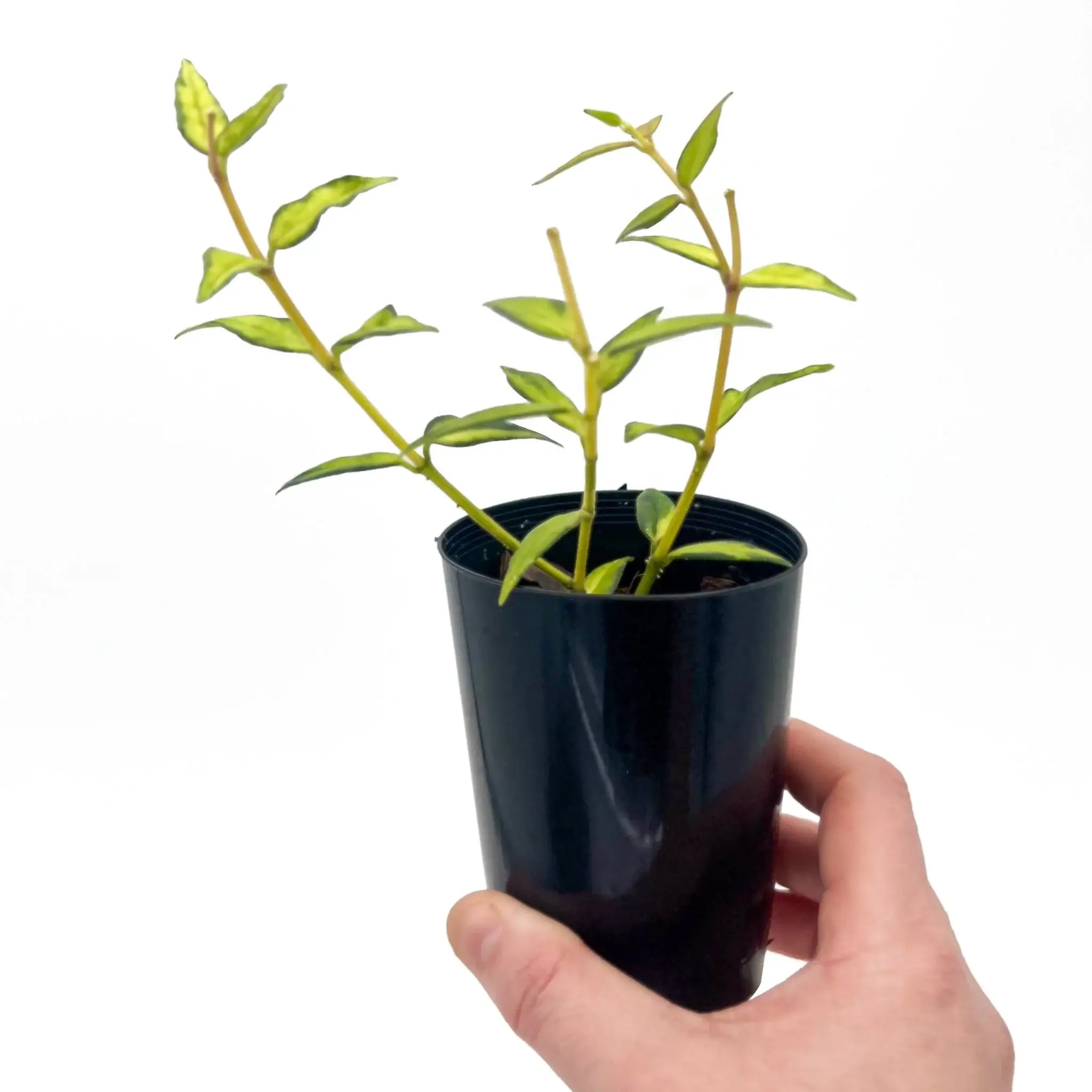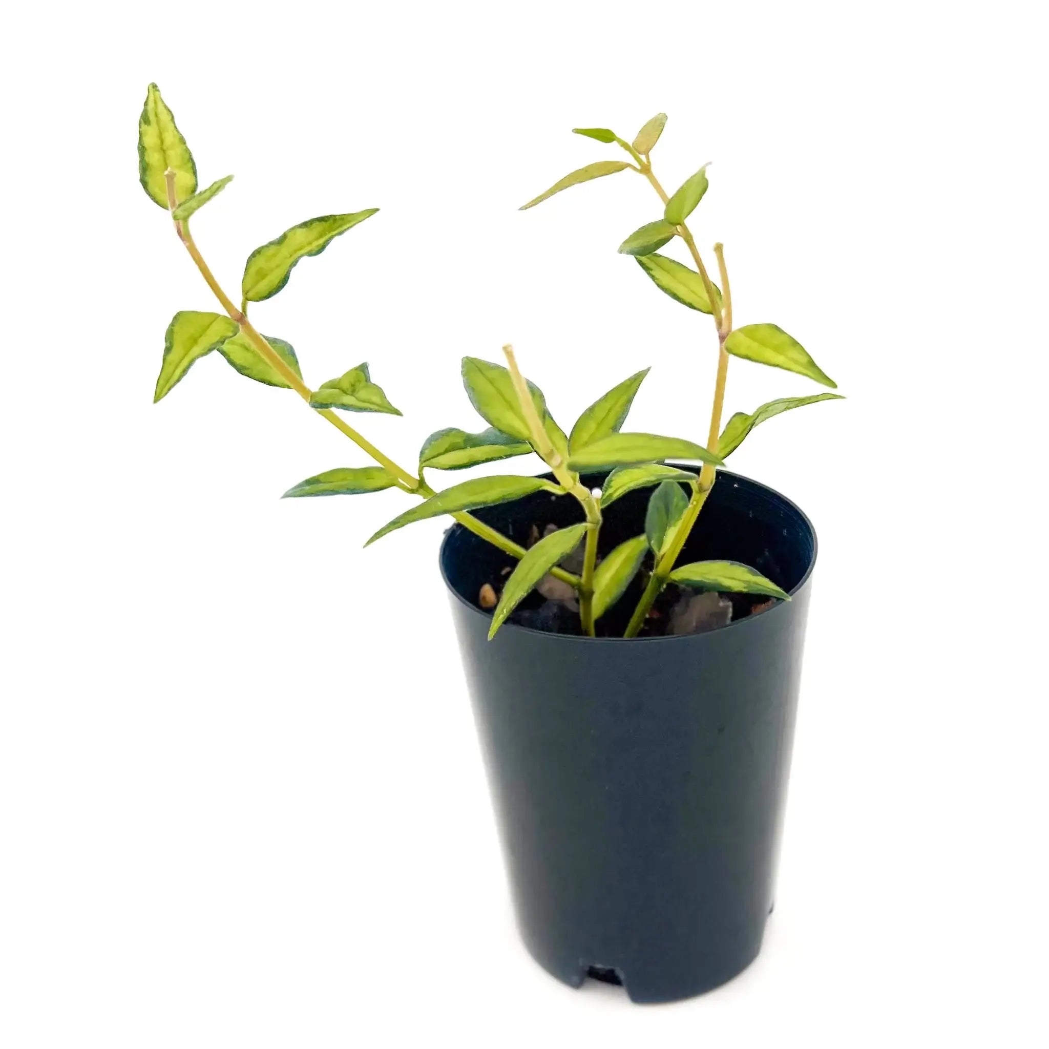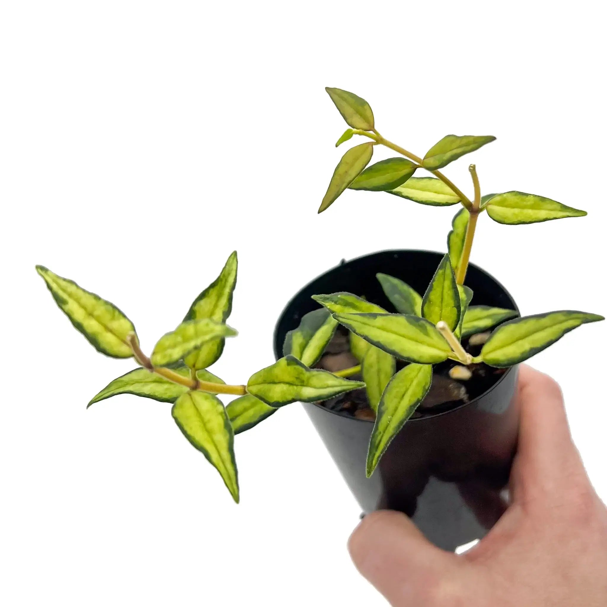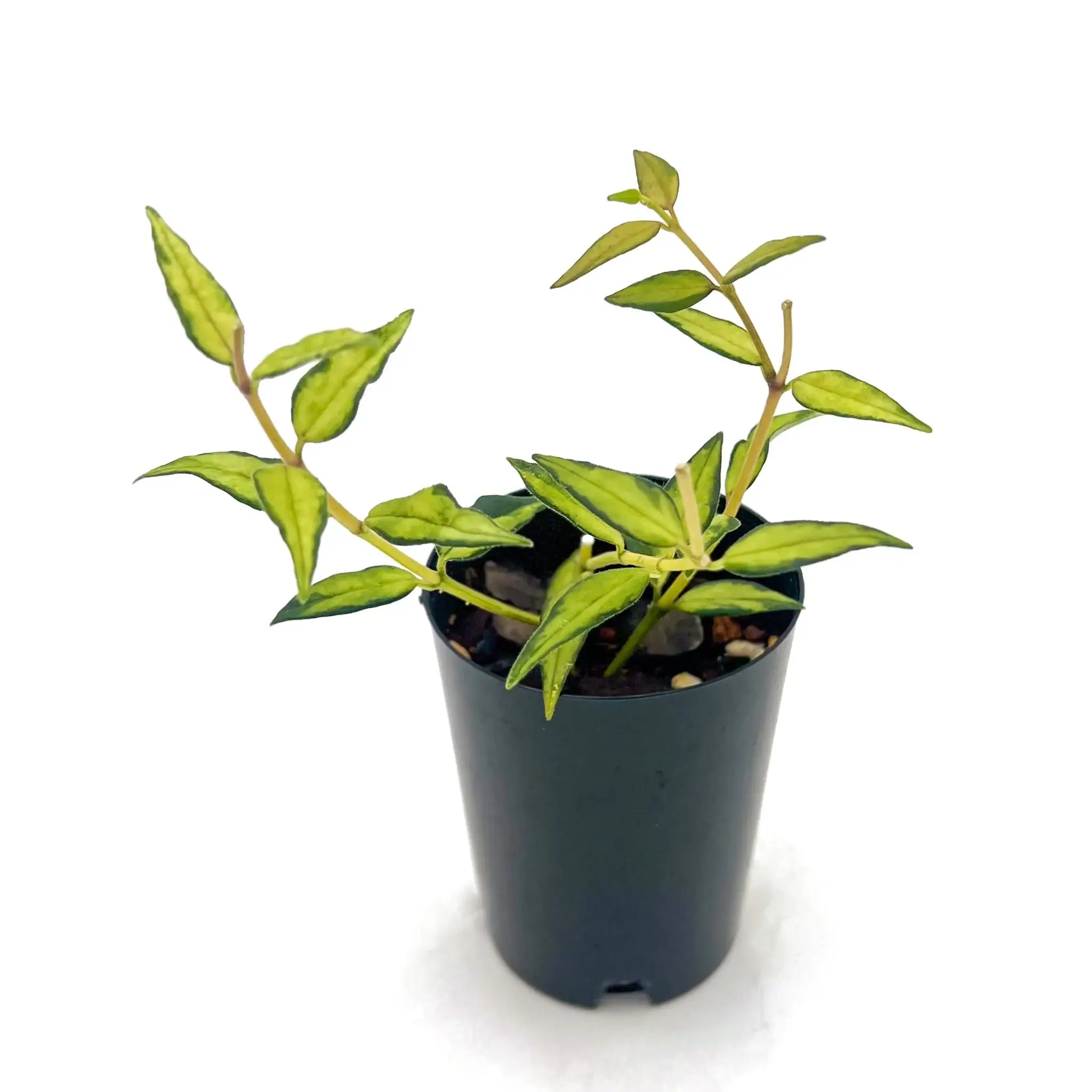 The Hoya bella Inner Variegated 'Luis Bois' is an exceptionally rare variety of Hoya bella, distinct from the 'Anneke Buis' in its striking leaf characteristics. The Hoya bella Inner Variegated 'Luis Bois' leaves have dark green margins with creamy/white to light green interiors. Its growth habit mirrors its counterparts, with trailing vines that gracefully cascade from hanging baskets or small pots. During the blooming season, it can produce clusters of tiny star-shaped flowers however they aren’t as prolific at flowering as the common variety. Hoya bella Inner Variegated 'Luis Bois' is a must-have for avid plant collectors.