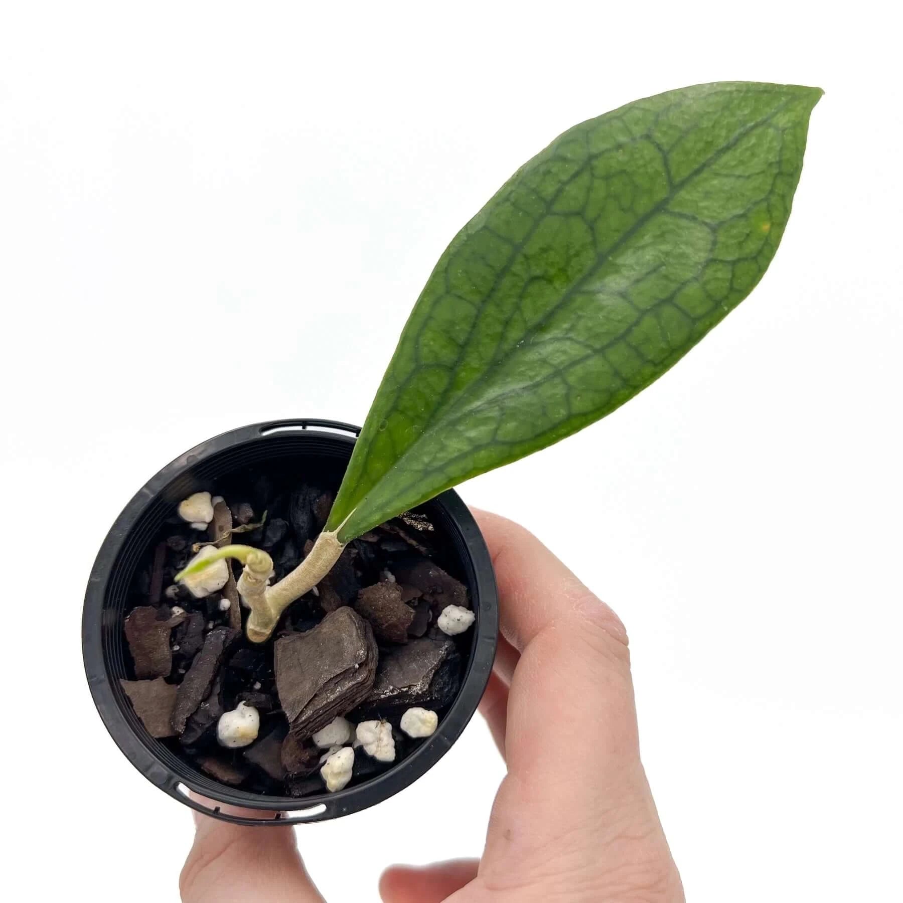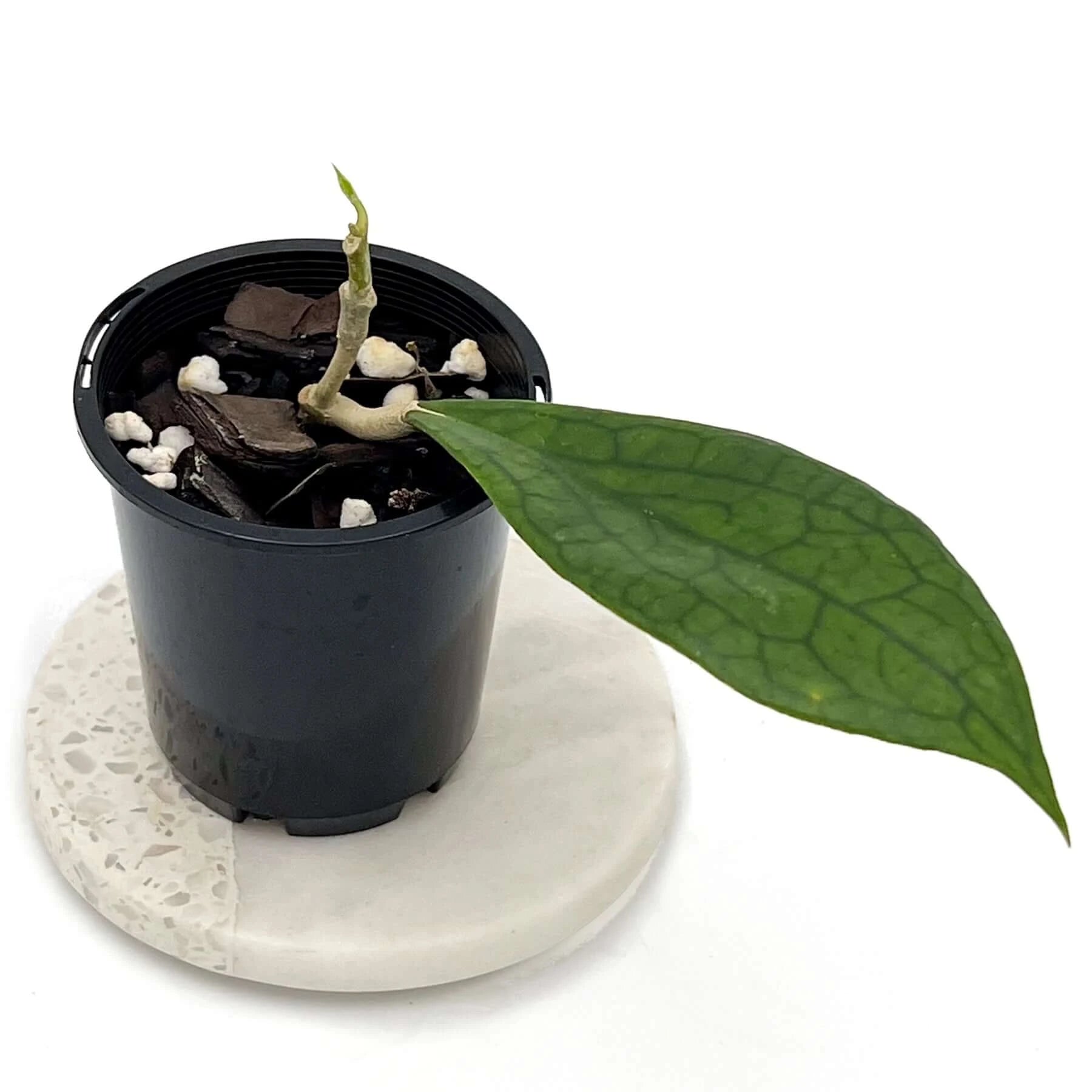 The Hoya sp. jennifer is a beautiful hybrid of incrissata x finlaysonii. Its leaf form exhibits traits of the incrissata while showcasing the finlaysonii venation. Hoya 'jennifer' is a species that grows slowly and has lovely light green leaves with noticeable dark green veins—reflexed creamy-yellow flowers with delicious dark maroon tips, measuring 10mm across, with cream corona. You'll need a trellis or hanging basket.