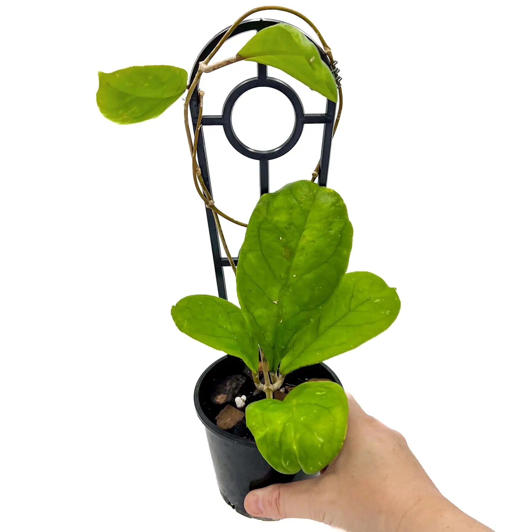 Hoya Viola is a vining plant known for its big, showy leaves with visible venetations. The Hoya Viola is a cultivar of the Hoya deykeae and the Hoya vitellina. The colour of its blooms is a buttery-yellow with a cream corona. The Hoya Viola produces sweetly scented flowers like ginger.