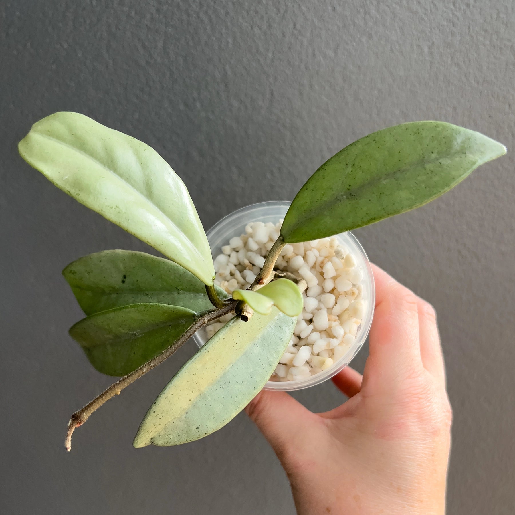 Hoya Wilbur Graves Super Silver is a stunning, highly variegated collectable Hoya prized for its silvery foliage. The leaves showcase an intense silver variegation that contrasts beautifully with the plant’s green undertones, creating a shimmering effect under the right light. Known for its compact, slow-growing habit, this Hoya is perfect for experienced collectors who can provide stable conditions, such as high humidity and bright, indirect light. With proper care, it may also produce clusters of small, fragrant flowers.