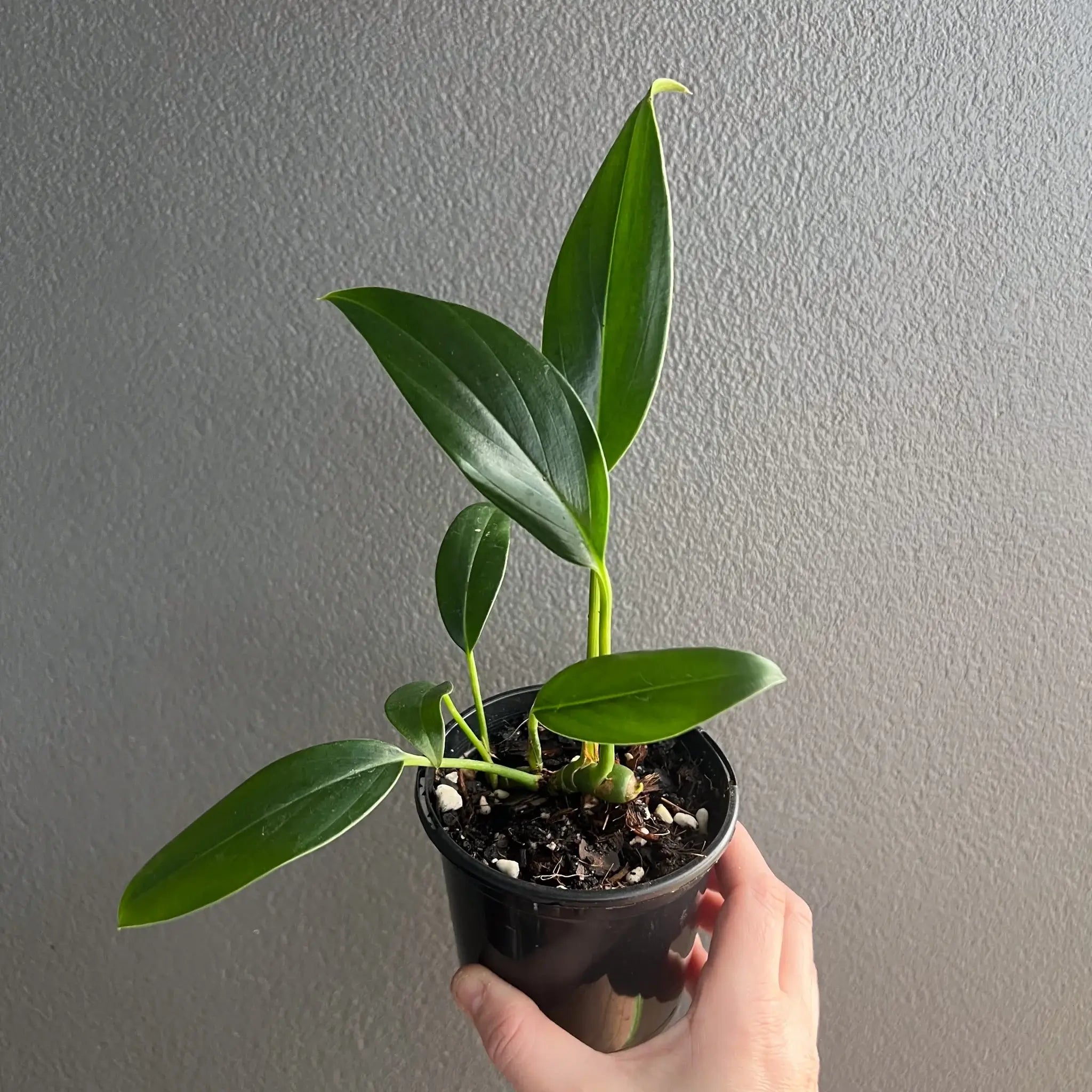 Rhaphidophora neglecta is a rare and compact species with thick, leathery leaves that hold a deep, glossy green tone. The foliage is oval to lance-shaped with subtle texture and a slight ripple along the edges. Known for its tidy growth habit, it stays relatively small and upright compared to other Rhaphidophora species, making it ideal for collectors who favour less sprawling plants. New growth emerges on sturdy, upright stems, creating a dense and elegant display. This species is native to New South Wales. It’s a climbing plant that naturally thrives in subtropical environments.