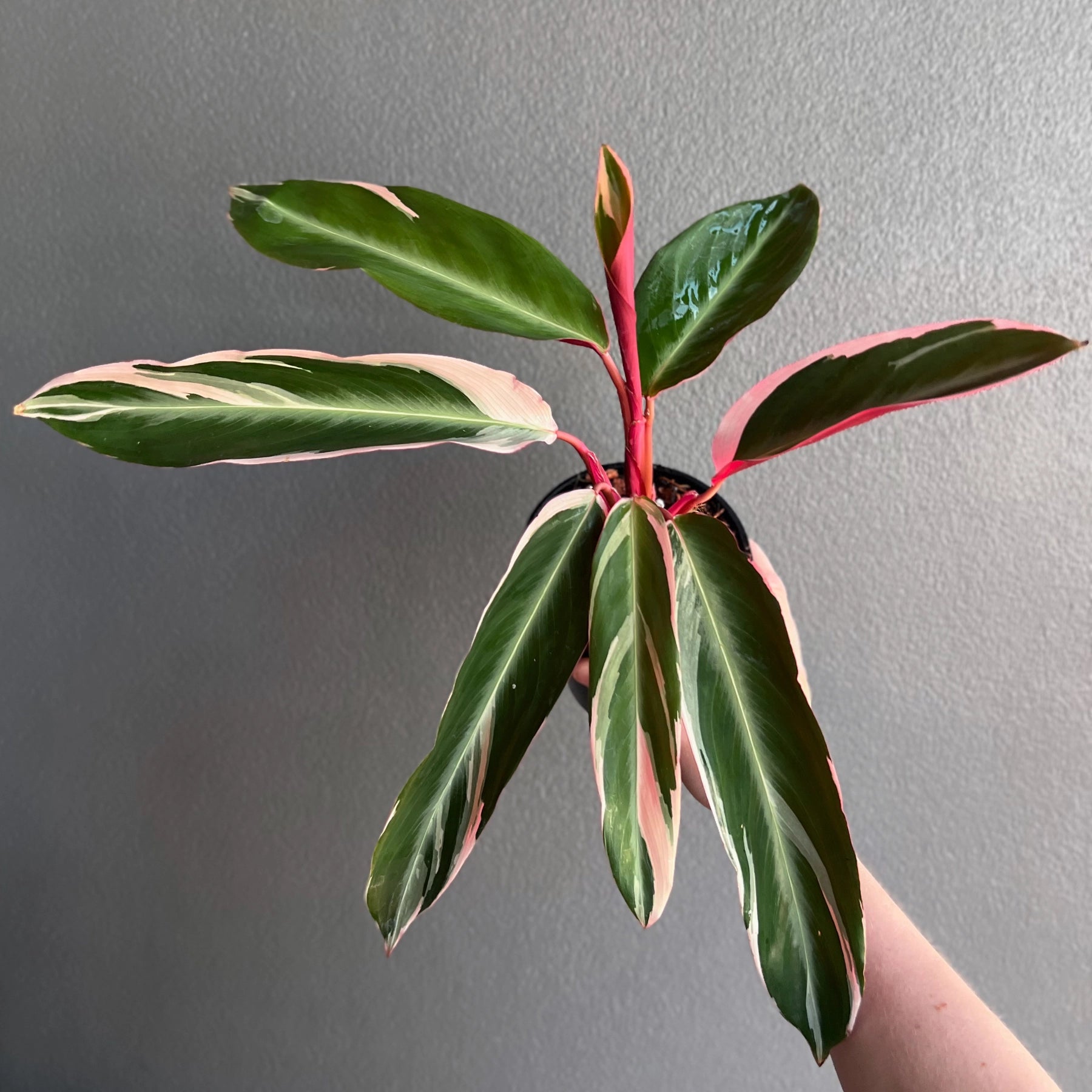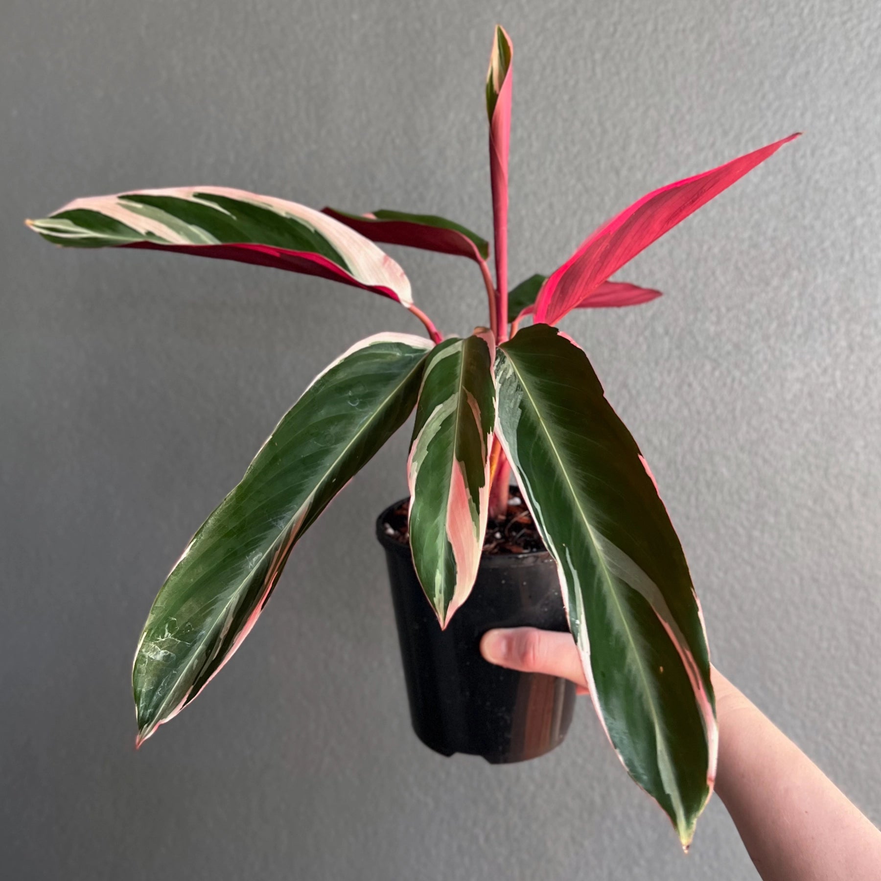 Stromanthe sanguinea Tricolour is a striking tropical plant known for its vibrant, tricoloured foliage.