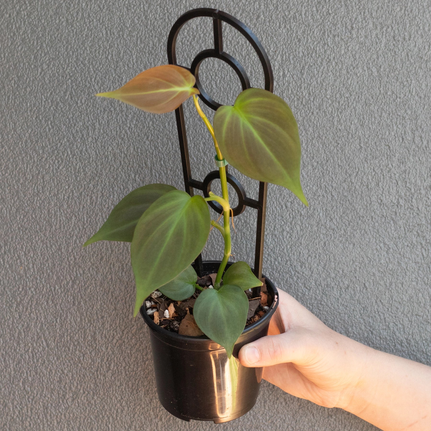 The Philodendron camposportoanum, also known as the Philodendron Green Shield, has vibrant emerald leaves with a subtle bronze blush. As the Philodendron camposportoanum matures, its leaves transform into a trilobed configuration and a deepening bronze hue. A hidden gem in the world of Aroid enthusiasts, this variety is often underrated. Once established, it flourishes as a vigorous climber; its green foliage has a velvety texture. Named for its shield-like leaf shape when fully developed, the Philodendron camposportoanum thrives on climbing totems. Its care is marked by its easy-care nature. It prefers moist yet well-drained soil to prevent overwatering and thrives in indirect sunlight. This Philodendron variety encapsulates grace and resilience, making it an essential addition to all collections.