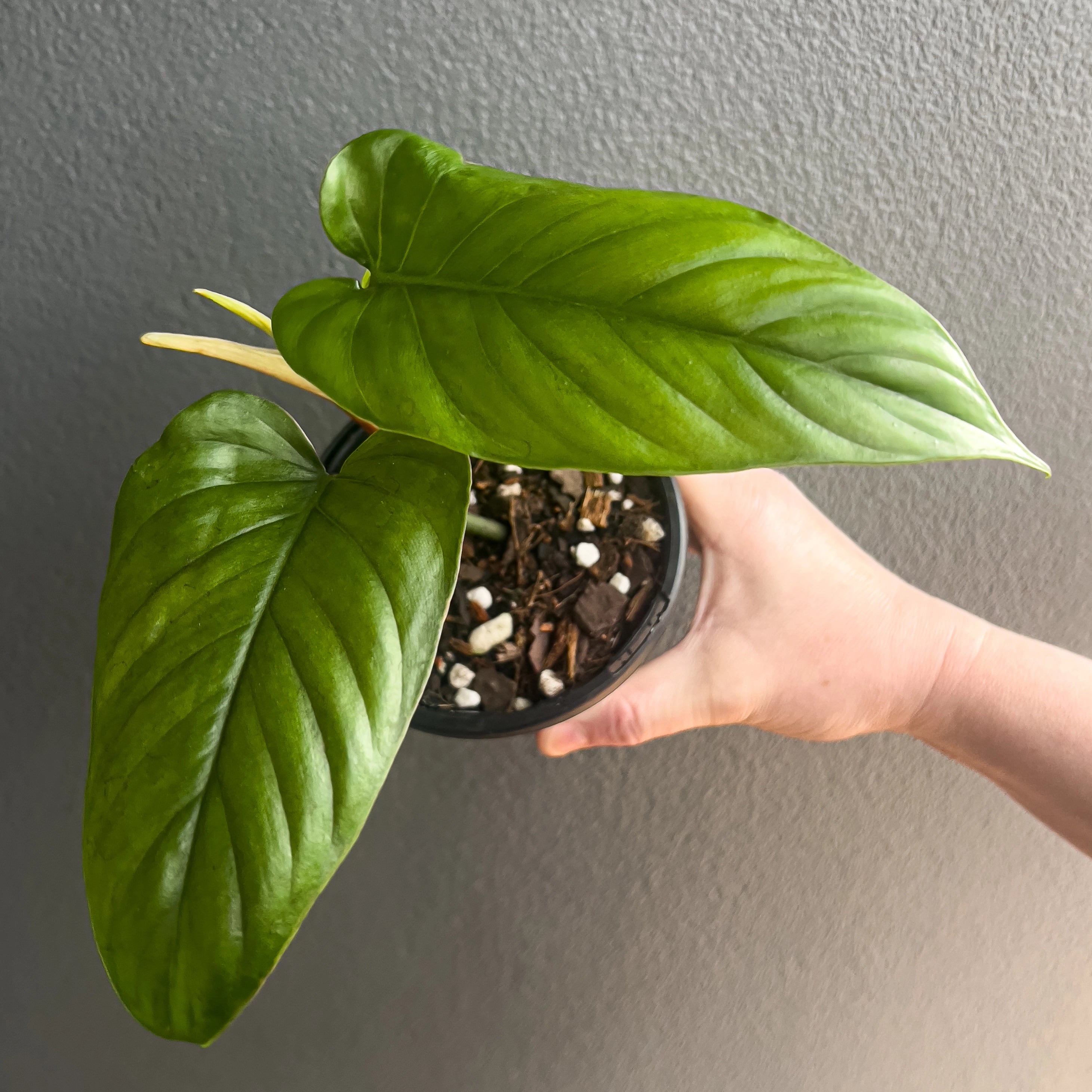 The Philodendron ernestii is a tropical plant renowned for its lanceolate-shaped leaves, which are elongated and taper to a point at each end. These glossy green leaves exhibit vibrant shades of deep green and display prominent veining patterns. As a climber, Philodendron ernestii can either climb a growing pole if provided or trail gracefully. Its lush foliage and elegant form make it an enchanting addition to any indoor or outdoor plant collection.