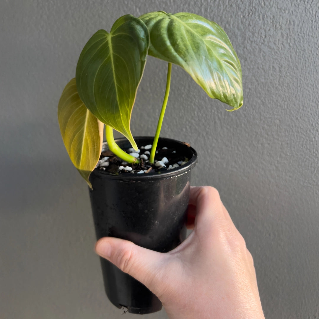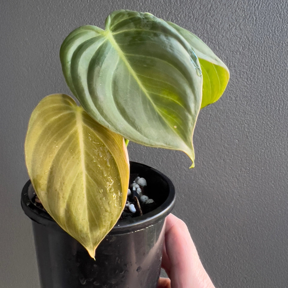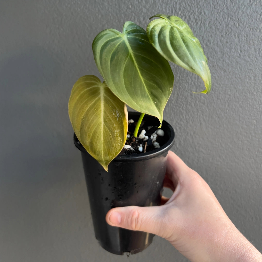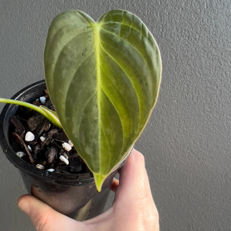 Philodendron 'Glorious', a stunning hybrid of Philodendron gloriosum and Philodendron melanochrysum, combines the best traits of both velvet-leafed varieties. Its leaves feature a velvety texture with soft pink undertones reminiscent of melanochrysum, paired with the larger, faster-growing nature of gloriosum. The foliage is slightly longer and narrower than gloriosum but shorter than melanochrysum, making it a beautiful balance between the two. This versatile plant can climb when given support, such as a moss pole, or crawl depending on the conditions provided, adding adaptability to its charm.
