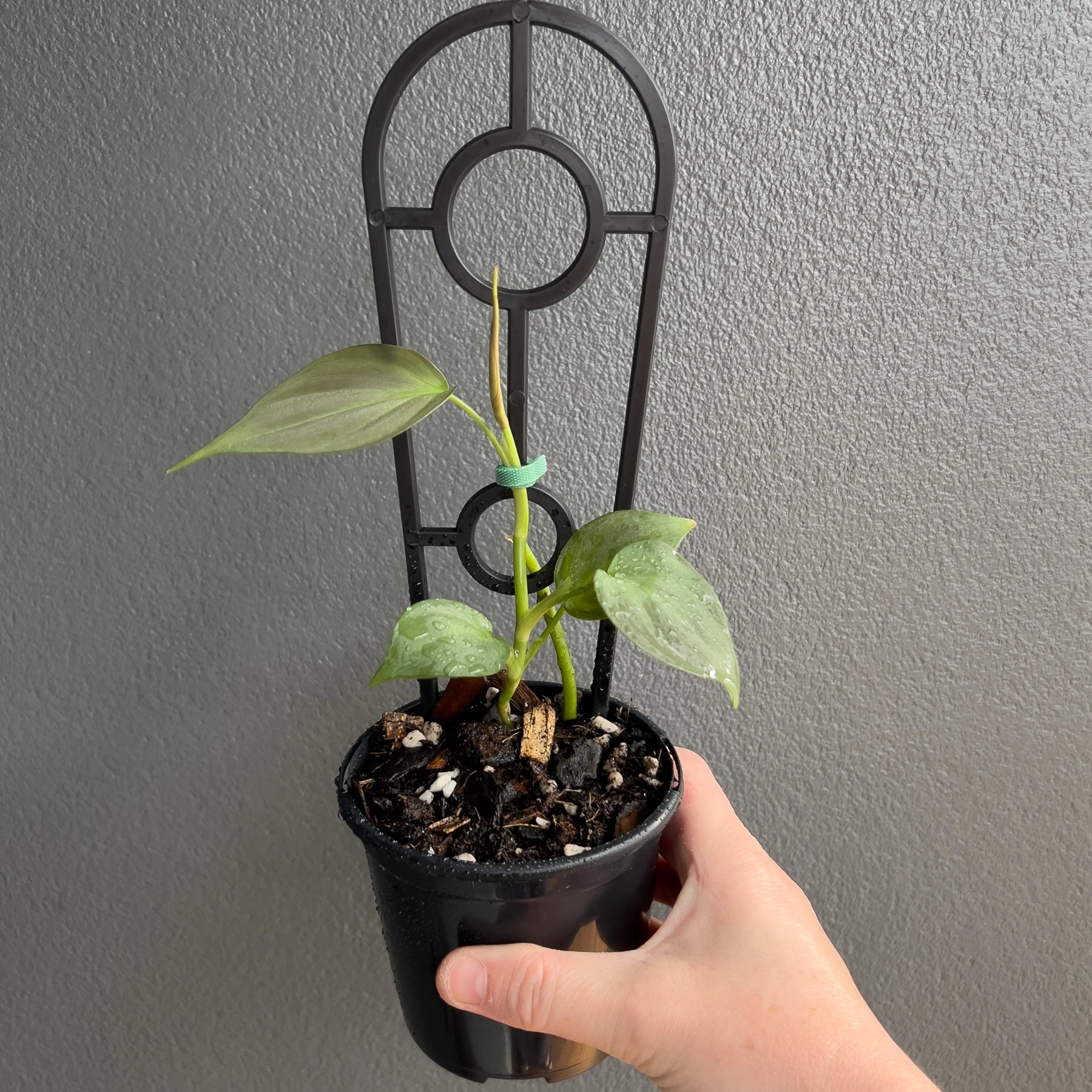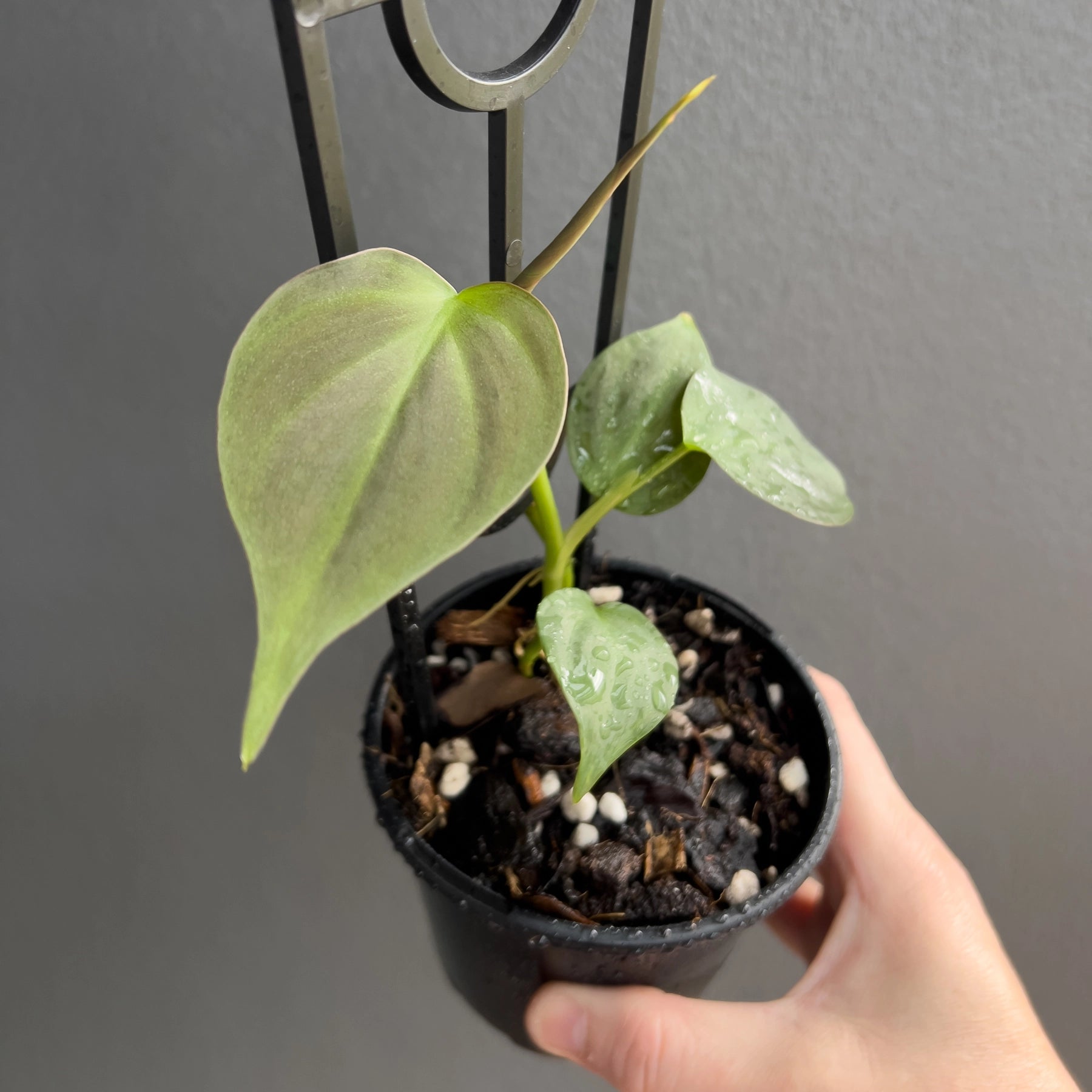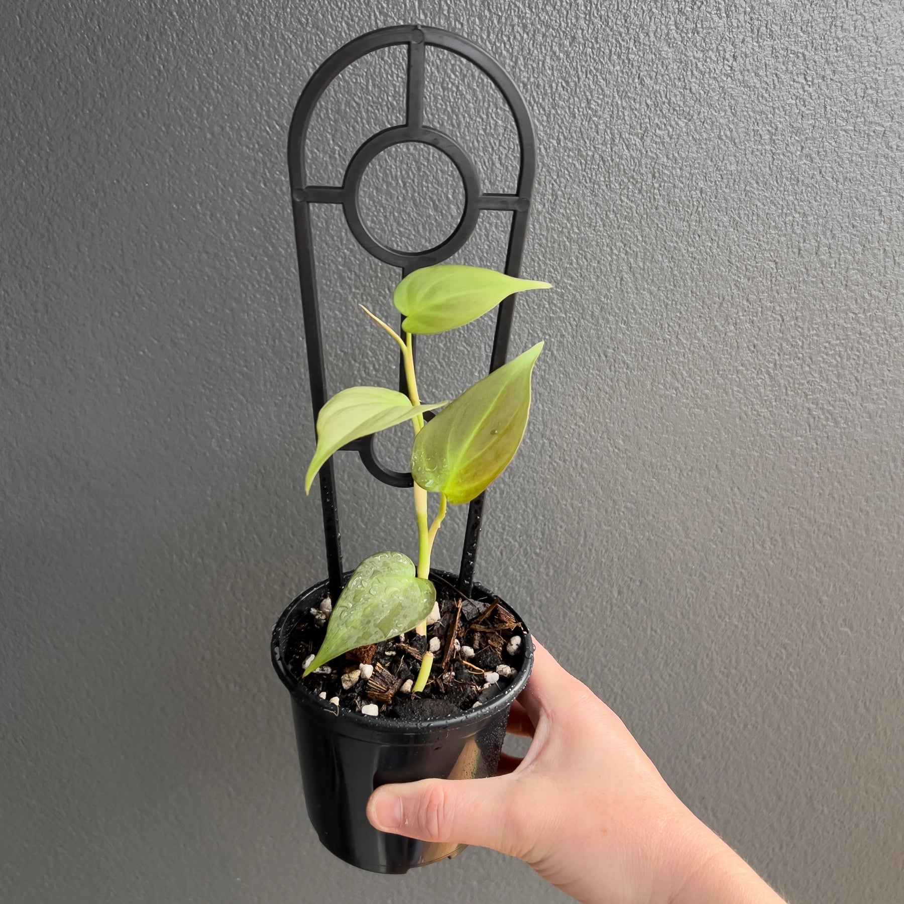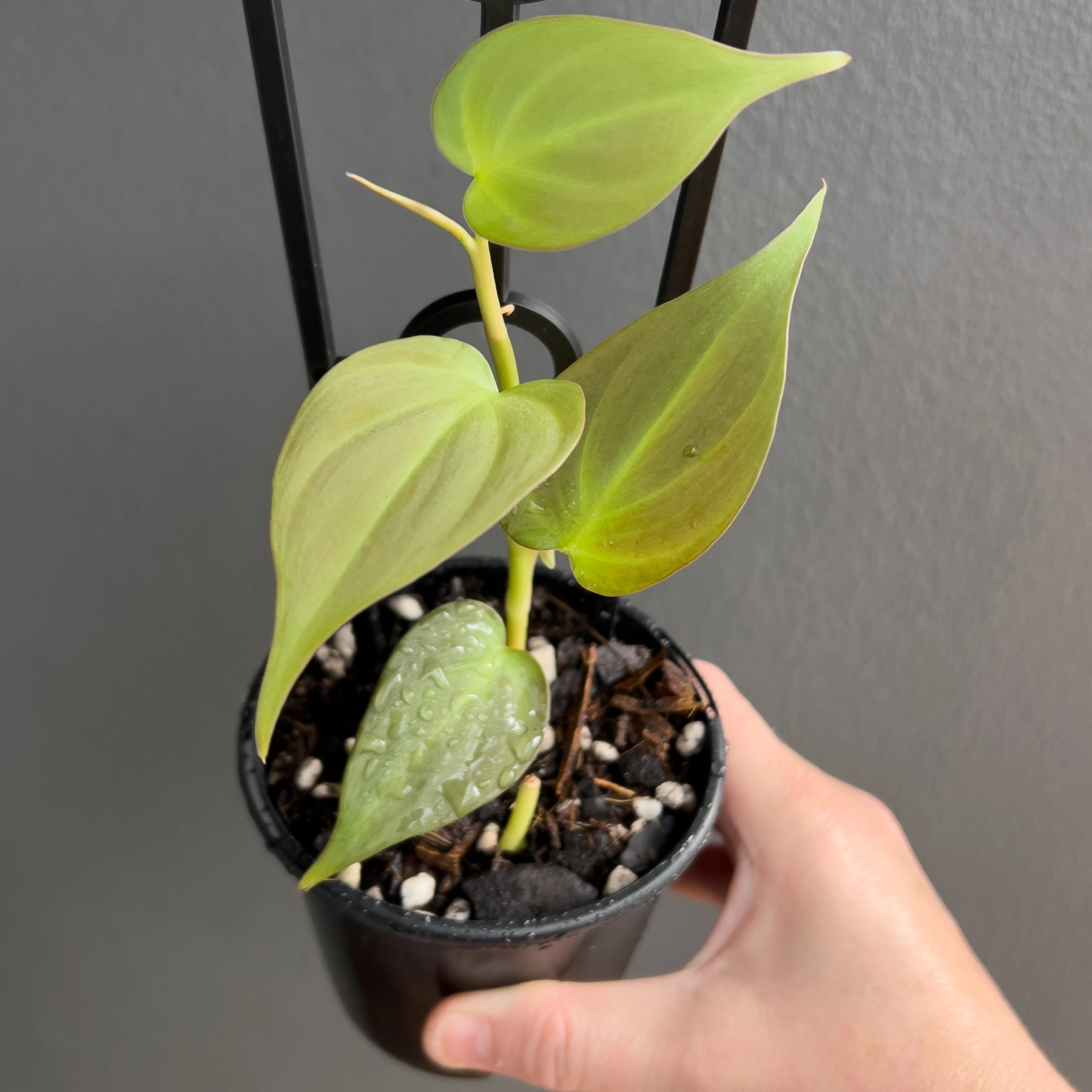 The Philodendron camposportoanum, also known as the Philodendron Green Shield, has vibrant emerald leaves with a subtle bronze blush. As the Philodendron camposportoanum matures, its leaves transform into a trilobed configuration and a deepening bronze hue. A hidden gem in the world of Aroid enthusiasts, this variety is often underrated. Once established, it flourishes as a vigorous climber; its green foliage has a velvety texture. Named for its shield-like leaf shape when fully developed, the Philodendron camposportoanum thrives on climbing totems. Its care is marked by its easy-care nature. It prefers moist yet well-drained soil to prevent overwatering and thrives in indirect sunlight. This Philodendron variety encapsulates grace and resilience, making it an essential addition to all collections.