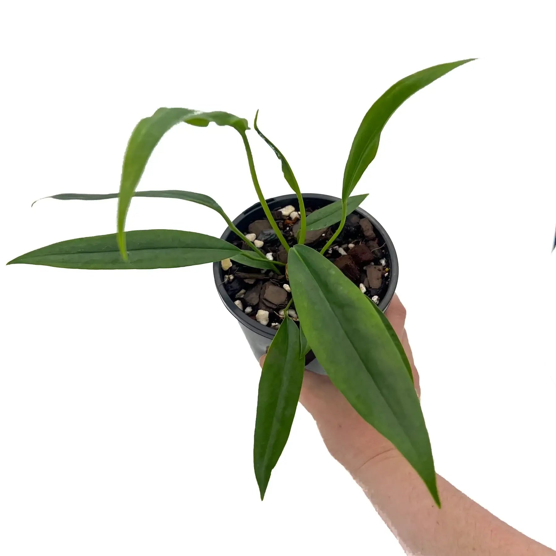 Anthurium bakeri, commonly known as the Bird’s Nest Anthurium, features long, strap-like green leaves that add an exotic touch to any indoor collection. This low-maintenance plant thrives in bright, indirect light and high humidity, making it a favorite among collectors. Known for its hardiness, Anthurium bakeri is a perfect choice for those looking to add a tropical vibe to their space.