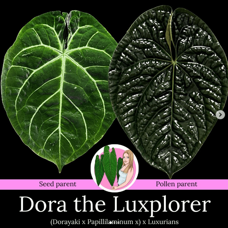 Anthurium 'Dora the Luxplorer', a rare hybrid grown from seeds originally sourced from @sales.plant.mum.