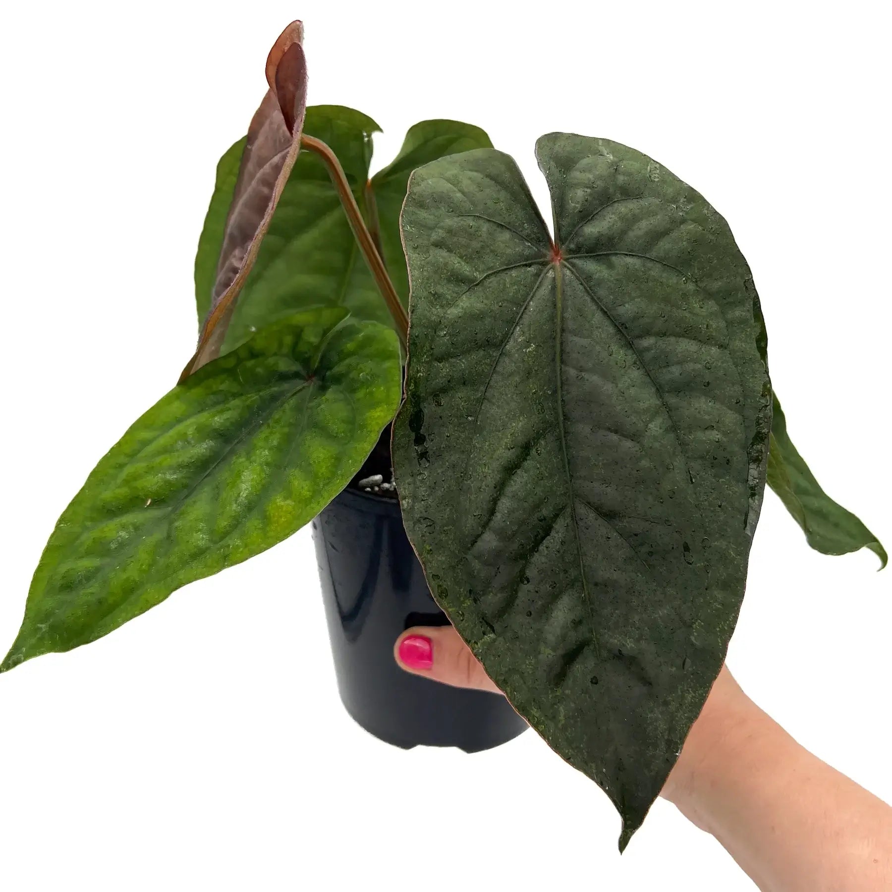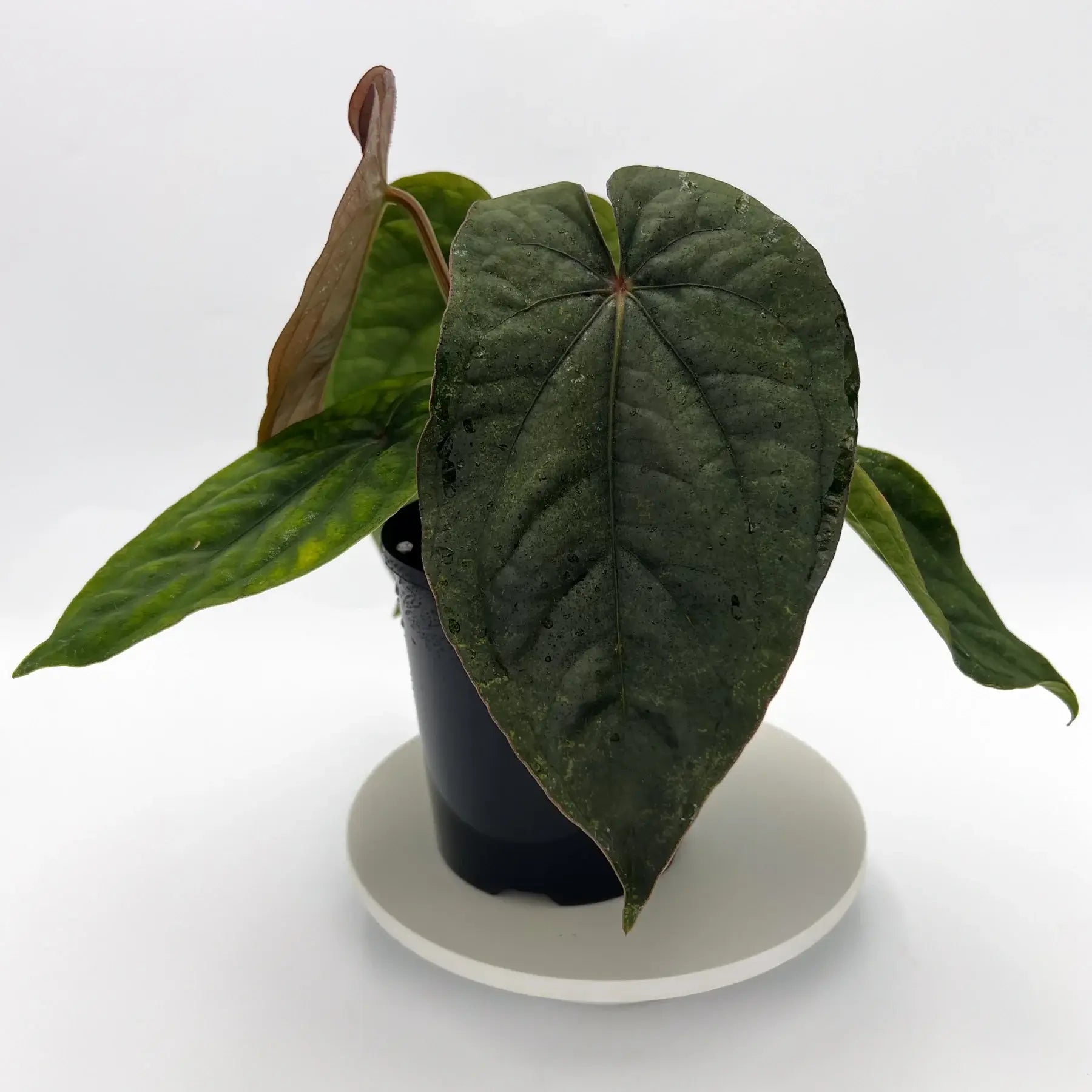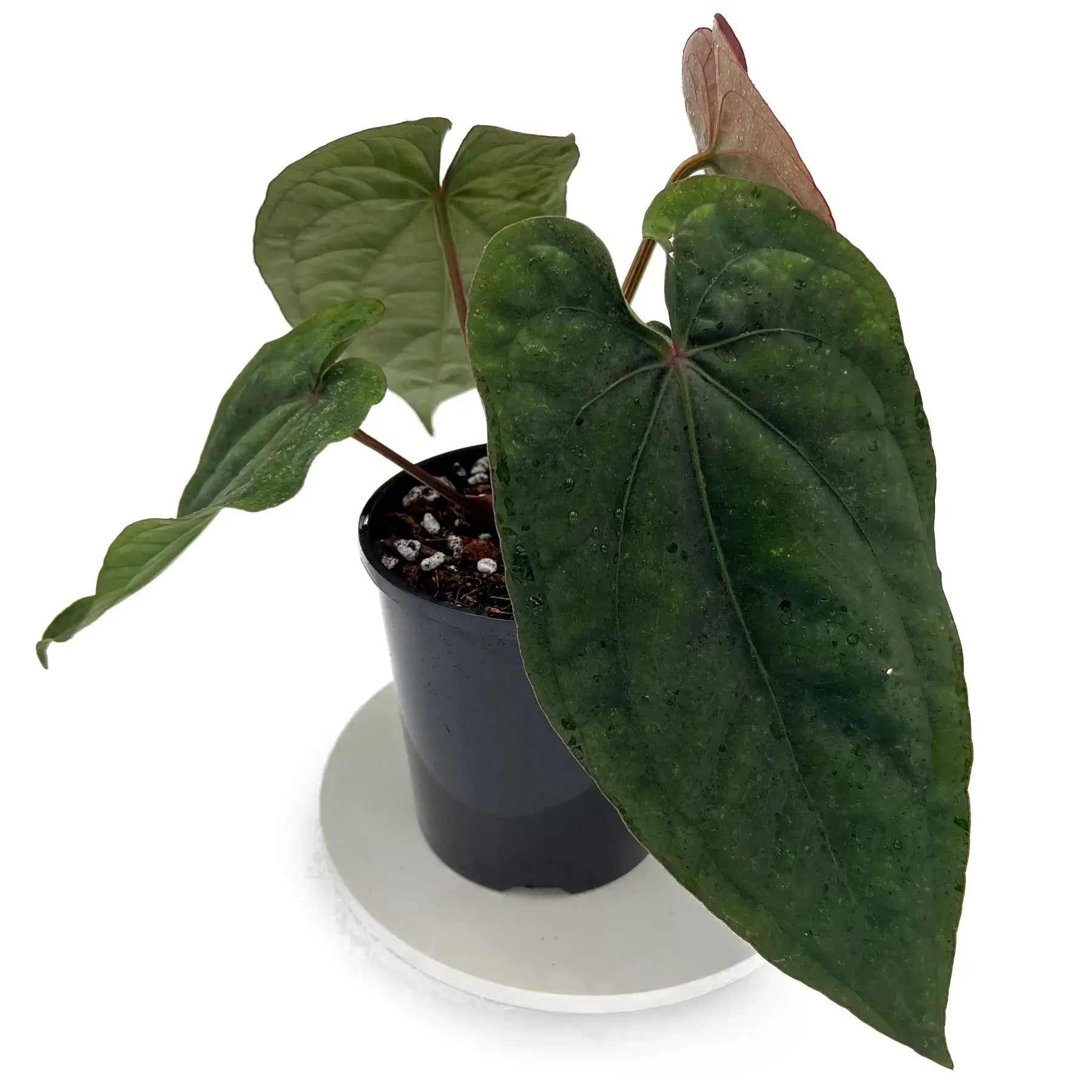 Anthurium dressleri is a rare and highly sought-after Anthurium native to the tropical rainforests of Panama, particularly in the Bocas del Toro region. First identified in 1979 by botanist Dr. Robert Dressler, this stunning plant is known for its large, velvety, dark deep green leaves with prominent, intricate venation that becomes more defined as the plant matures and foliage can reach up to 45cm in length. These plants are seed-grown. Thriving in humid, shaded environments, Anthurium dressleri requires consistent warmth and moisture to flourish, making it best suited for collectors who can provide the optimal conditions it demands.,
