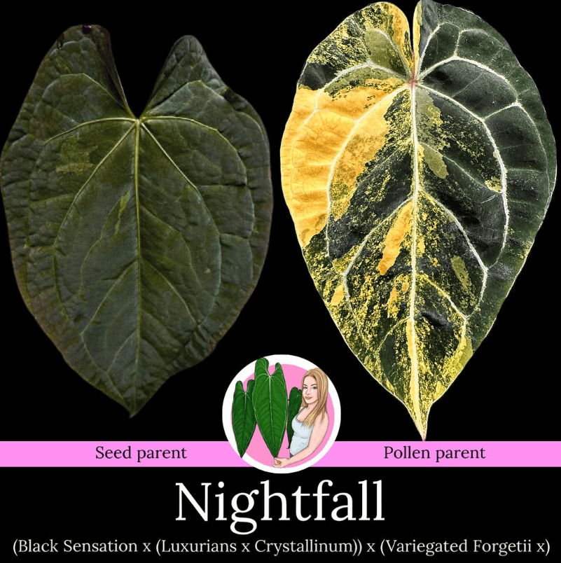 Anthurium 'Night Fall' (Black Sensation x Luxurians x Crystallinum x Variegated Forgetii)