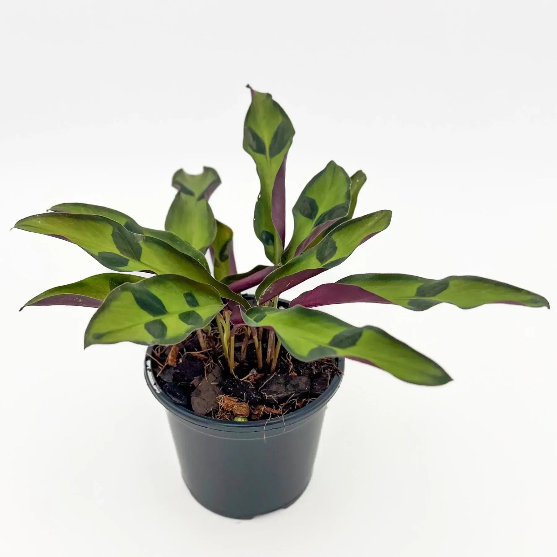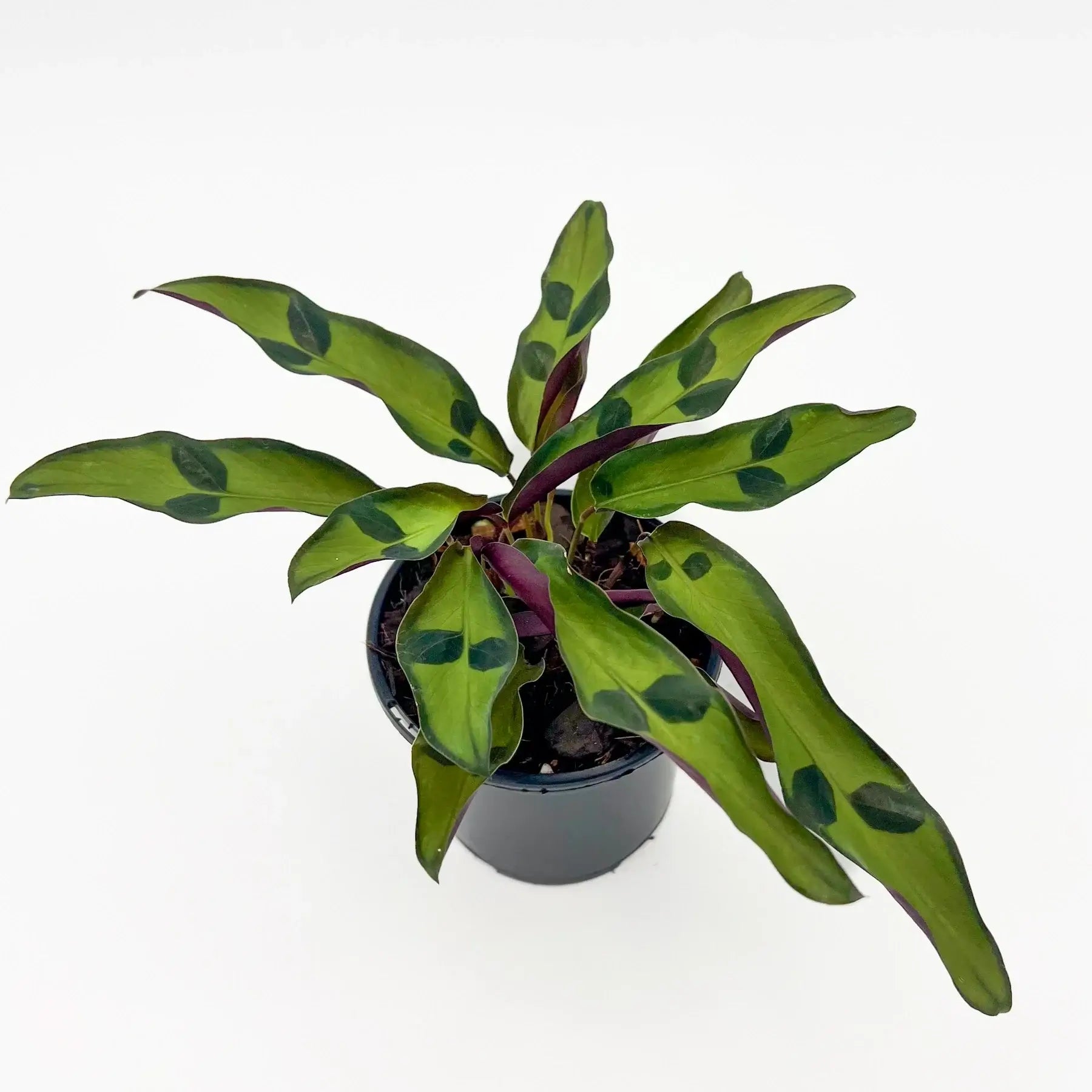 The Goeppertia 'Calathea' lancifolia Sport is a fascinating indoor plant that is a sport variation of the Goeppertia 'Calathea' Rattlesnake with a unique twist! This 'Sport' has patterns similar to the traditional 'Rattlesnake' plant, but has strikingly larger and darker green spots on its foliage which features variegated-green tops and vivid purplish-red undersides.