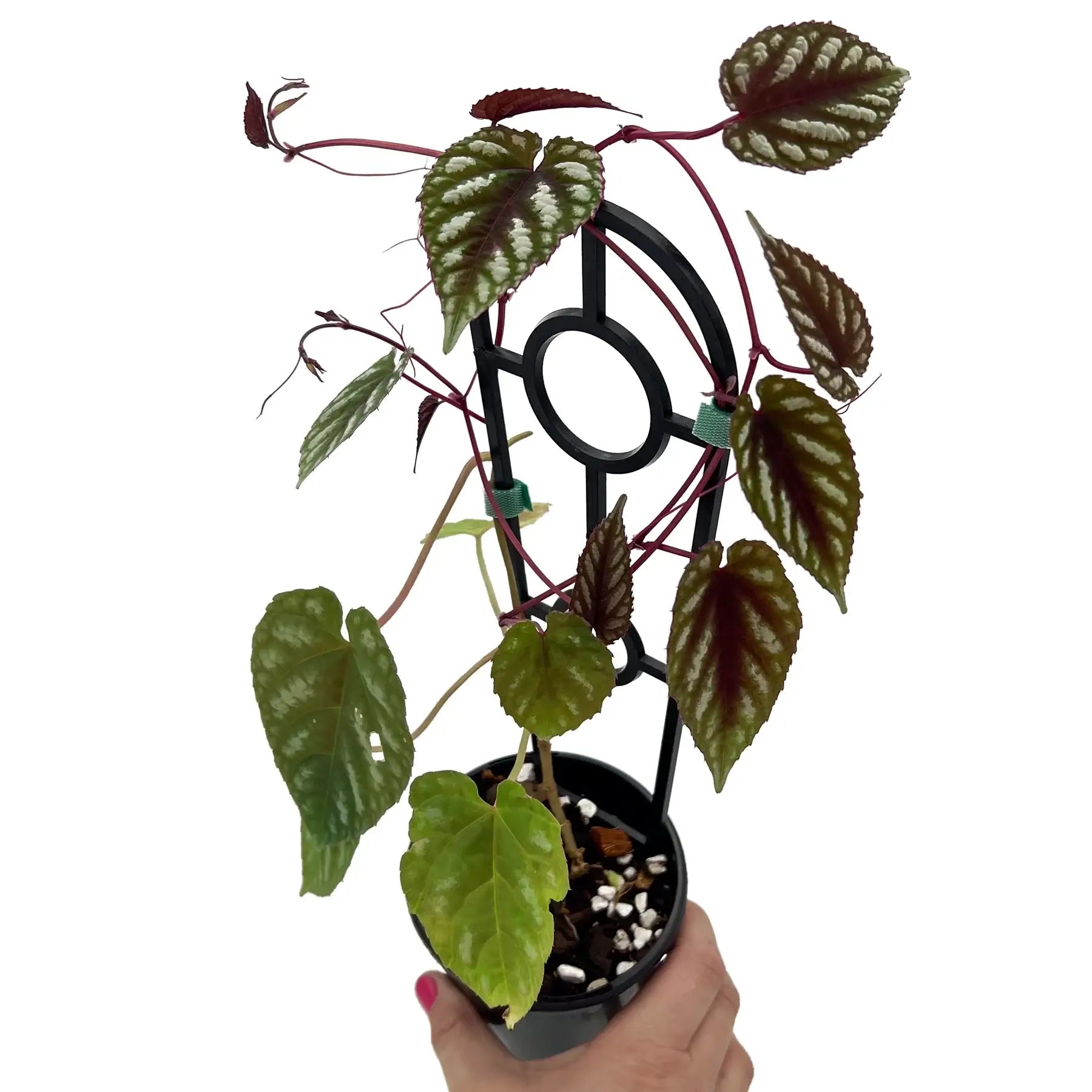 Cissus discolor, also known as the Rex begonia vine, is a species of flowering plant in the grape family. It is known for its glossy, thick leaves that are dark green and have a burgundy or purple underside. The leaves are heart-shaped and can grow up to 12 inches long. The plant does not produce flowers, but it is prized for its attractive foliage. It is easy to care for and can tolerate a wide range of conditions, making it a popular choice for indoor gardens. These plants are extremely delicate and may not ship well. They certainly will need settling time on arrival.