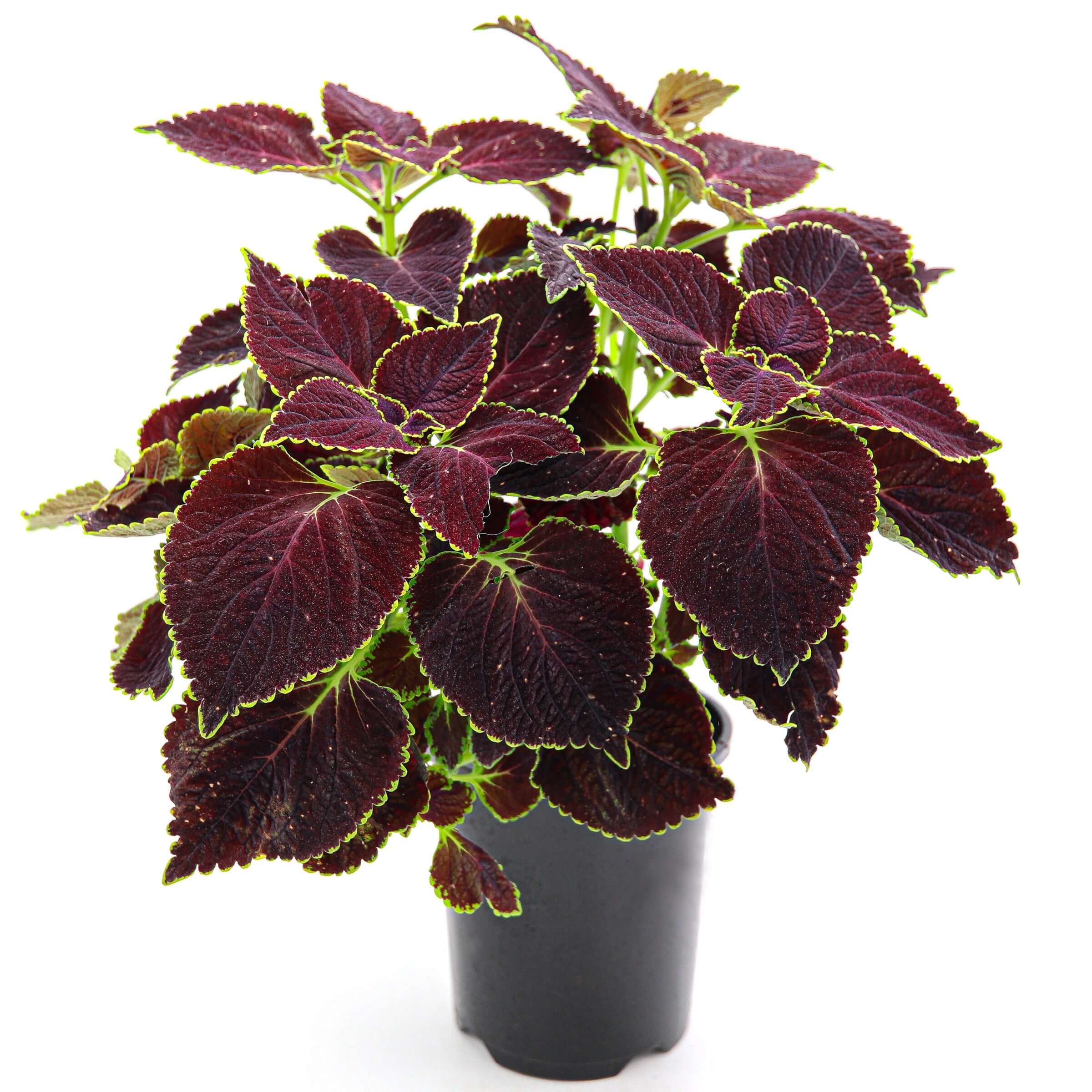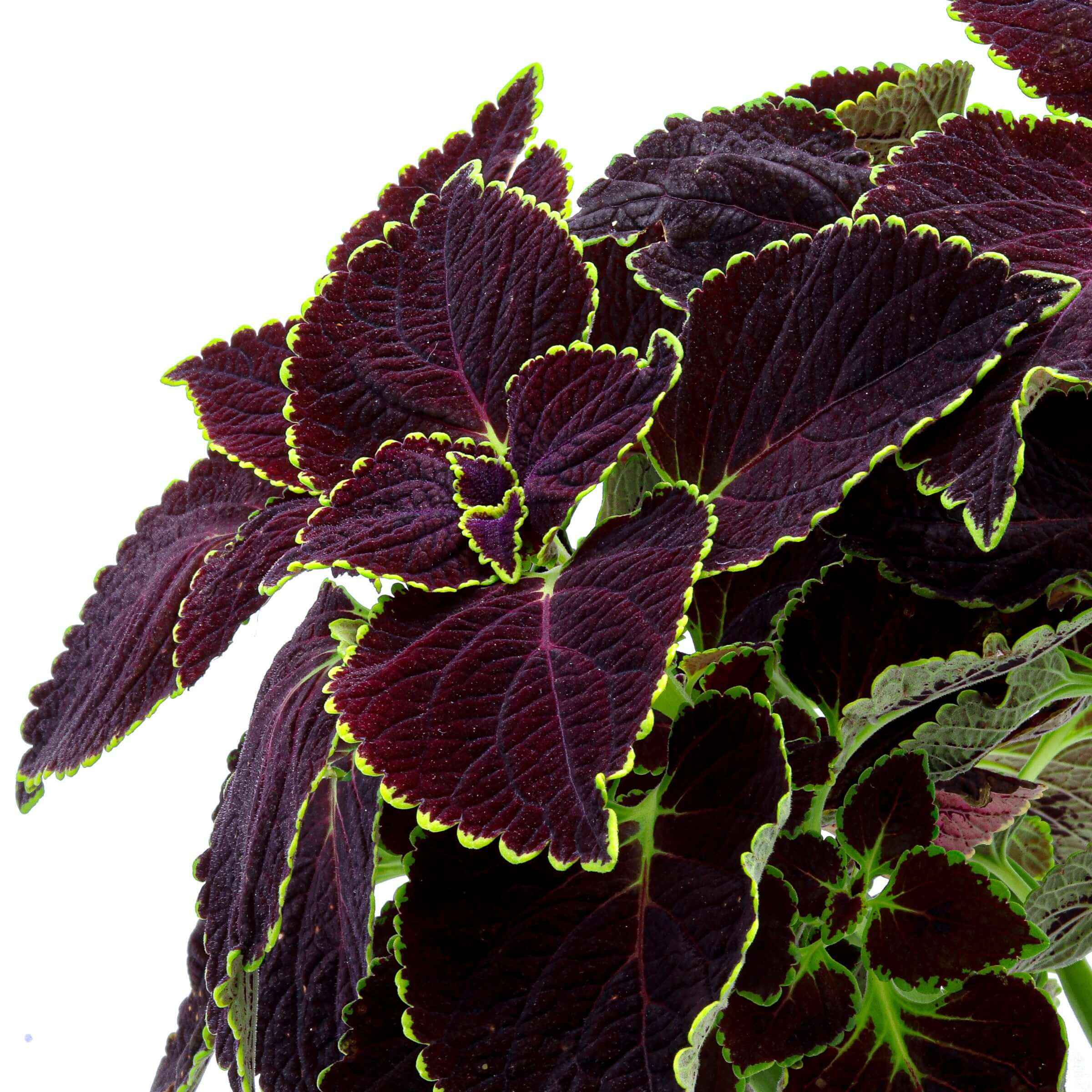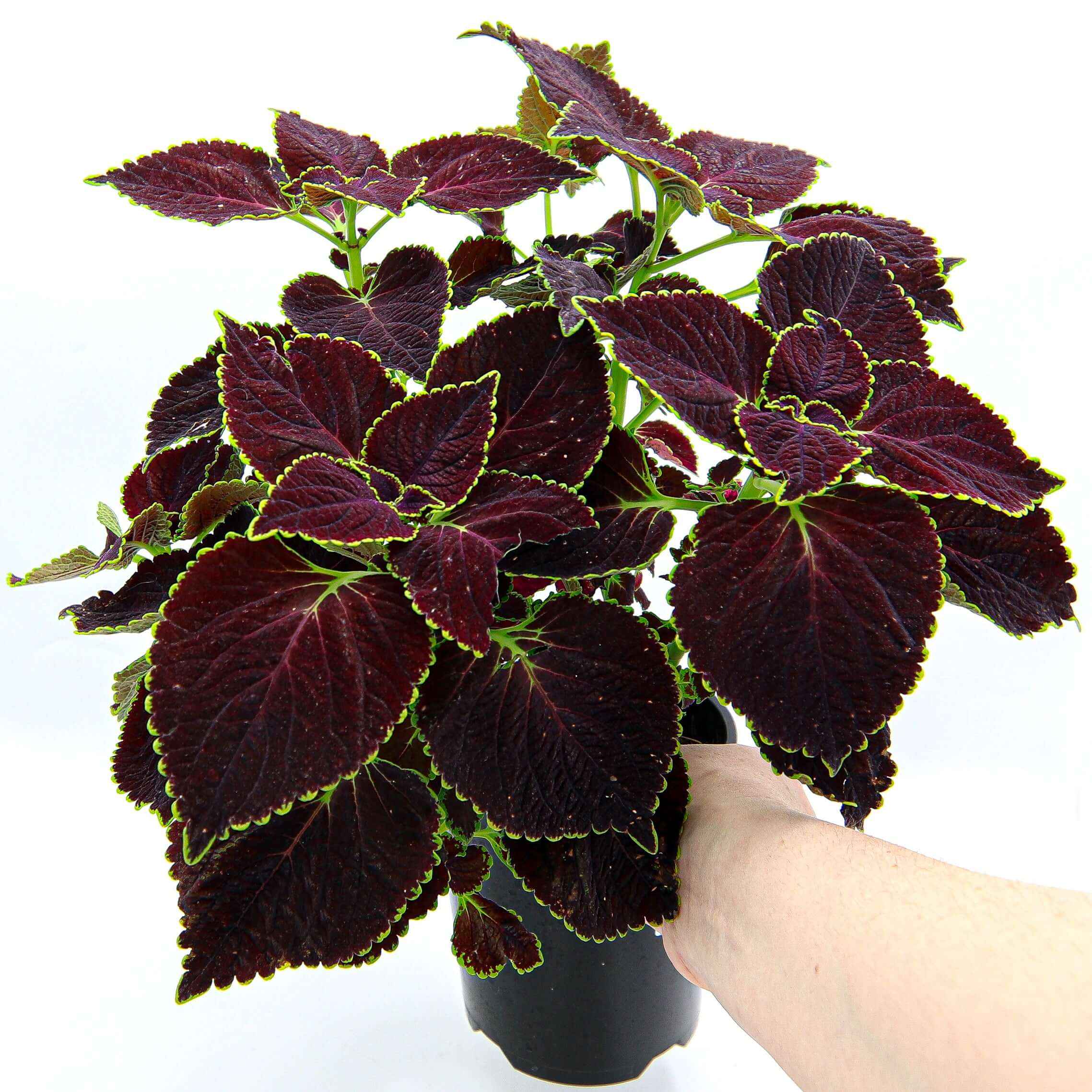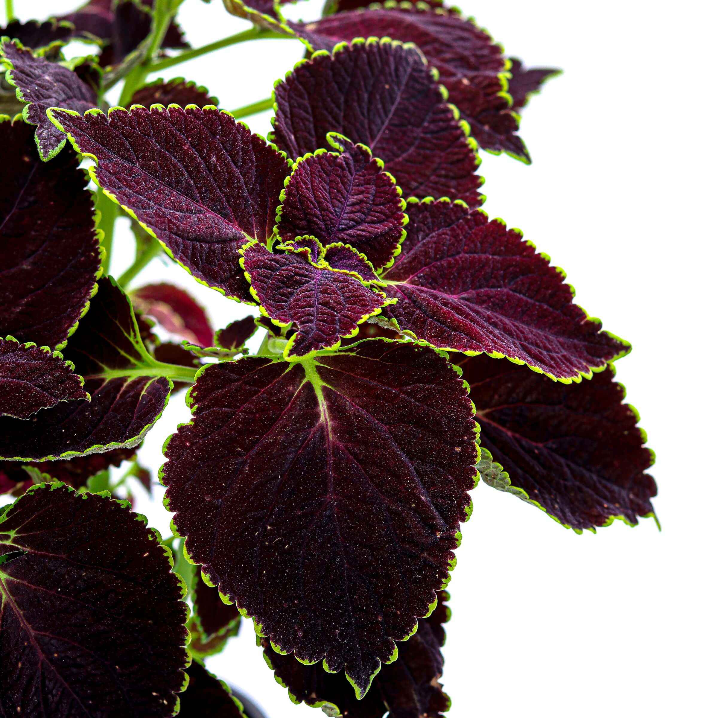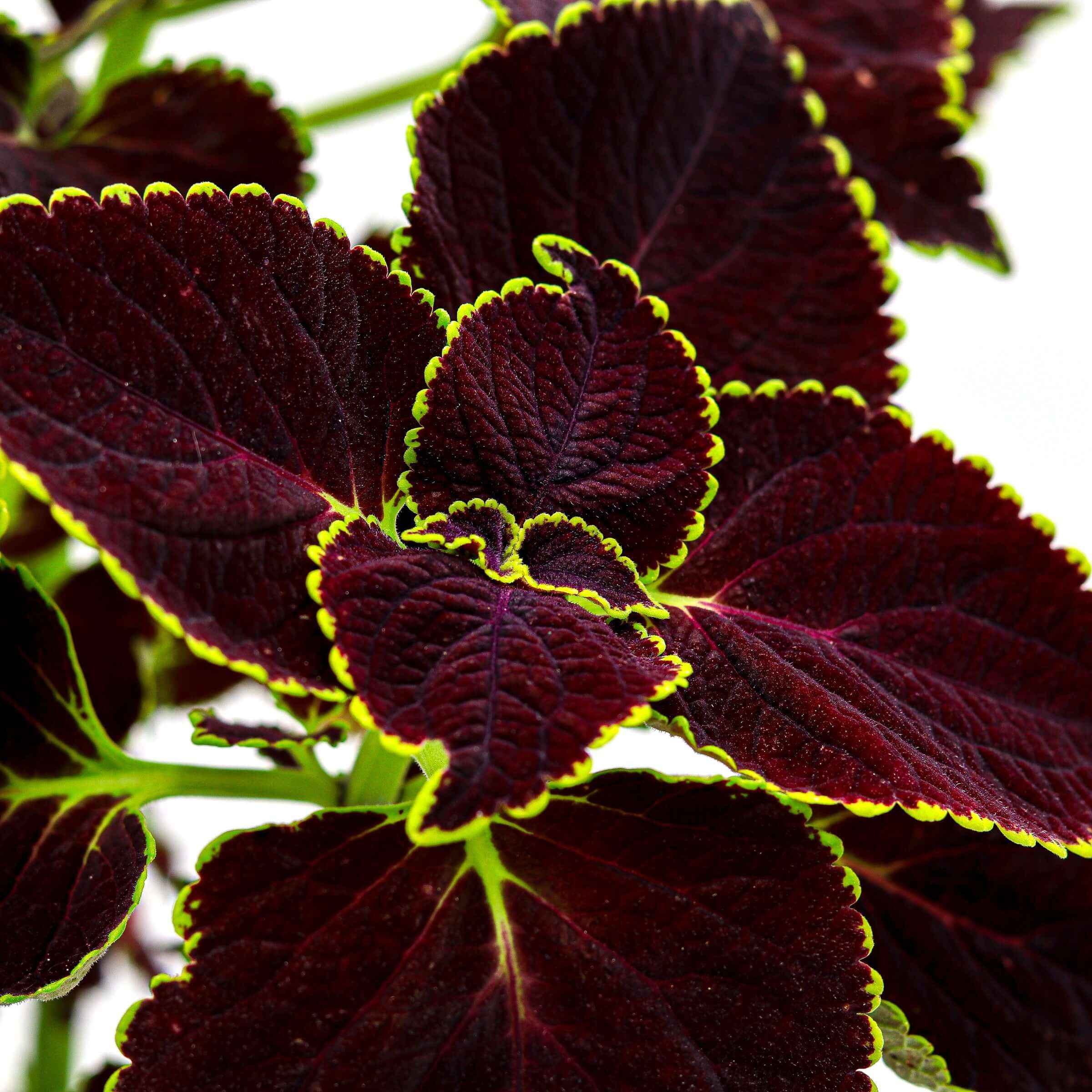 Coleus Broad Street plants have dark burgundy to nearly black leaves which are edged in bright green. Coleus is grown mainly for its amazing velvety leaves, which glow with colour! Coleus Broad Street is probably one of the easiest plants to grow and propagate. They are so easy to propagate you can start cuttings in a glass of water! Simply make a cutting, let the cut area callus over and place in water. You can change the water ever so often to keep the water fresh.