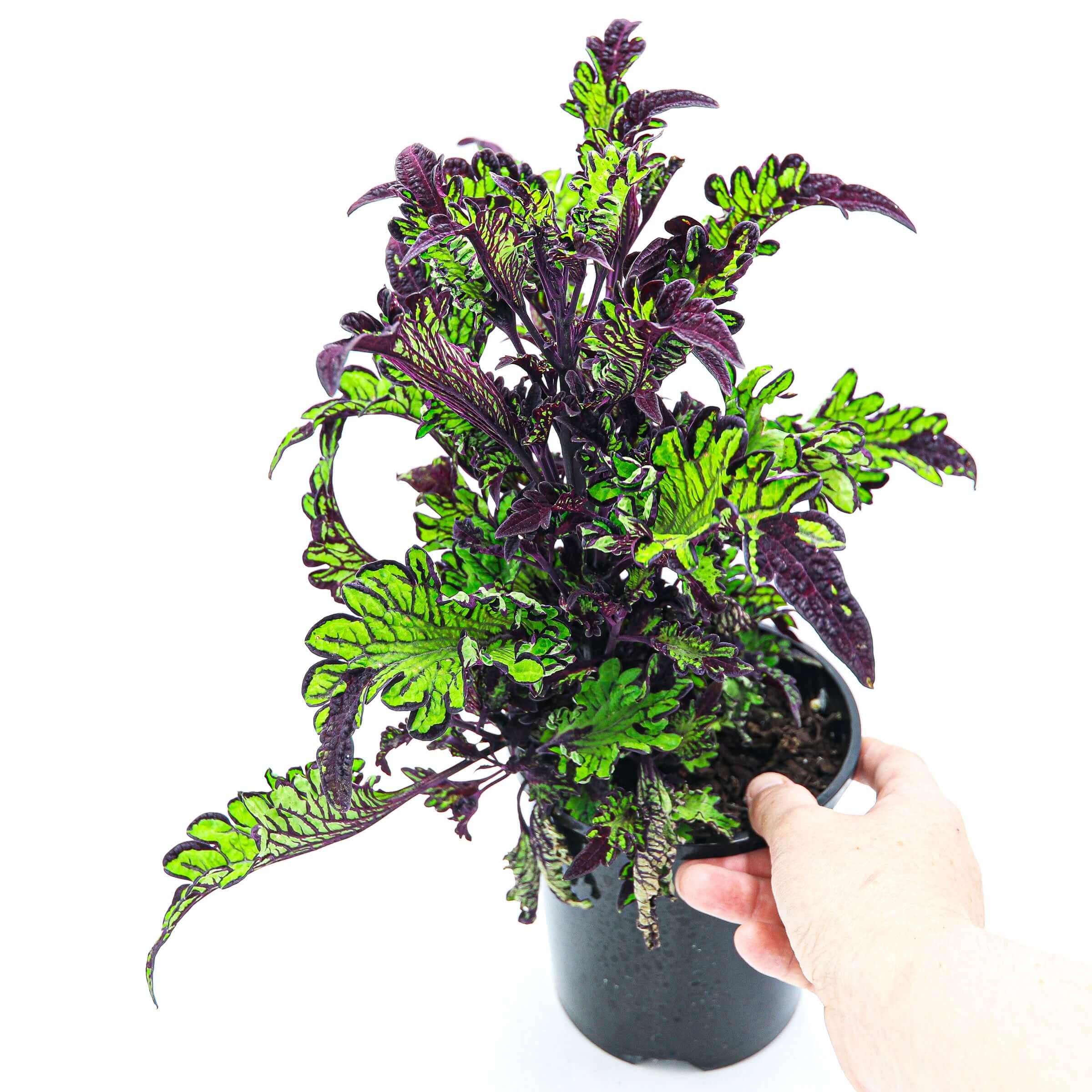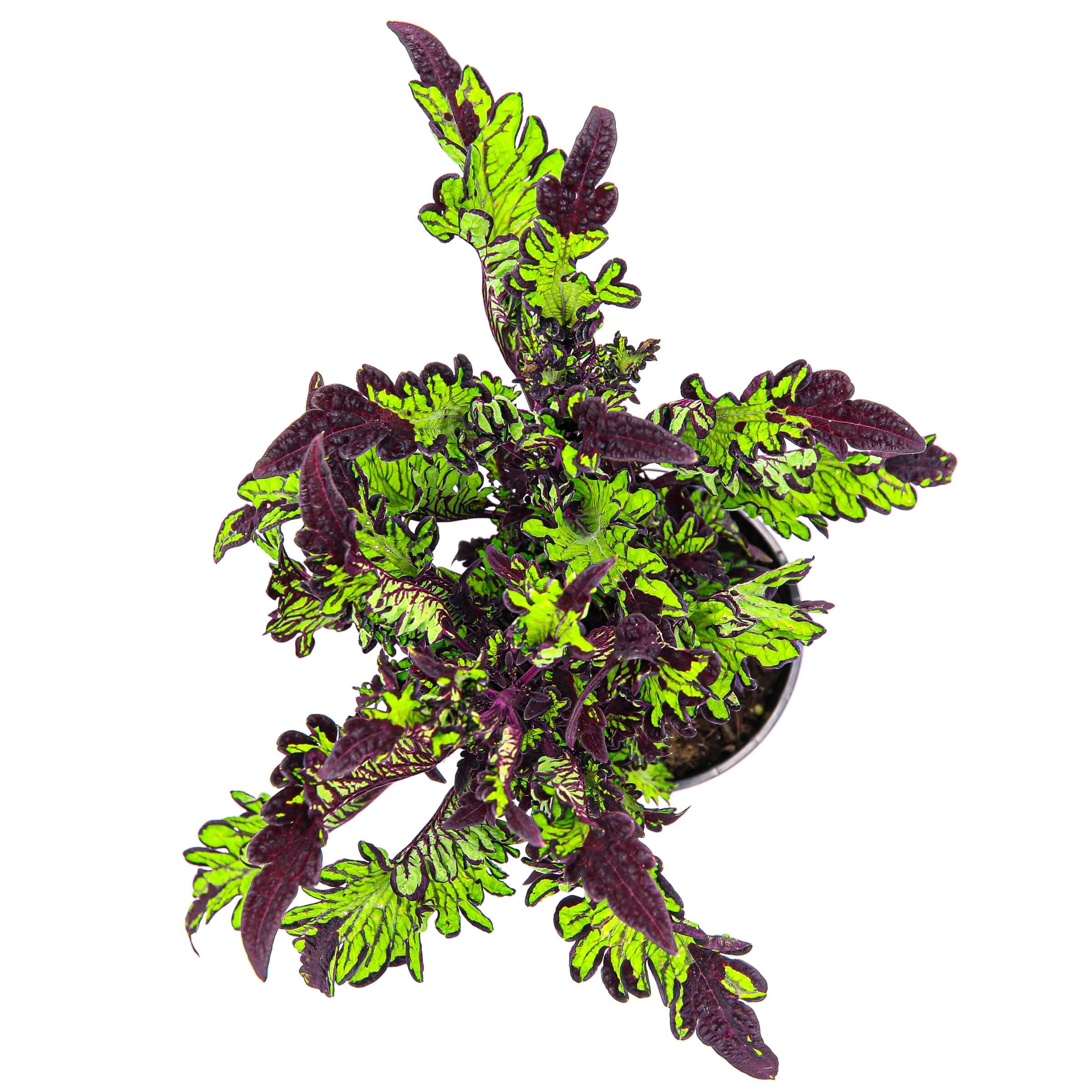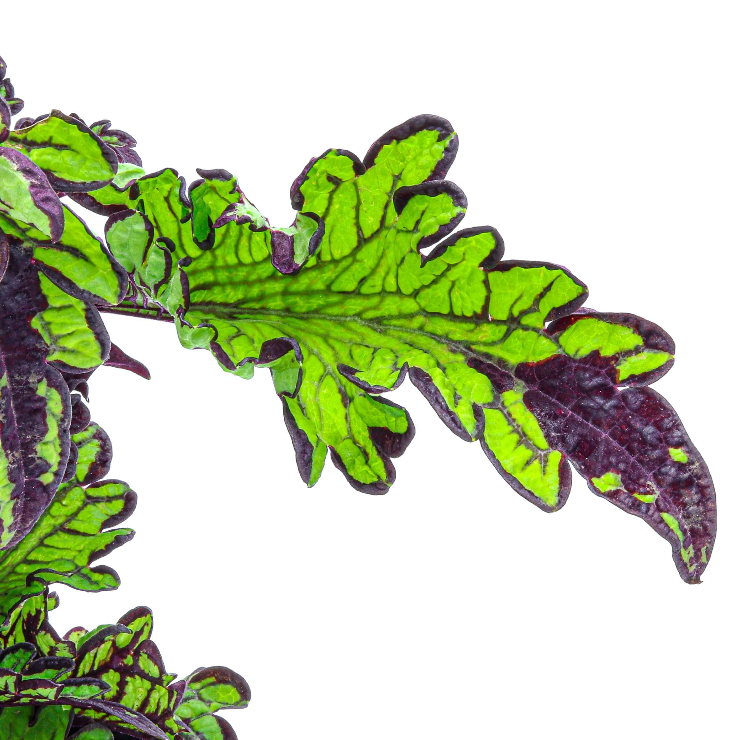 Coleus Rodeo Drive has lacy green, lobed foliage accented with deep purple edges. Coleus is grown mainly for its amazing velvety leaves, which glow with colour! Coleus Rodeo Drive is probably one of the easiest plants to grow and propagate. They are so easy to propagate you can start cuttings in a glass of water! Simply make a cutting, let the cut area callus over and place in water. You can change the water ever so often to keep the water fresh.