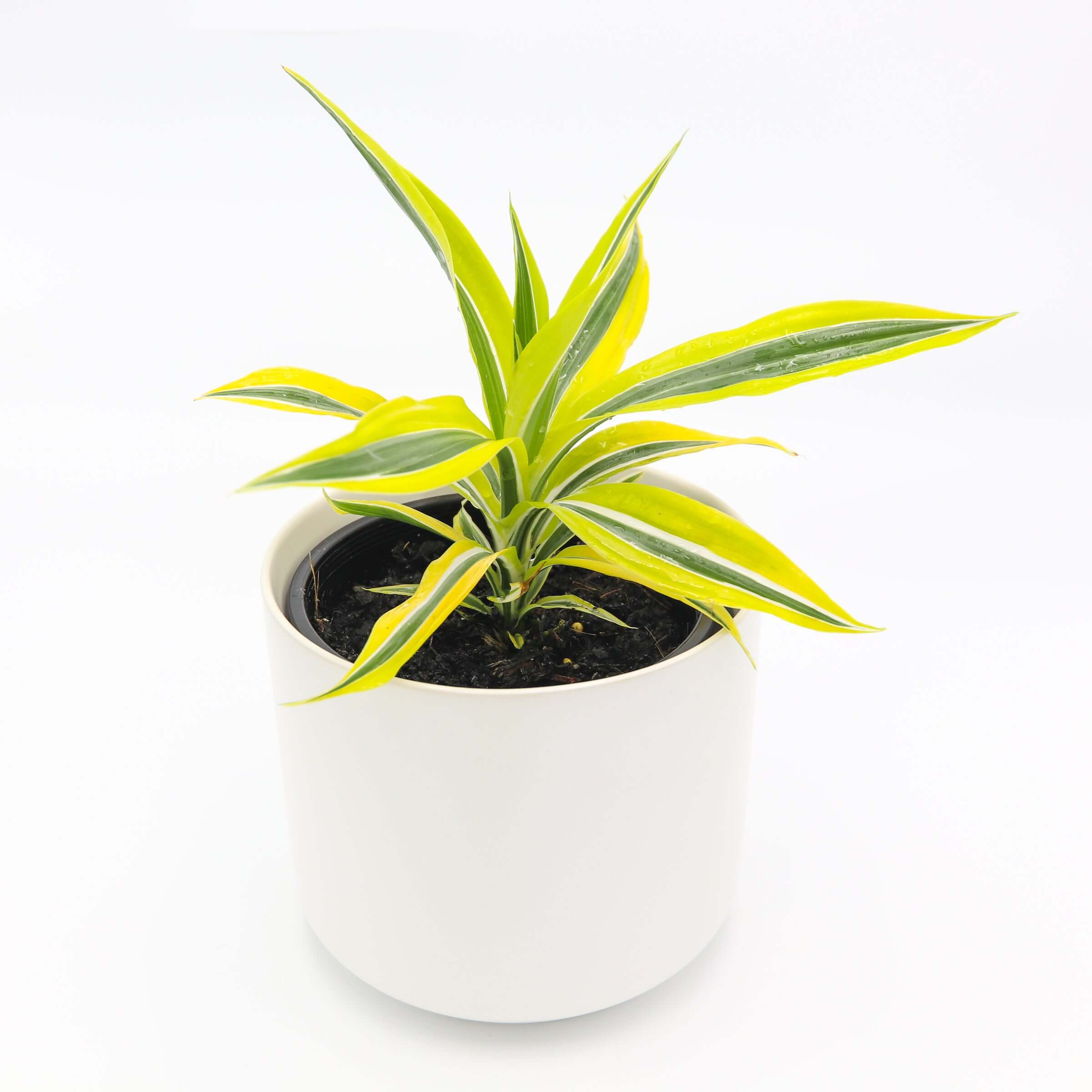 The Dracaena Deremensis Lemon Lime is a standout plant with long sword-shaped leaves and bright neon green and yellow stripes. Dracaena Deremensis Lemon Limes are very easy to care for. They thrive in medium to bright indirect light. Too much direct sun will scorch and pale the leaves, while dim light can cause leggy growth and browning. The Dracaena Deremensis Lemon Lime prefers its soil to dry slightly between each watering.