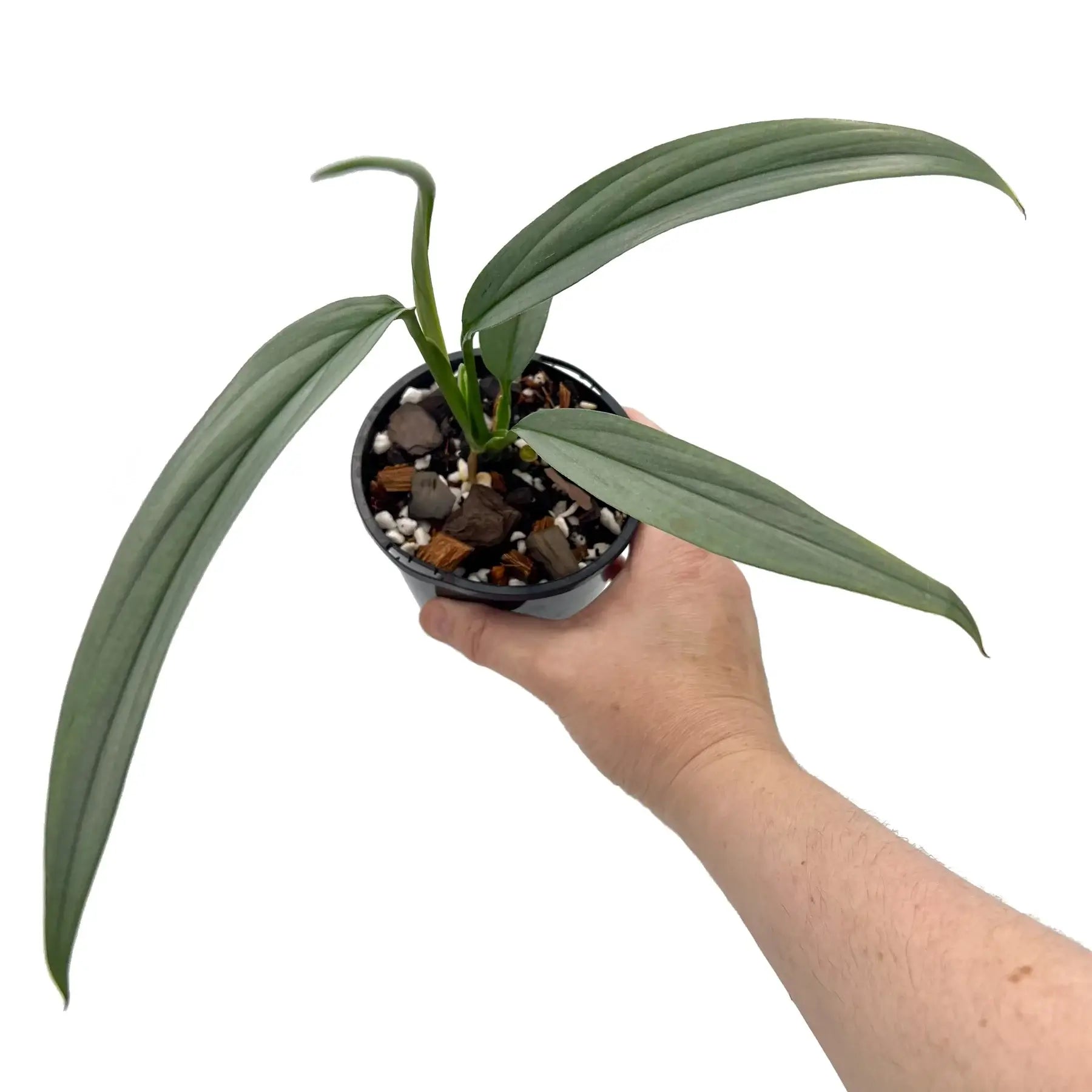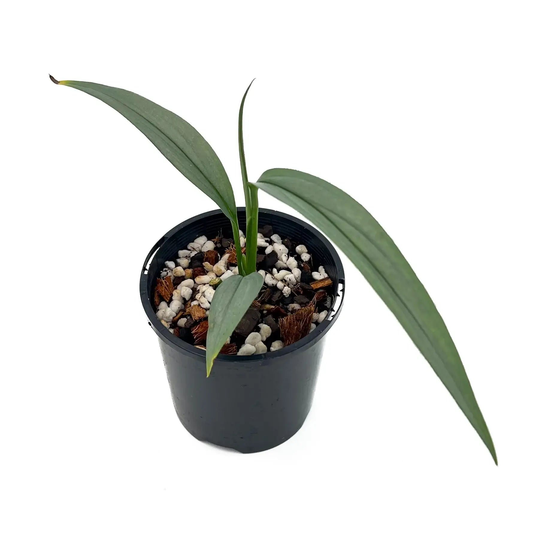 Epipremnum amplissimum Silver is a striking variety with elongated silver-green leaves that add elegance to any indoor plant collection. This rare, vining plant thrives in bright, indirect light and is easy to care for, making it ideal for both beginners and seasoned plant collectors. Its trailing growth habit makes it perfect for hanging baskets or climbing support poles.