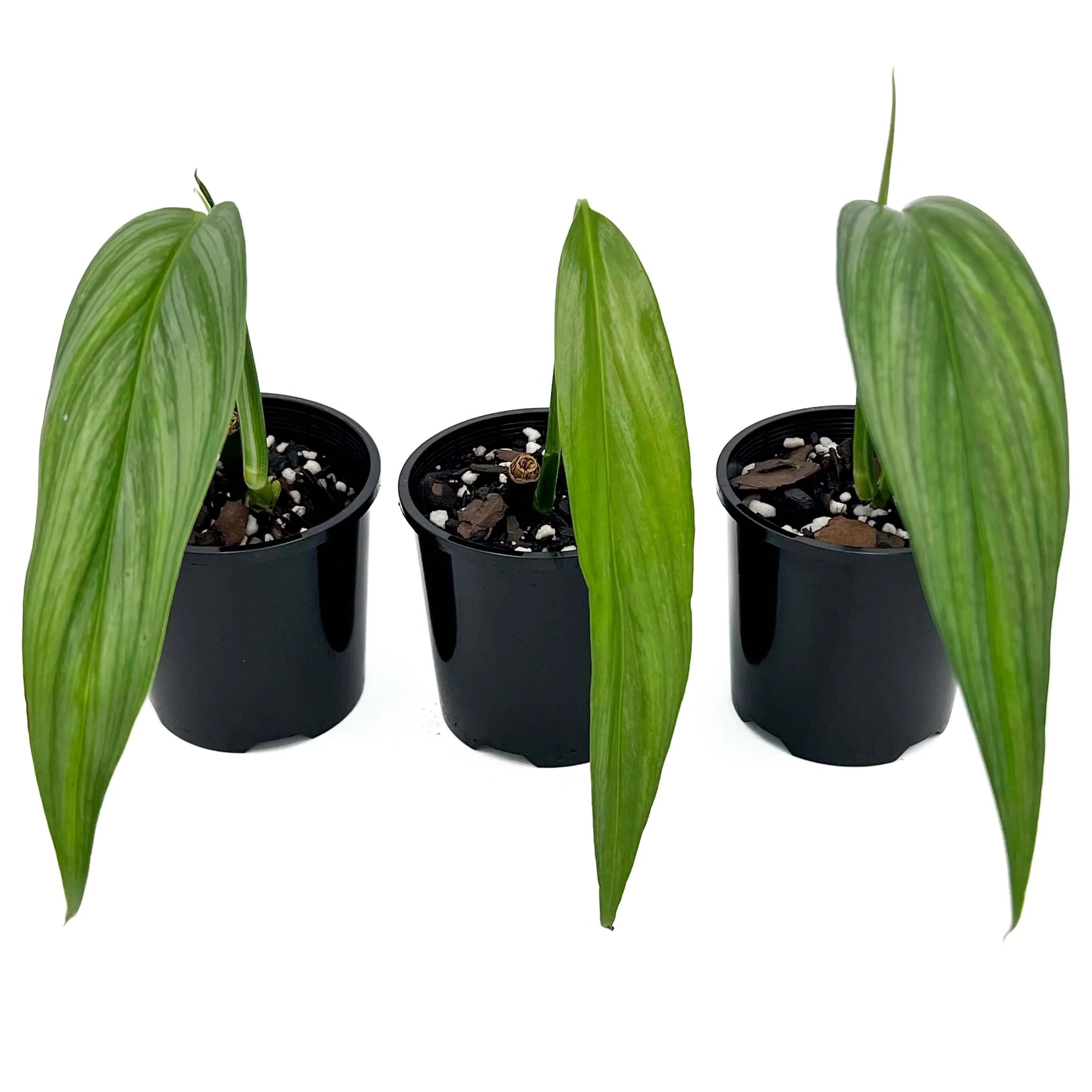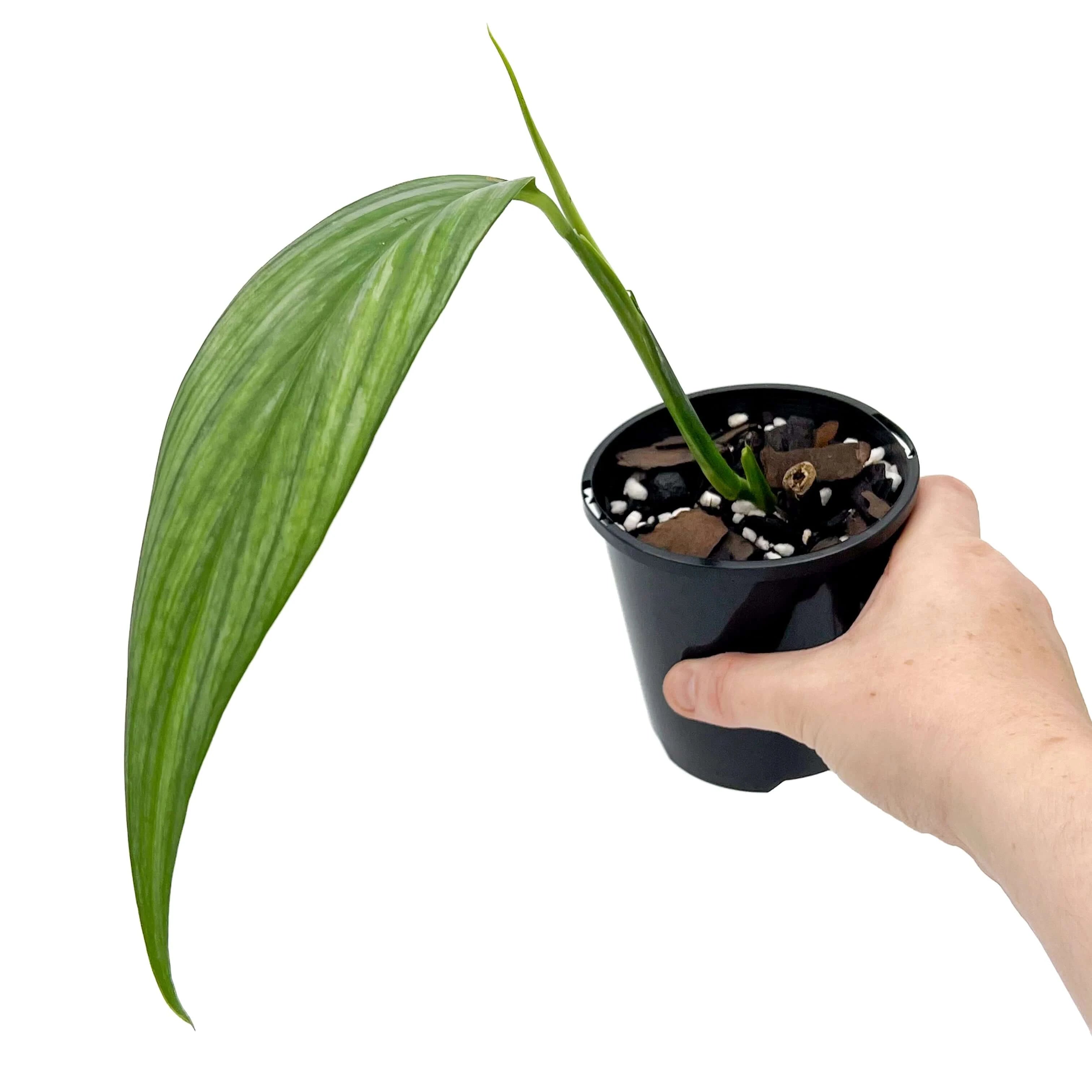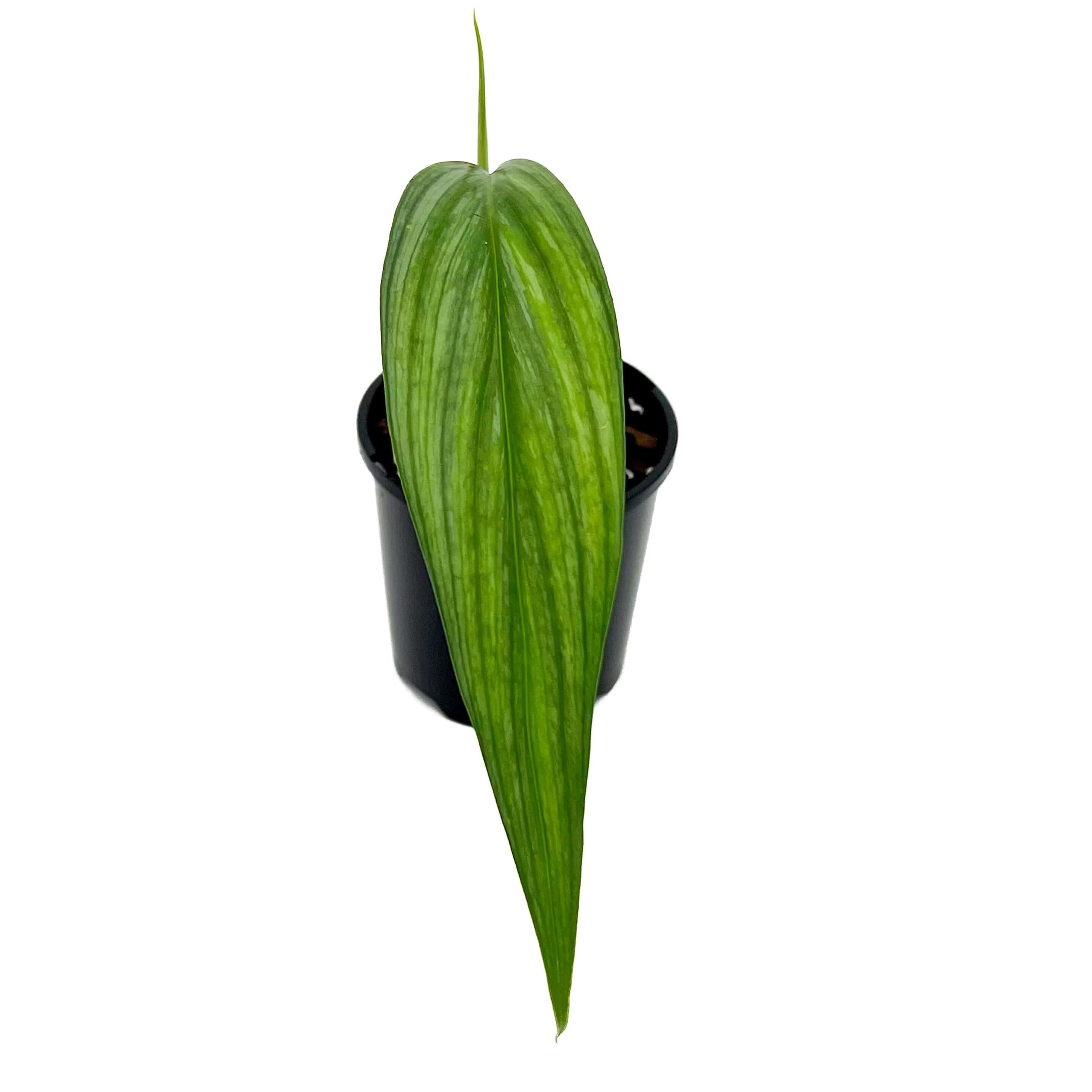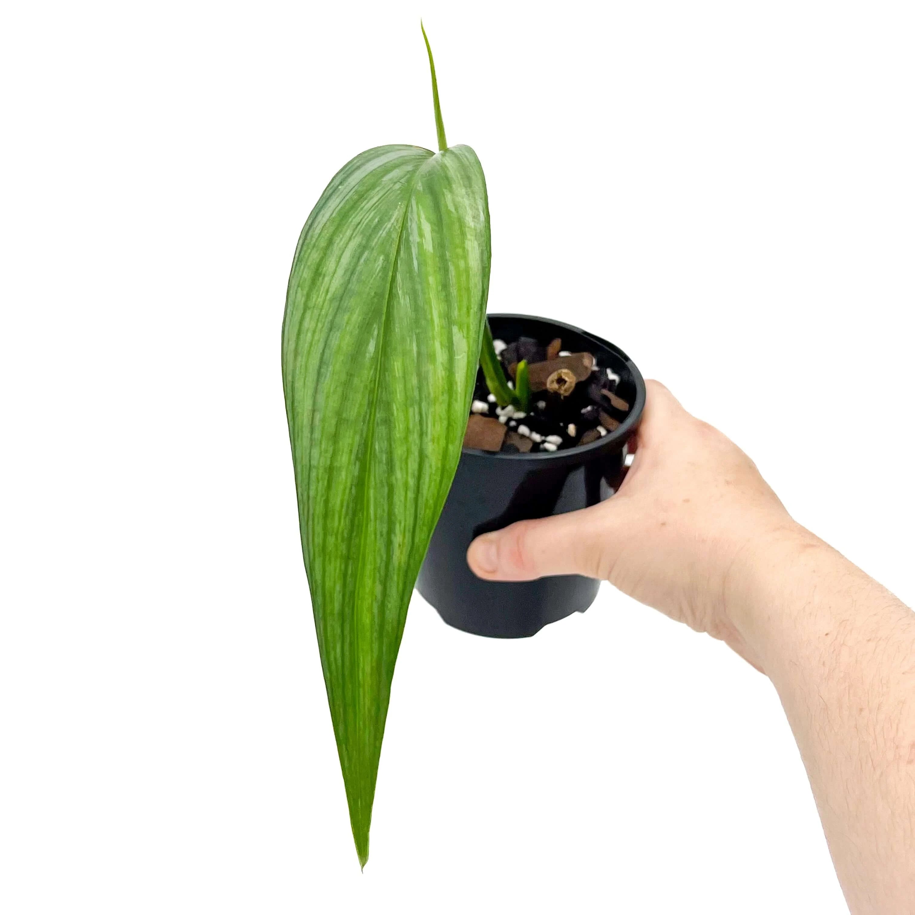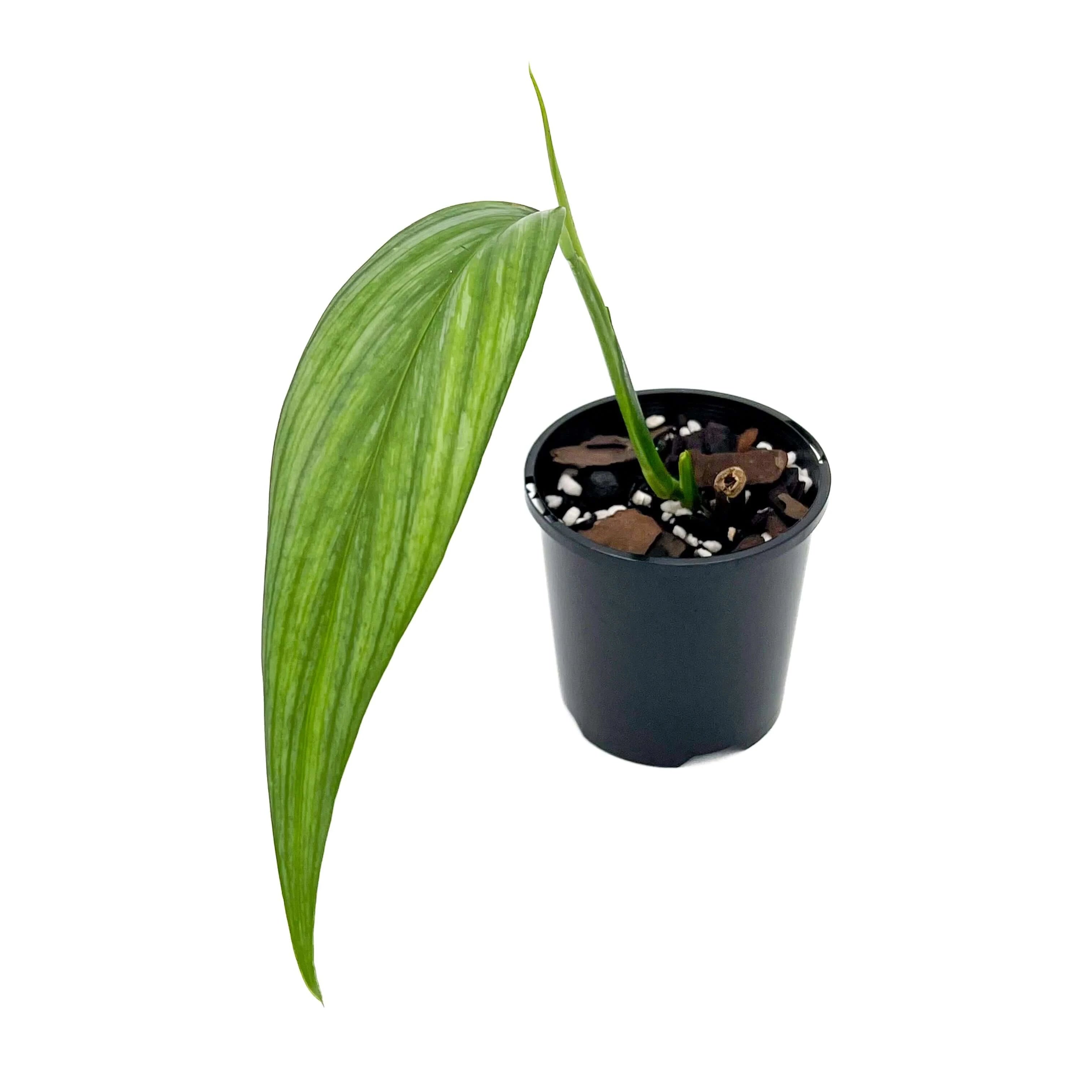 The Epipremnum Amplissimum 'Silver Streak', also known as 'Silver Stripe', is a rare and unique Epipremnum. Known for its elongated, strappy leaves with unique variegation of silver-green streaks against a darker green background, creating an eye-catching contrast. The Epipremnum Amplissimum 'Silver Streak' is native to Southeast Asia and will need a pole to climb.