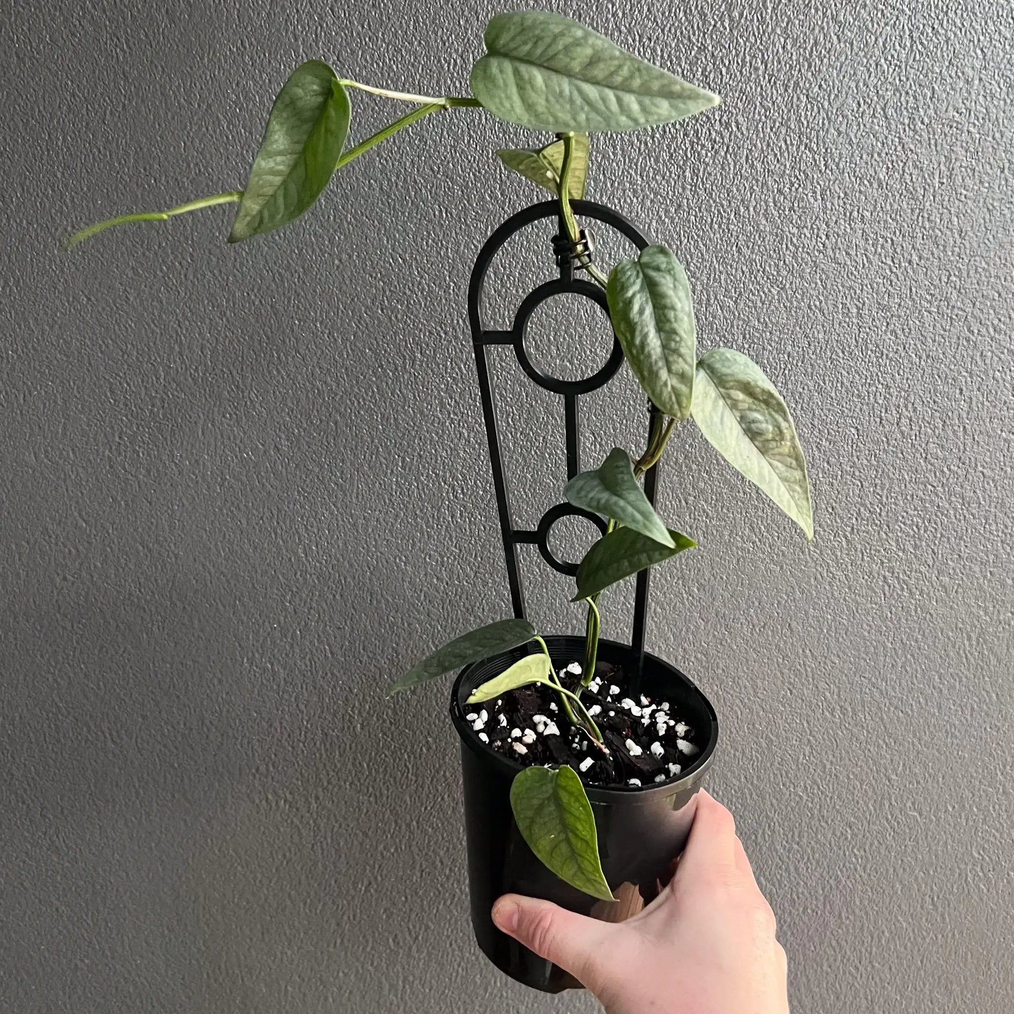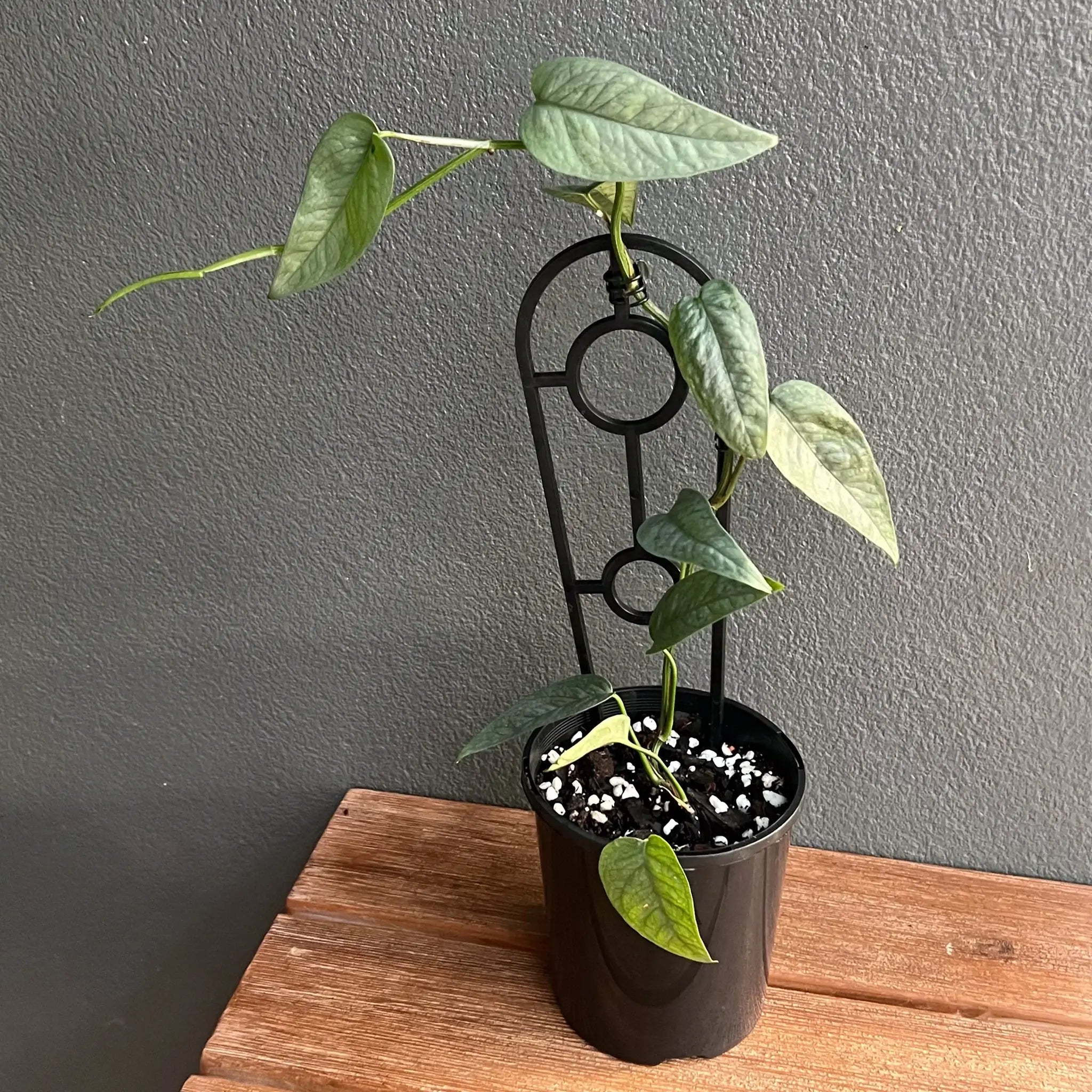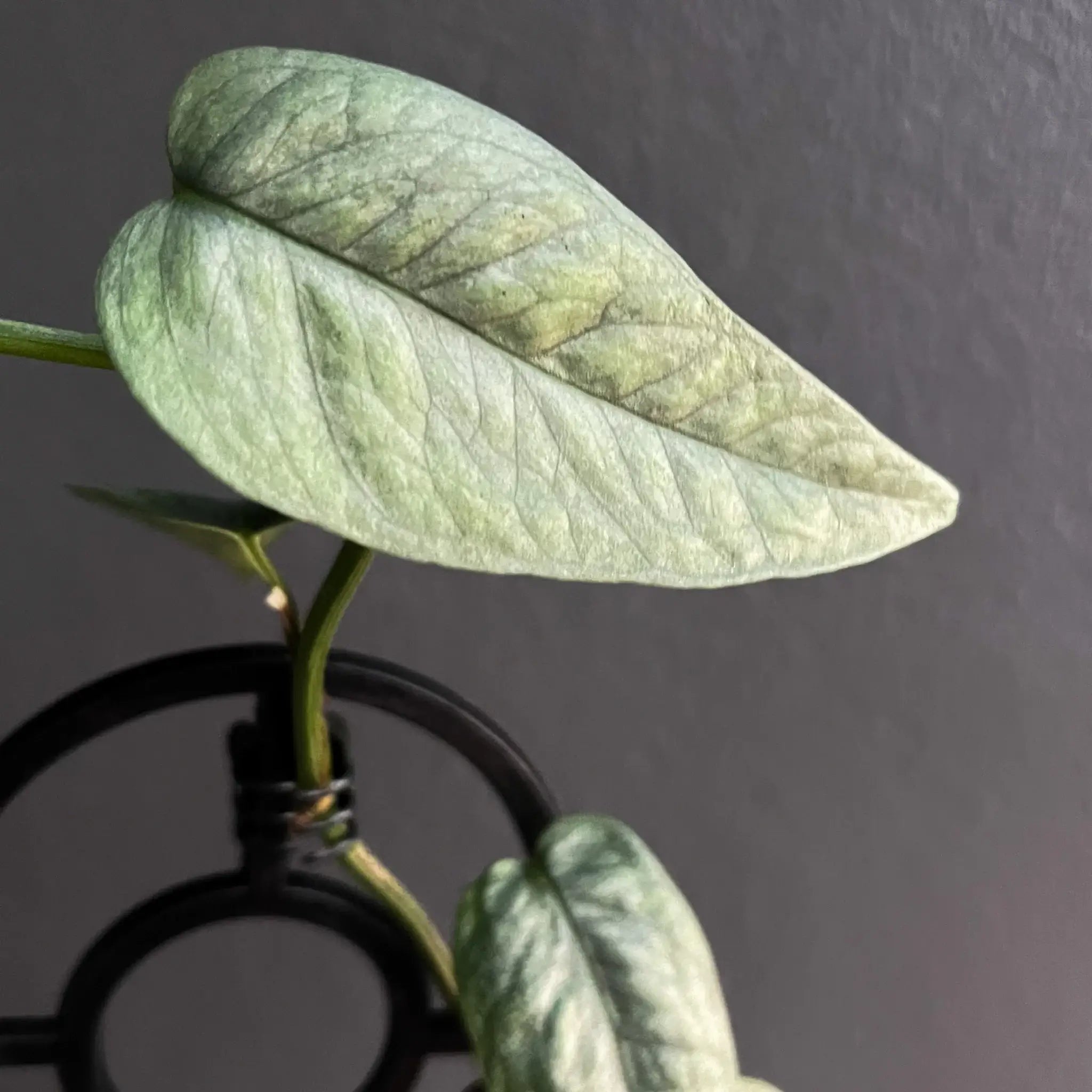 Epipremnum pinnatum Cebu Blue is a highly sought-after vining plant known for its unique silver-blue foliage. In its juvenile form, the leaves are narrow and elongated, but as the plant matures, they develop fenestrations, adding to its appeal. Thriving in bright, indirect light, this fast-growing plant is perfect for trailing in hanging baskets or climbing with a moss pole.