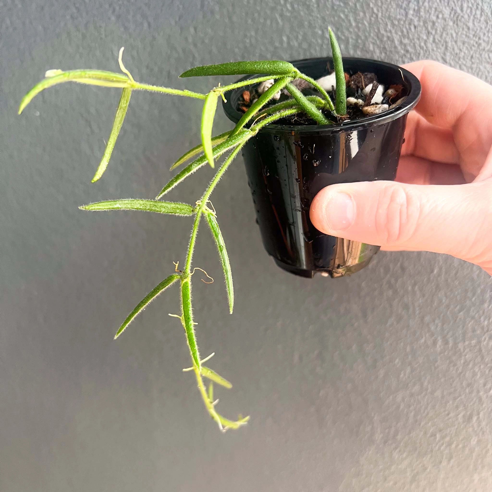 The Hoya linearis is a highly sought-after indoor plant with a unique and distinctive appearance. Unlike other Hoya varieties, its narrow, delicate leaves have a fine, fuzzy texture. This evergreen, succulent-like perennial plant features long stems that hang gracefully, forming a beautiful curtain-like display. In late summer, it produces fragrant white flowers with a lemon scent. Hoya linearis is known for its fast growth during the summer months, making it popular among plant enthusiasts looking for a visually appealing and rapidly developing plant. Its captivating attributes have contributed to its high demand in the plant market.