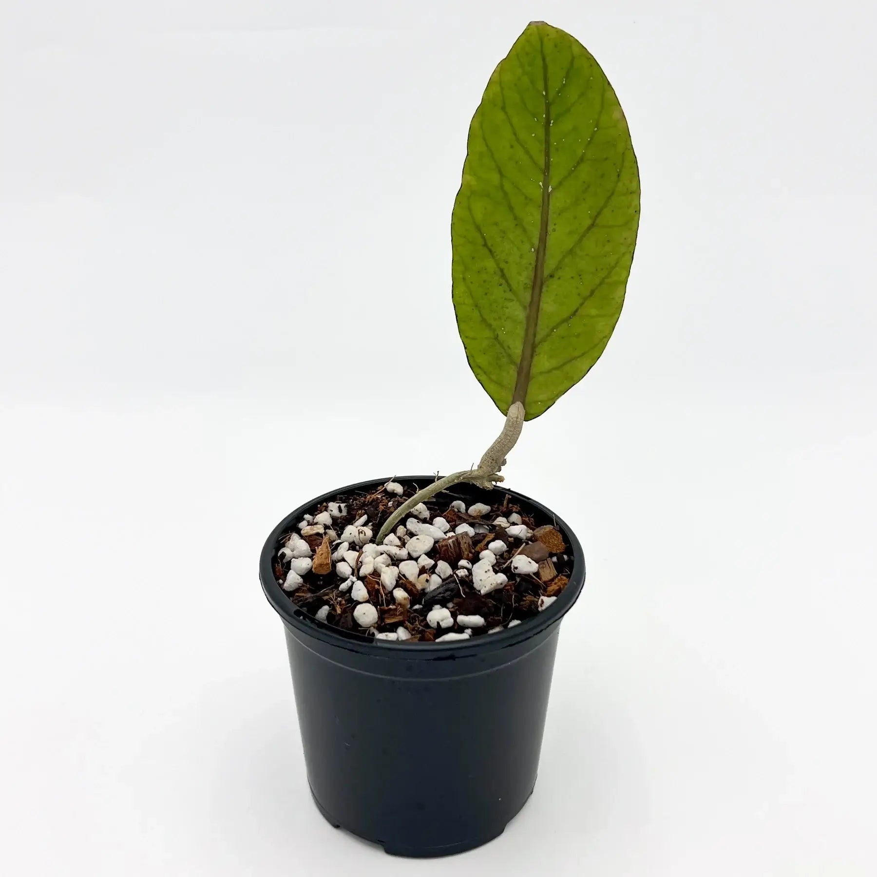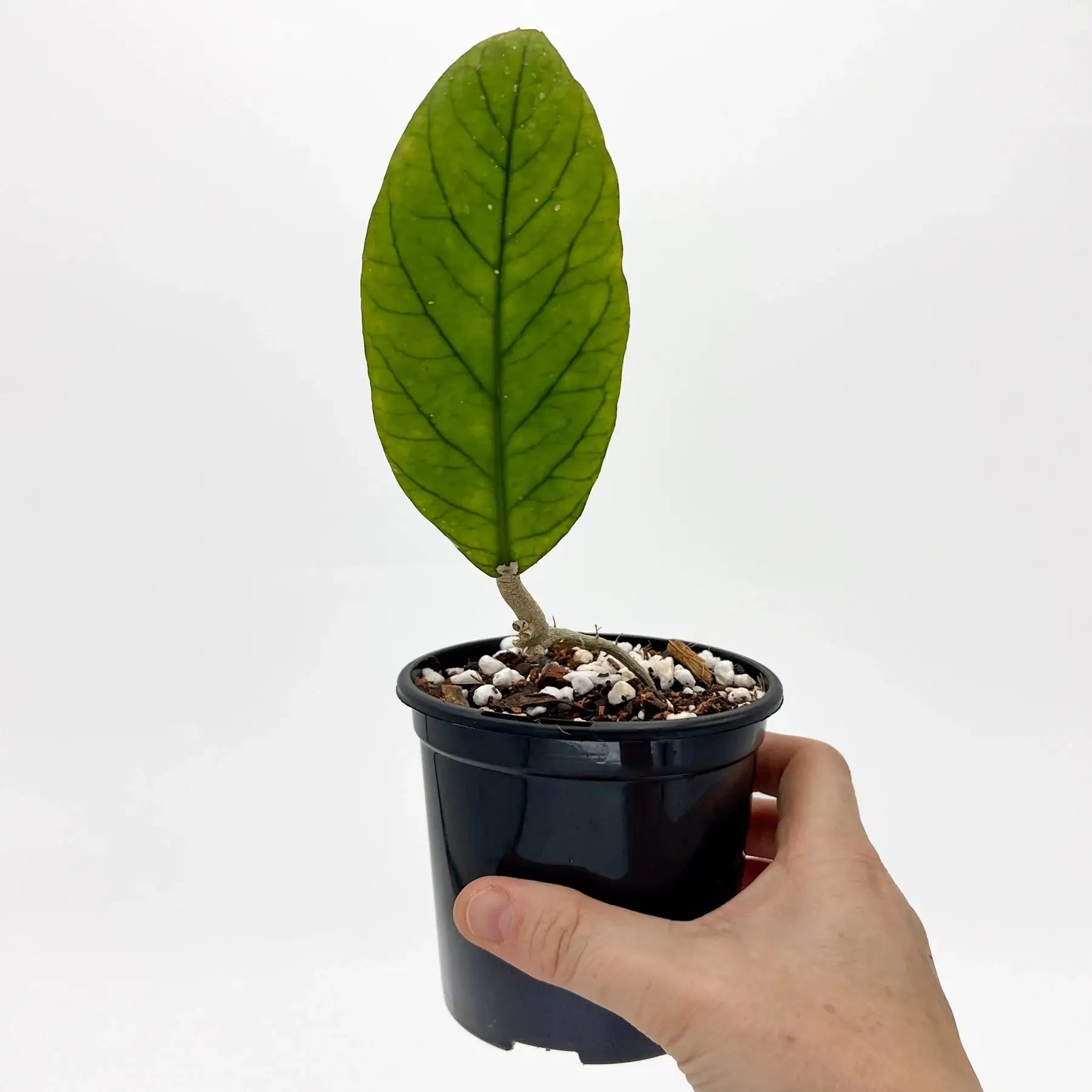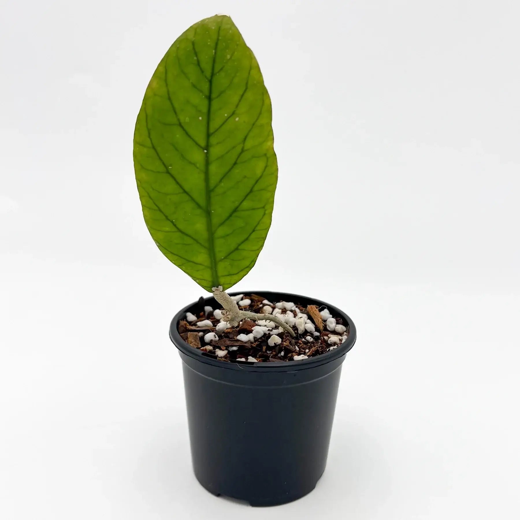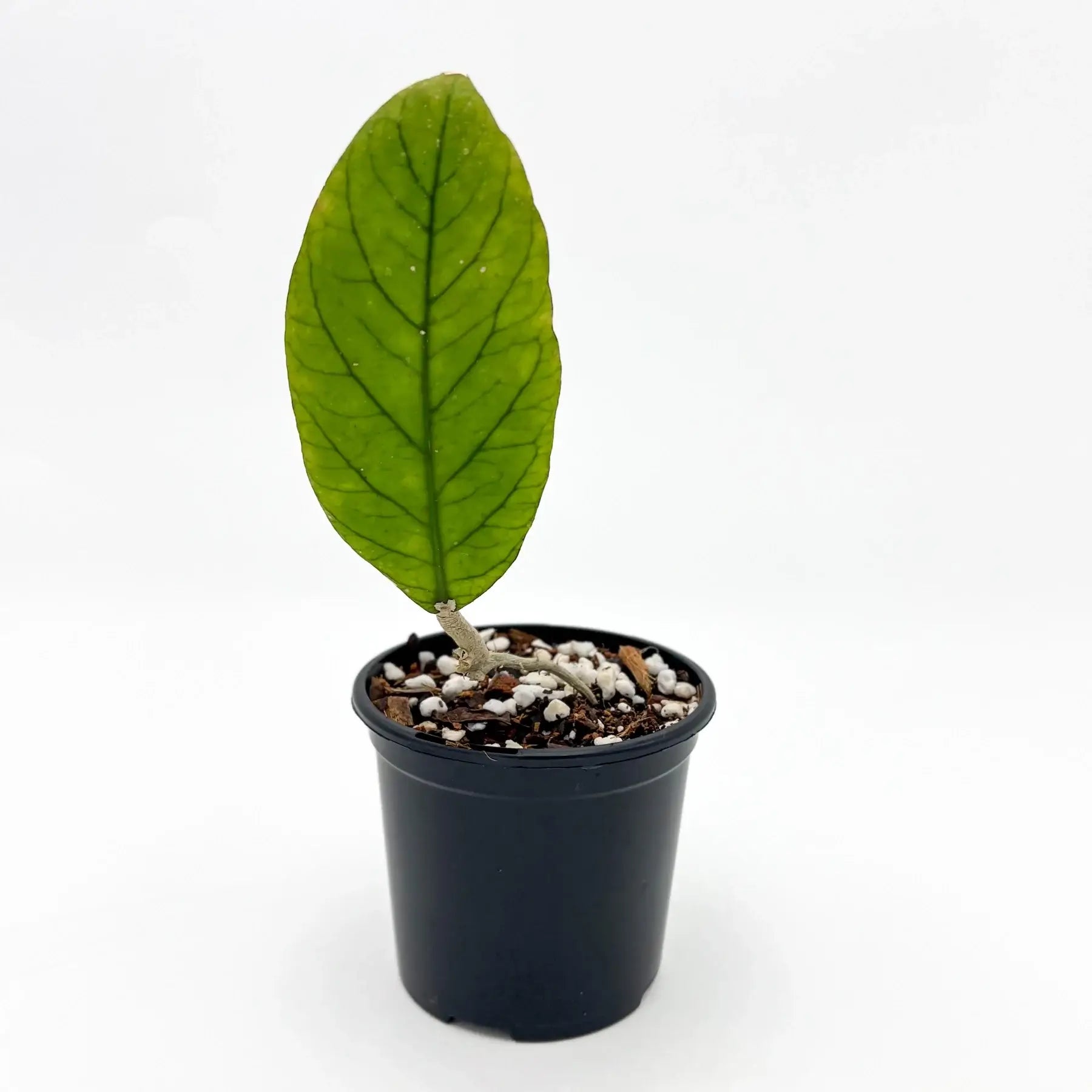 Hoya meredithii is a sought-after Hoya species known for its distinctive features. The leaves of this plant are lime green and adorned with prominent darker green venations. The leaves can grow up to 20cm x 10cm in size and have sharp, serrated edges. As a vigorous grower, Hoya meredithii showcases its impressive foliage with elegance. When it comes to blooming, Hoya meredithii produces gold flowers with a pale lemon corona and have a sweet, honey-like fragrance that adds to their charm.