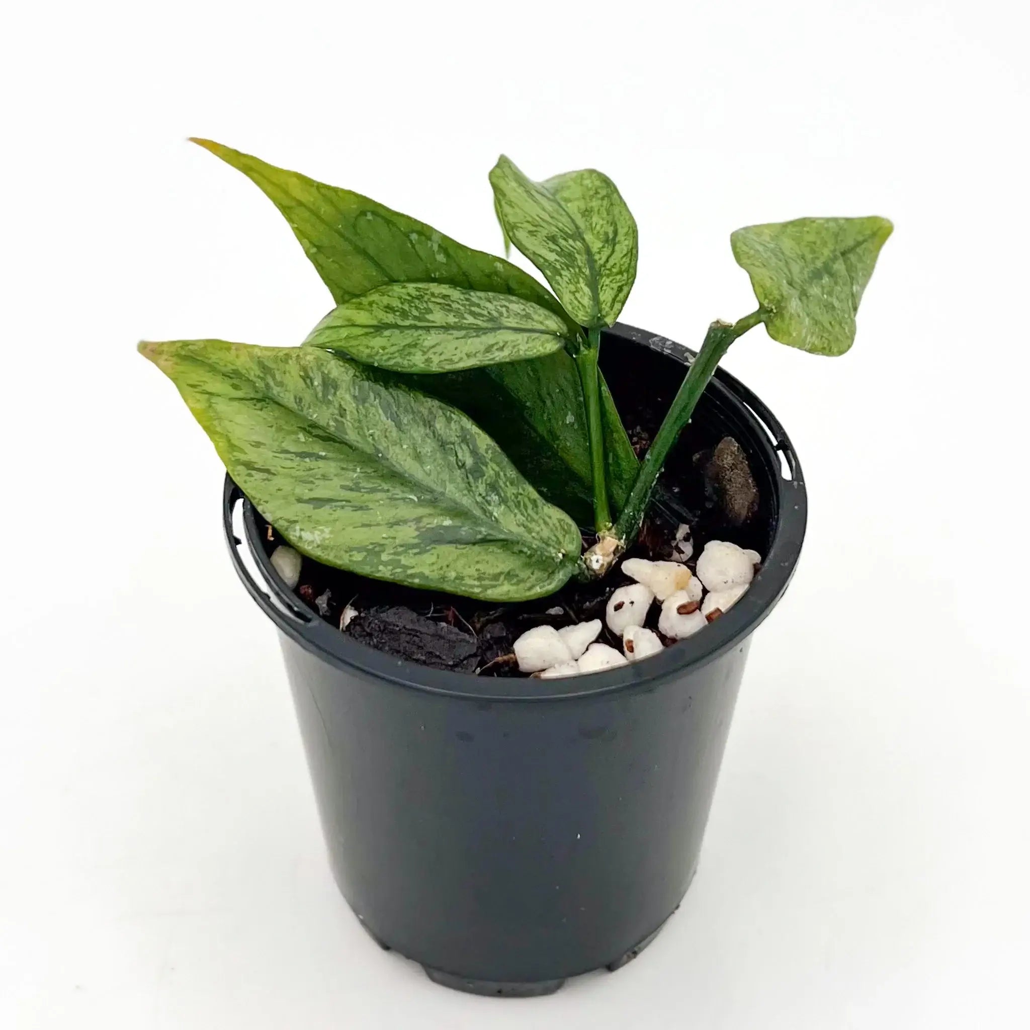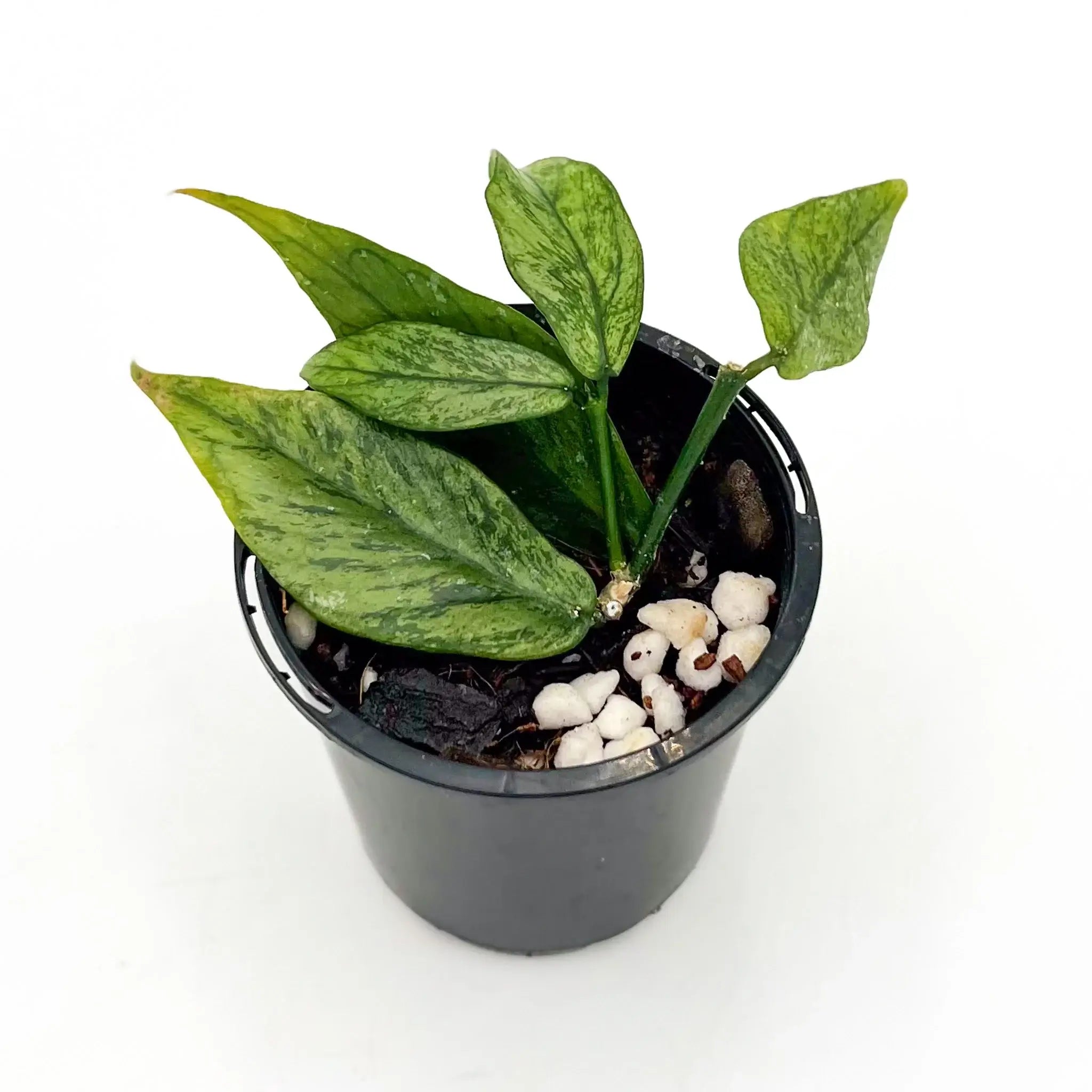 The Hoya polyurea 'Splash', also called the Fish Tail Hoya, has uniquely shaped leaves that resemble a fishtail. Measuring approximately 10–15cm in length and 5–8cm in width, these striking leaves make it a must-have for collectors. The ‘Splash’ variety adds an extra layer of charm with its speckled patterns across a soft green backdrop, giving the foliage a textured and artistic appearance.