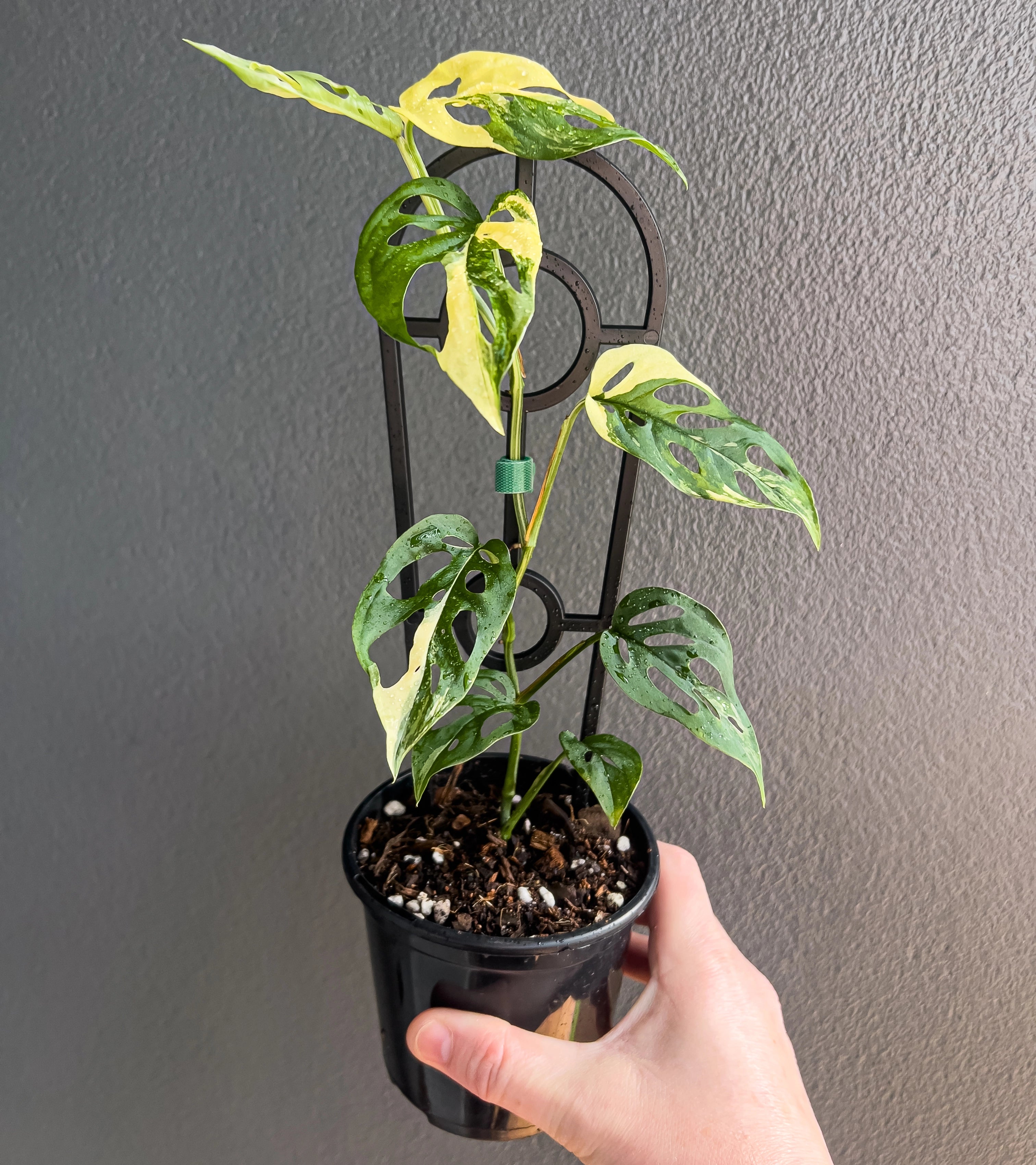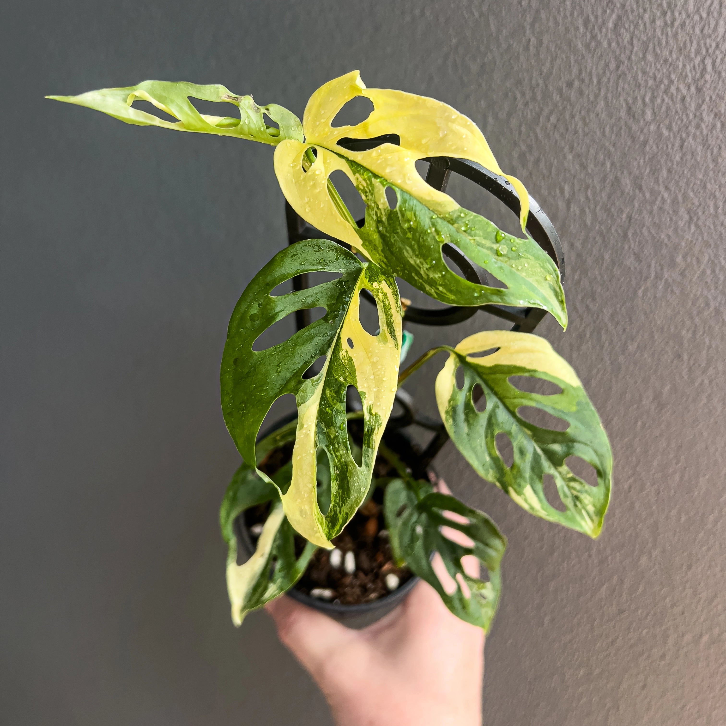 Humidity: Thrives in humidity levels above 60%. Higher humidity is especially beneficial for variegated Monsteras to encourage lush, vibrant growth and larger leaves.