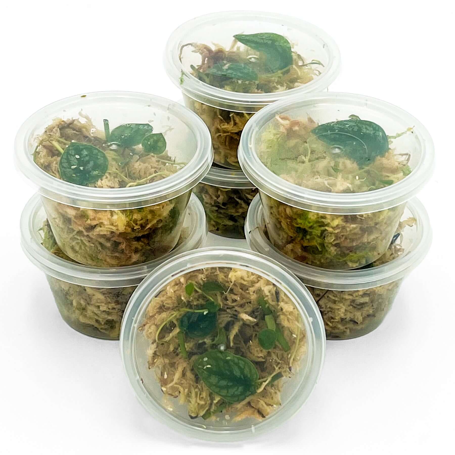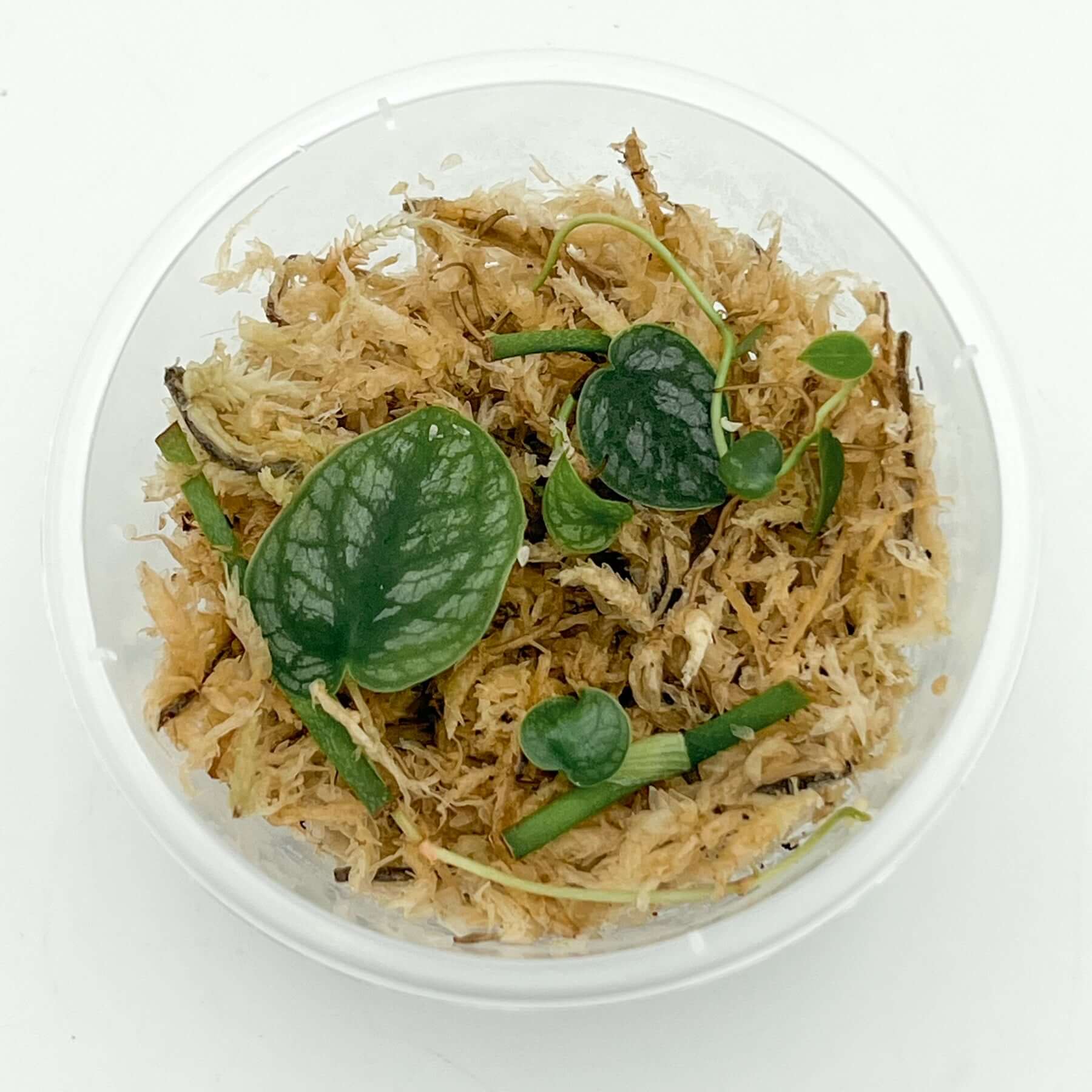 Please note that these Monstera Dubia Starter Packs contain small, rooted propagations that are currently growing roots in Sphagnum moss, and as such, are not yet established plants.