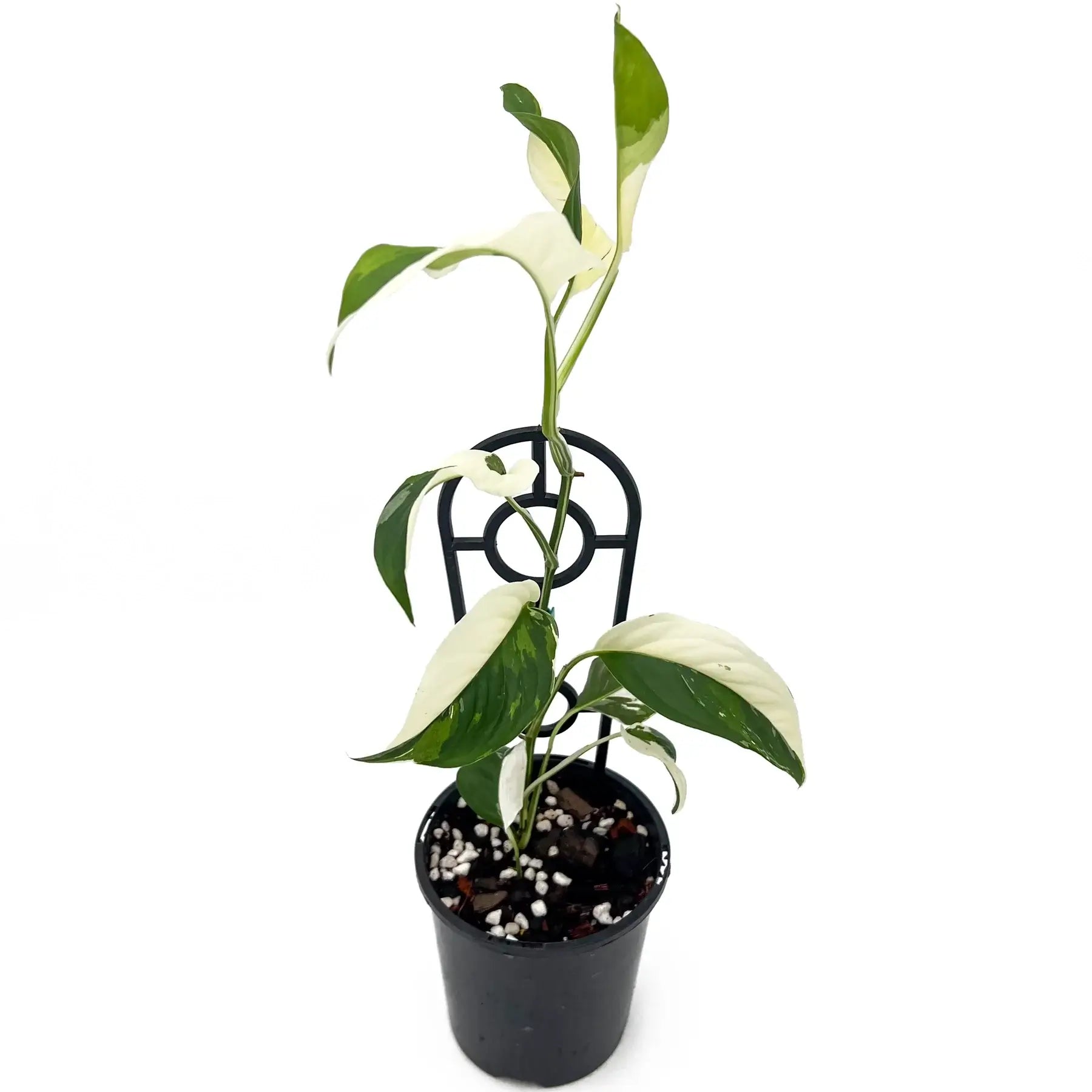 The Monstera laniata variegata, a striking version within the adansonii species, showcases magnificent white splashes across its green leaves. Growing it on a moss pole encourages the development of larger leaves which, as the plant matures, begin to fenestrate near the central vein. Officially known as Monstera adansonii var laniata Variegata, this plant is selected randomly for purchase, ensuring you receive a high-quality specimen like the ones shown in the images. However, it's important to understand that the extent of variegation varies among plants, and its future development cannot be guaranteed. Some of these plants have mint variegation, and some have more of a blocky variegation.