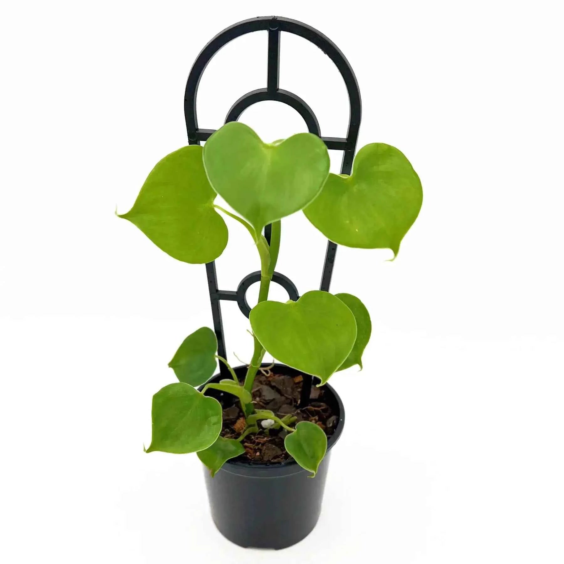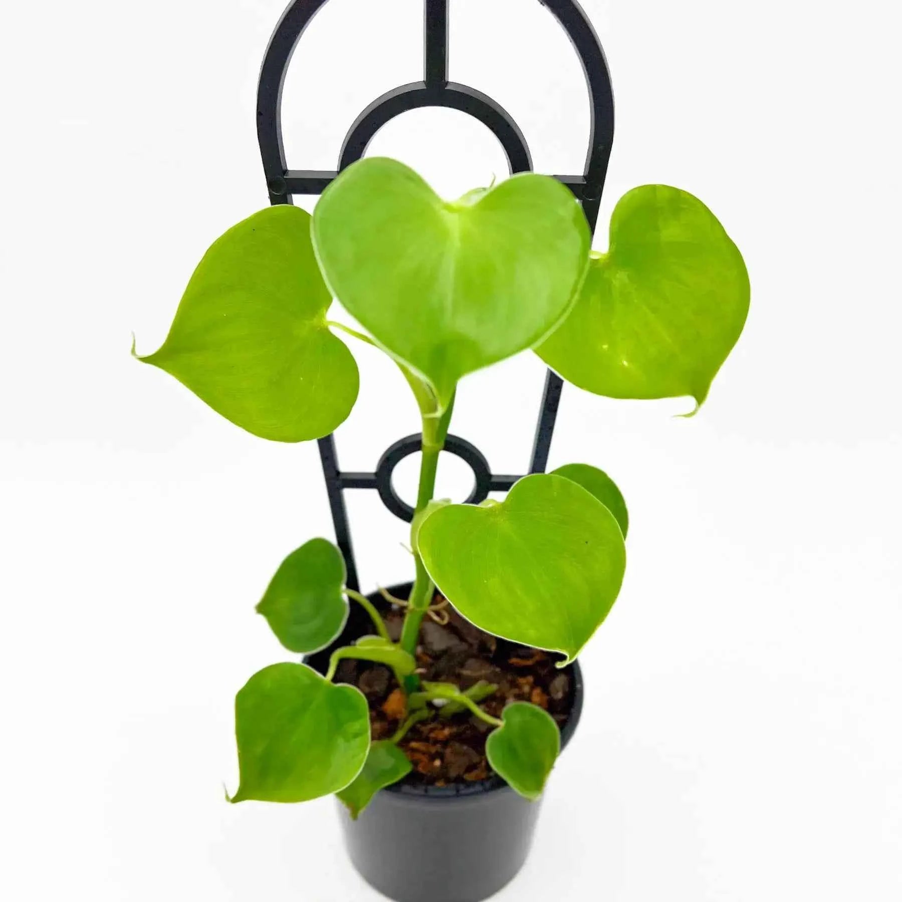 The Philodendron grazielae stands out with its glossy green stems and heart-shaped leaves that narrow to a point. These thick leaves create a lush look. It’s an easy plant to care for, thriving even with minimal attention, and grows well. It's a climber and looks great when grown up a totem, making any space feel like a tropical oasis.