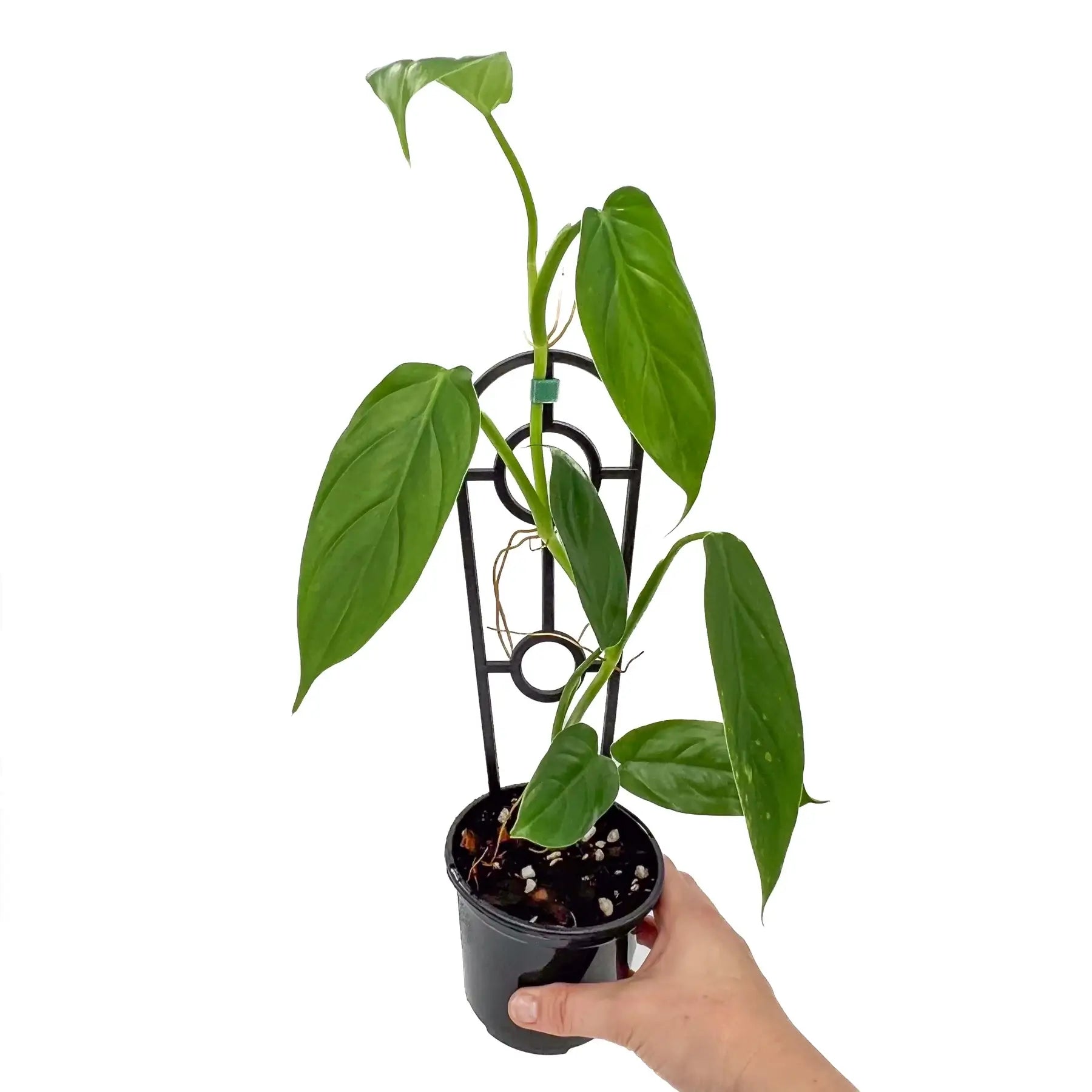 Philodendron hastatum 'Green' is the lush green counterpart to the popular 'Silver Sword', featuring the same distinctive, elongated, arrow-shaped leaves in rich, glossy green. As a climbing variety, it benefits from support, allowing its foliage to mature into larger, more defined shapes. A striking yet easy-care plant perfect for collectors who love the unique shape of the Silver Sword but prefer deep-green foliage.