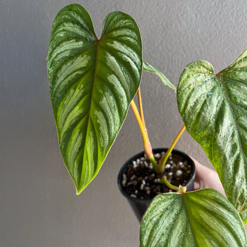 Our Philodendron mamei plants are grown from stem cuttings taken from our mother plants, ensuring that each plant is a true representation of the cultivar's unique characteristics. These propagations grow into stunning plants. With its large, glossy, elongated heart-shaped leaves with splashes of silver markings. The red/maroon spathe and cataphyll distinguishes it from other Philodendron varieties.