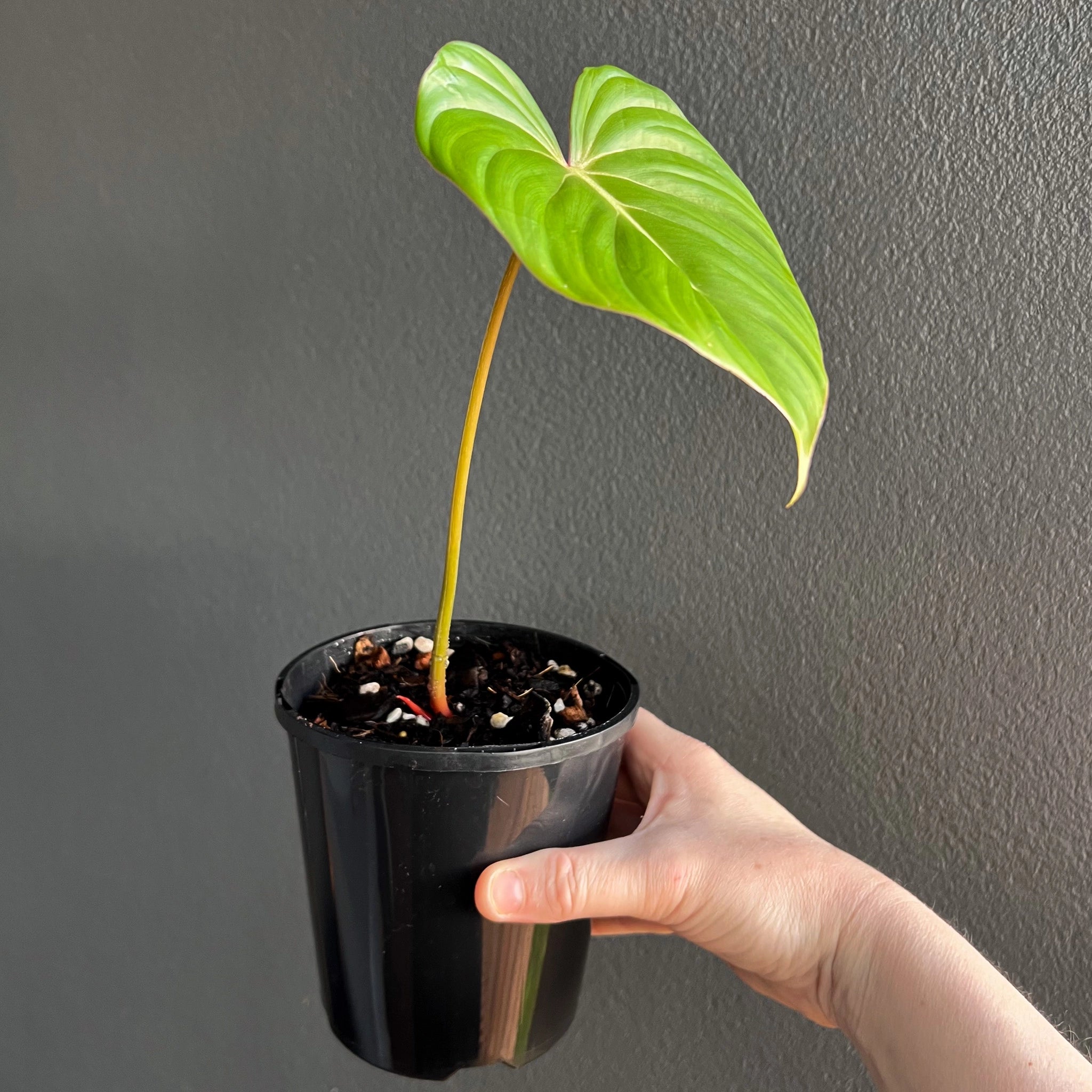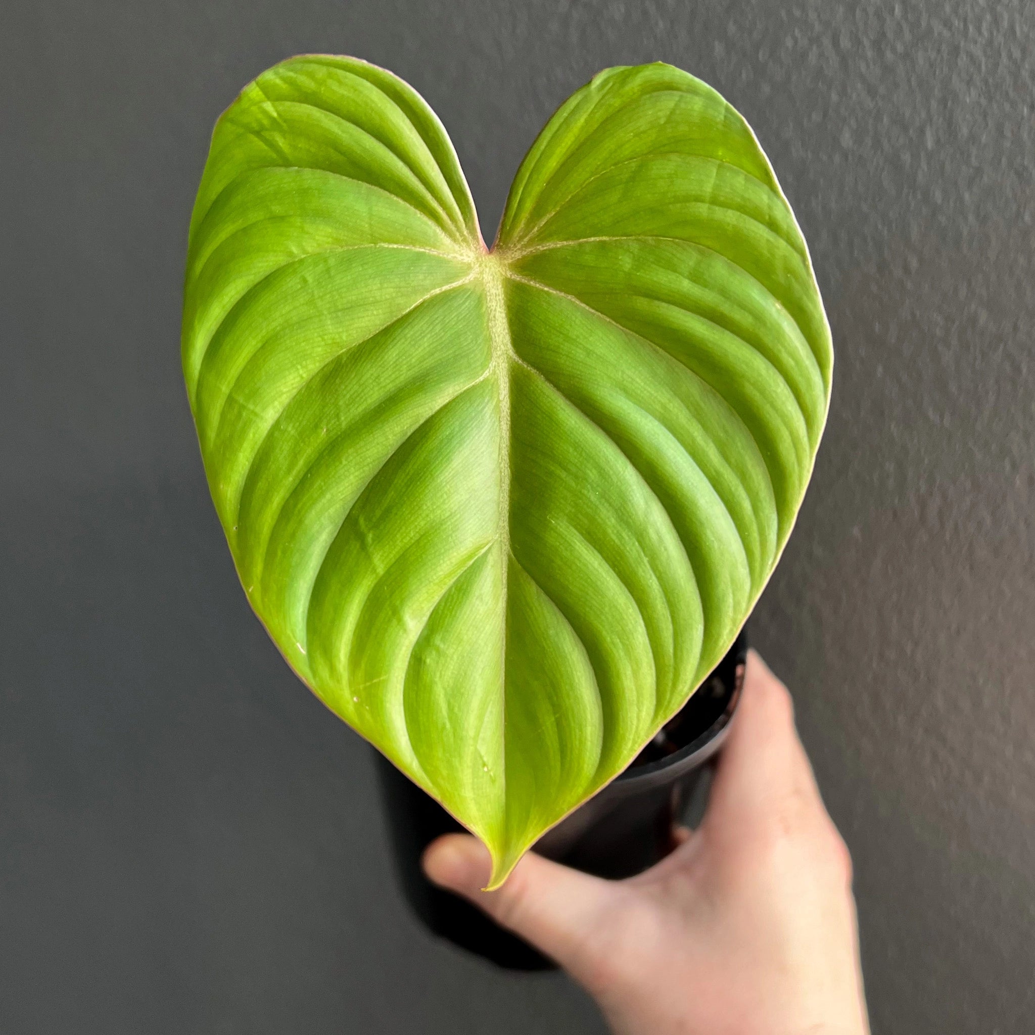 The Philodendron pastazanum x gloriosum is a striking collector's plant with large leaves that combine the best traits of its parent plants. The leaves have a slightly elongated shape compared to Philodendron gloriosum, with a more defined, symmetrical heart shape reminiscent of pastazanum. New growth emerges with a lighter hue before maturing into a rich, lush green. This hybrid is a crawler, meaning it grows horizontally along the soil, developing thick, sturdy petioles and a creeping rhizome. Over time, it forms an impressive display of broad, elegant foliage, making it a stunning feature in any plant collection.