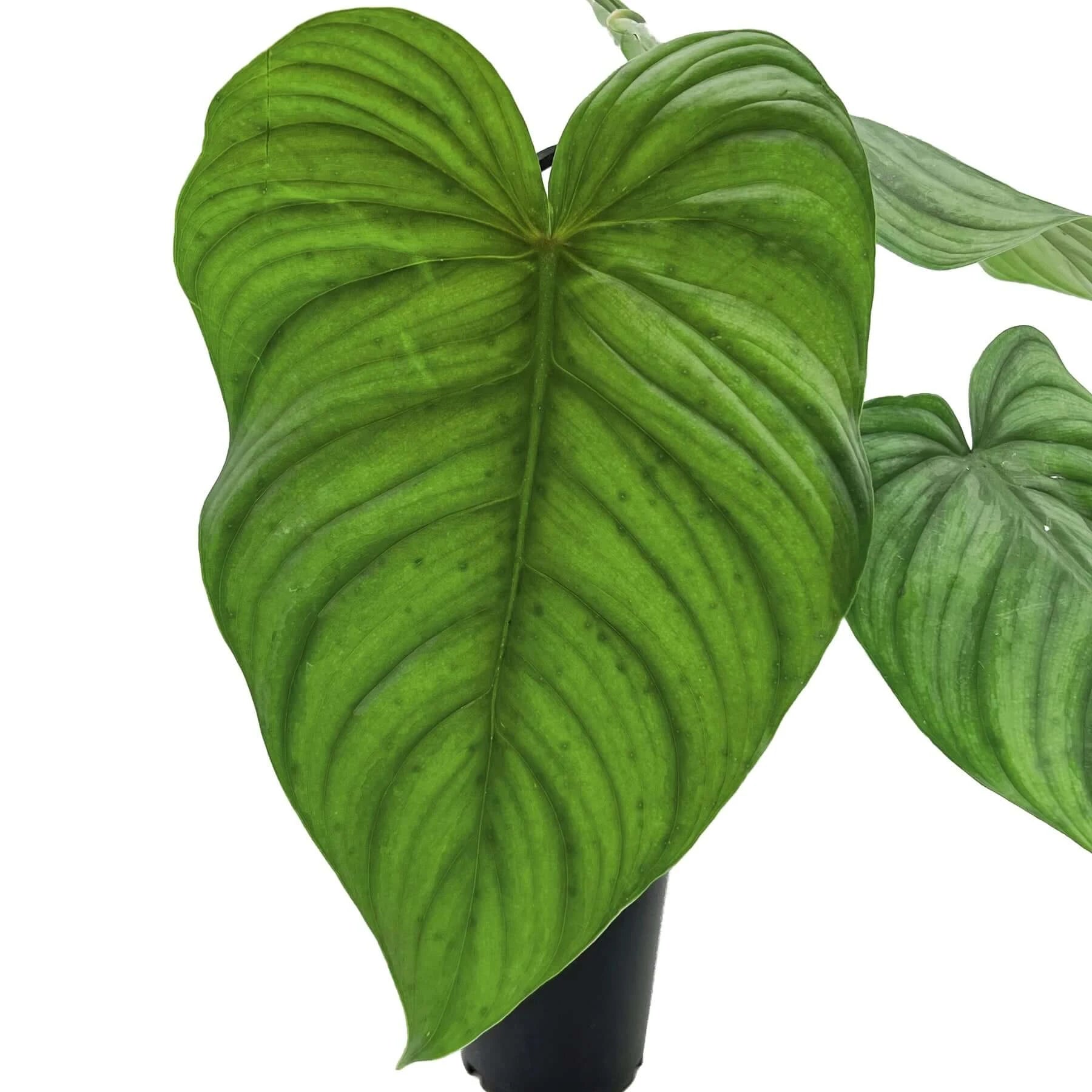 The Philodendron plowmanii X tenue is an intriguing tropical plant showcasing two Philodendron species' characteristics in its hybrid form. This hybrid plant inherits features of both parent plants, with remarkable textured deep green leaves and glossy sheen. The leaves exhibit a distinctive shape, featuring a pointed tip and deep lobes, giving them a striking and eye-catching look. This combination of texture and form makes the Philodendron plowmanii X tenue a standout addition to any indoor plant collection.