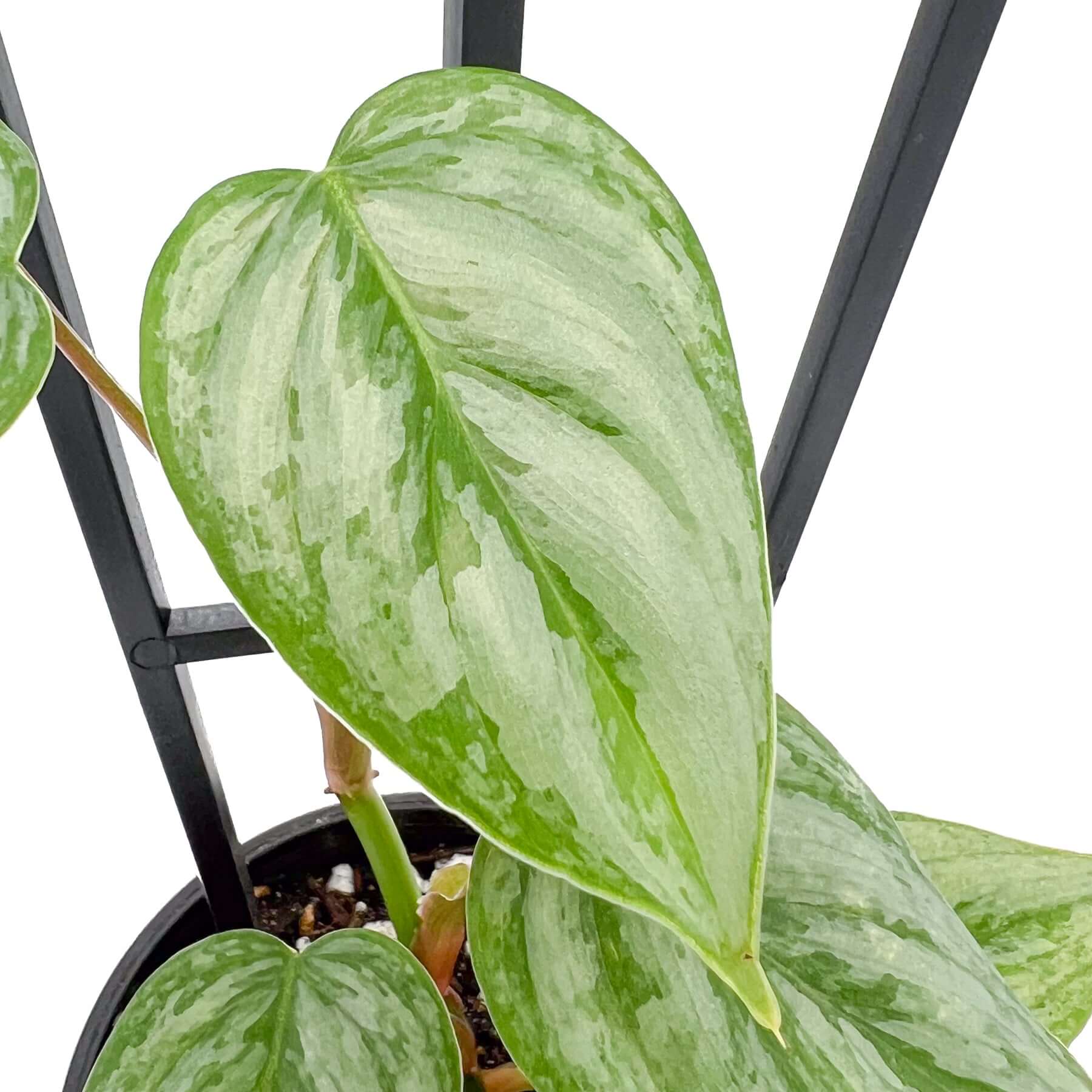 The Philodendron sodirini distinguishes itself within the Philodendron family through its compact growth and stunning variegated foliage, born from a specialised cultivation process utilising chemical radiation. This miniaturised cultivar captivates with leaves that showcase a lively mix of light green and pronounced silver variegation. Adapted to both climbing and terrestrial phases due to its hemiepiphytic nature, the sodirini thrives under moderate light and consistent moisture, making it perfect for terrariums or limited spaces.