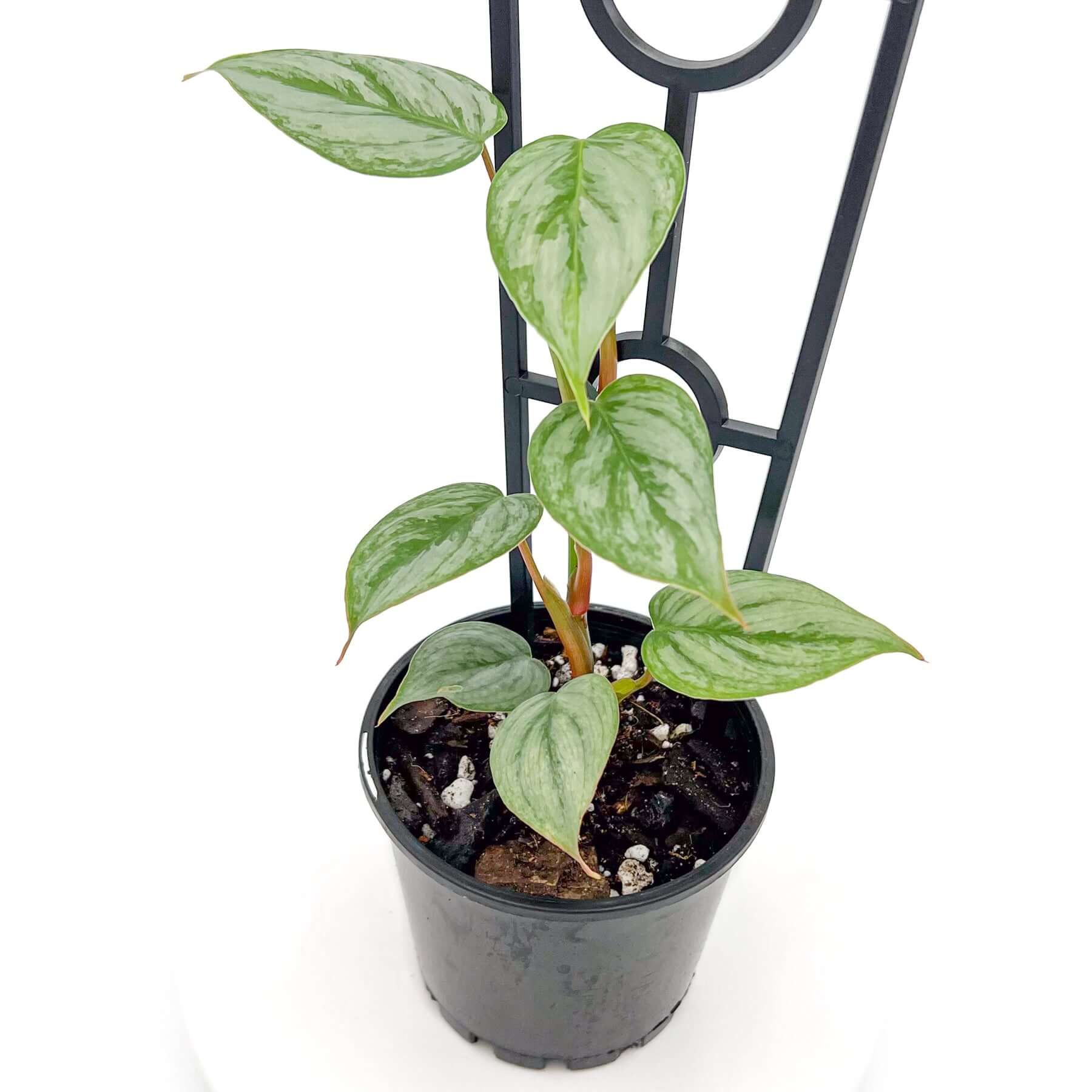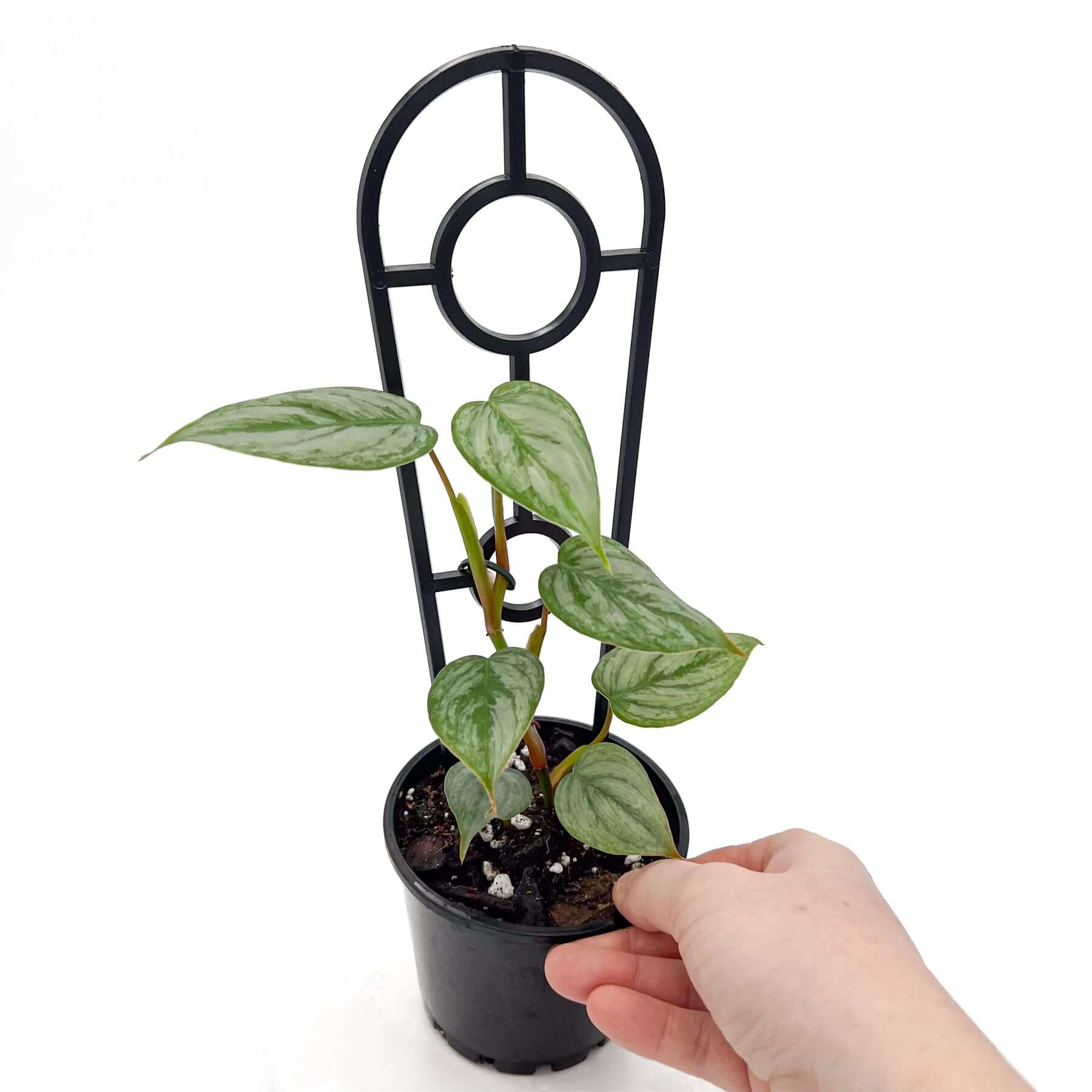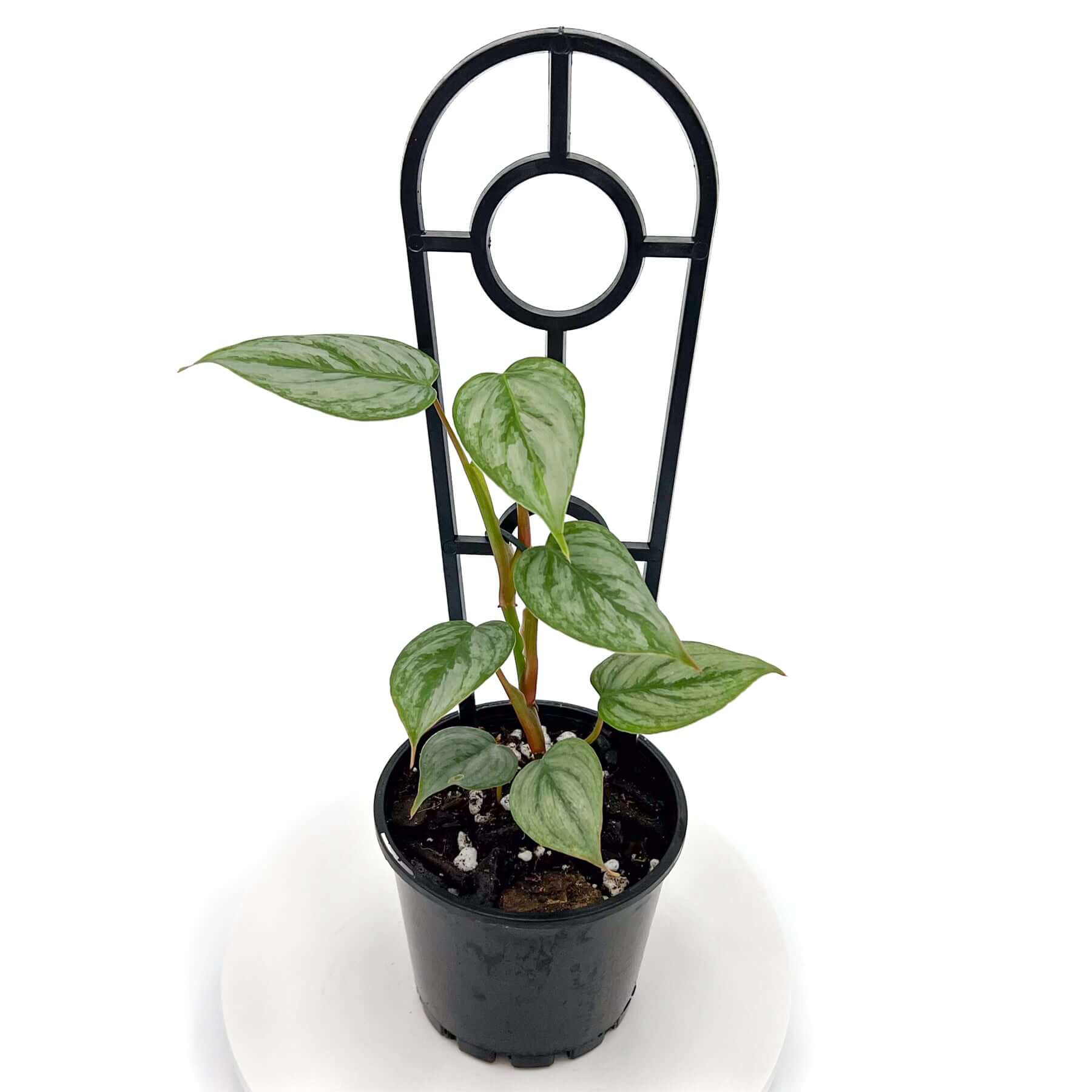 Diverging from its relative, the Philodendron sodiroi, the sodirini remains small, with noticeable differences becoming apparent as it matures. The larger leaves and closer node spacing of the sodiroi contrast with the sodirini's petite foliage and extended internodes. This playful twist on the ‘mini sodiroi’ offers a charming and enduringly silver-leafed addition to any indoor garden collection.