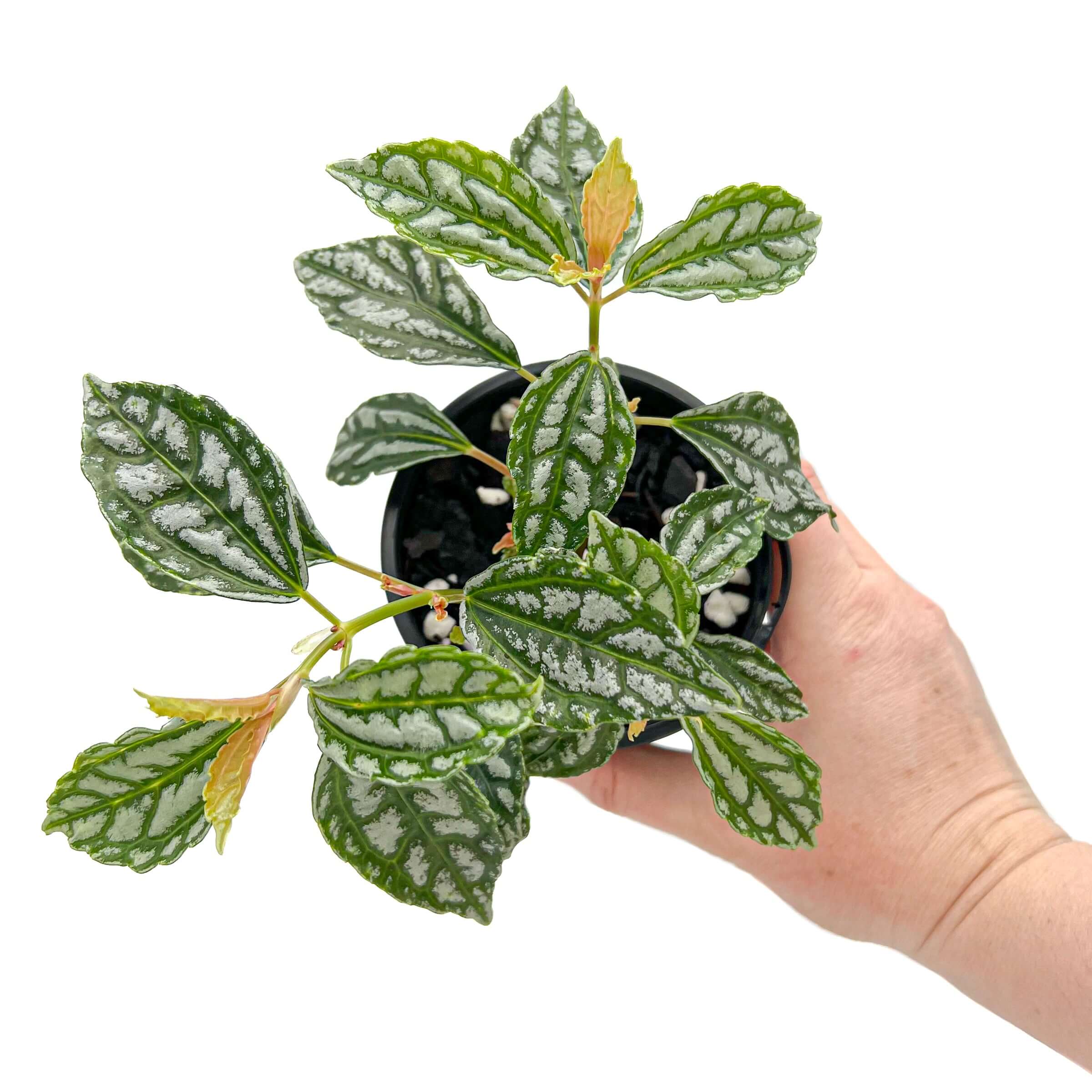 The Pilea Caderii is known as the 'Aluminium Plant' or 'Watermelon Pilea'. It is called the Watermelon Pilea because of the distinctive, silvery splashes on its leaves. The Watermelon Pilea has green, oval-shaped leaves with striking raised silver patches. They are an easy-to-grow plant and perfect for hanging baskets.