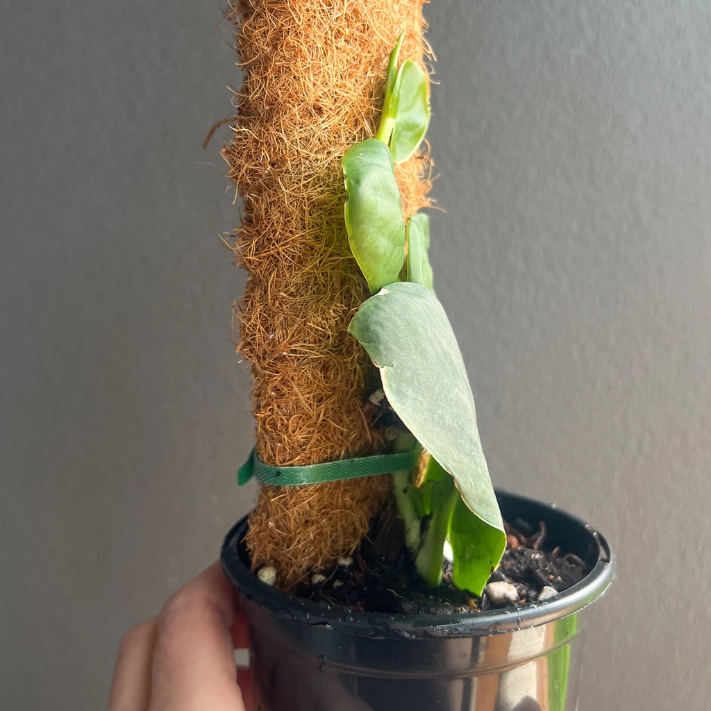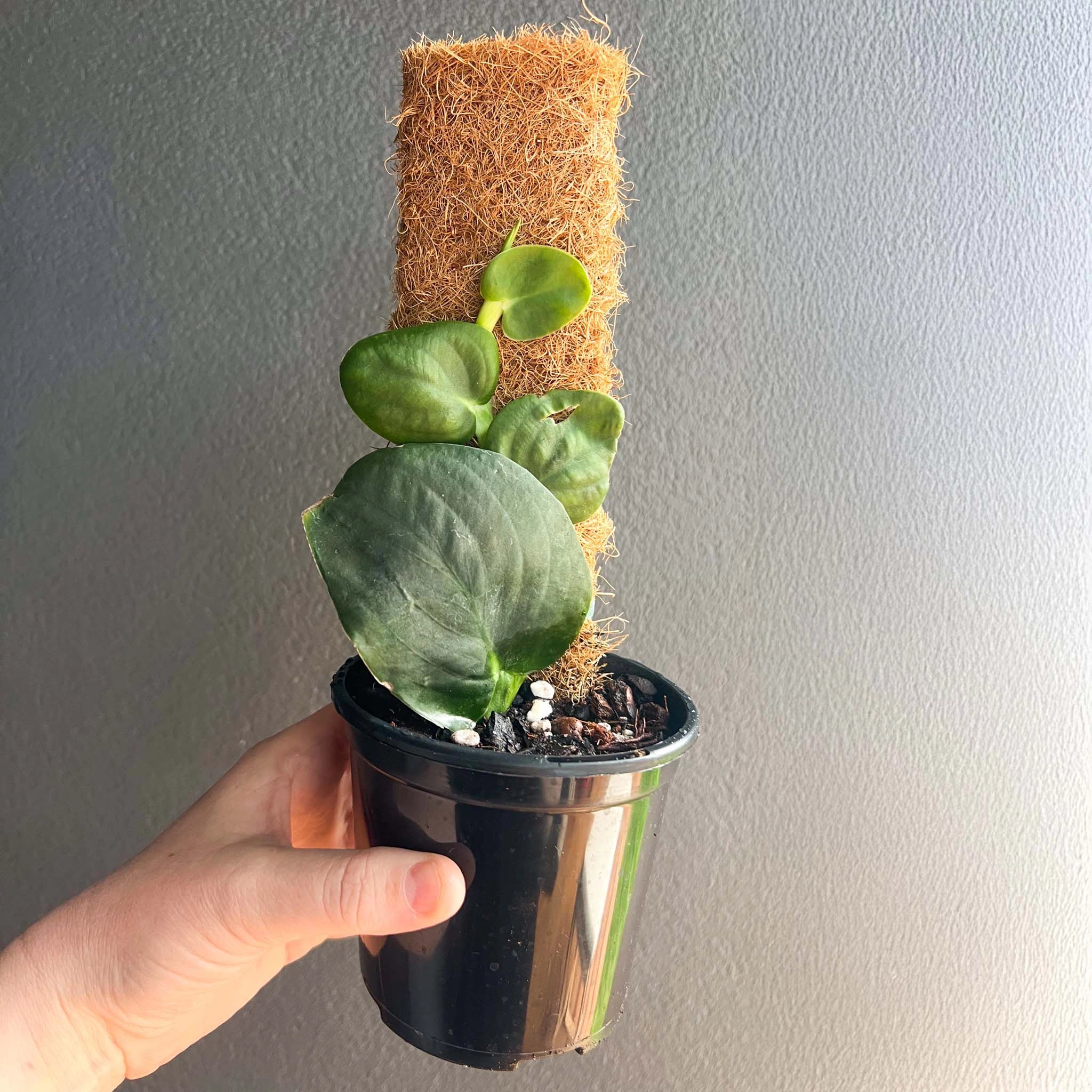 Rhaphidophora korthalsii is a true standout in any rare aroid collection, known for its dramatic shingling growth habit. When given a vertical surface to climb, its thick, glossy leaves press flat against the substrate, mimicking natural growth up tree trunks in the wild. As the plant matures, the leaves increase in size and can eventually develop fenestrations if allowed to climb freely. These plants are perfect for terrariums, cabinets, or mounted boards. Best suited to experienced collectors, this species prefers high humidity, warm temperatures, and consistently moist (but not soggy) substrate. A stunning species that rewards patience and the right conditions.