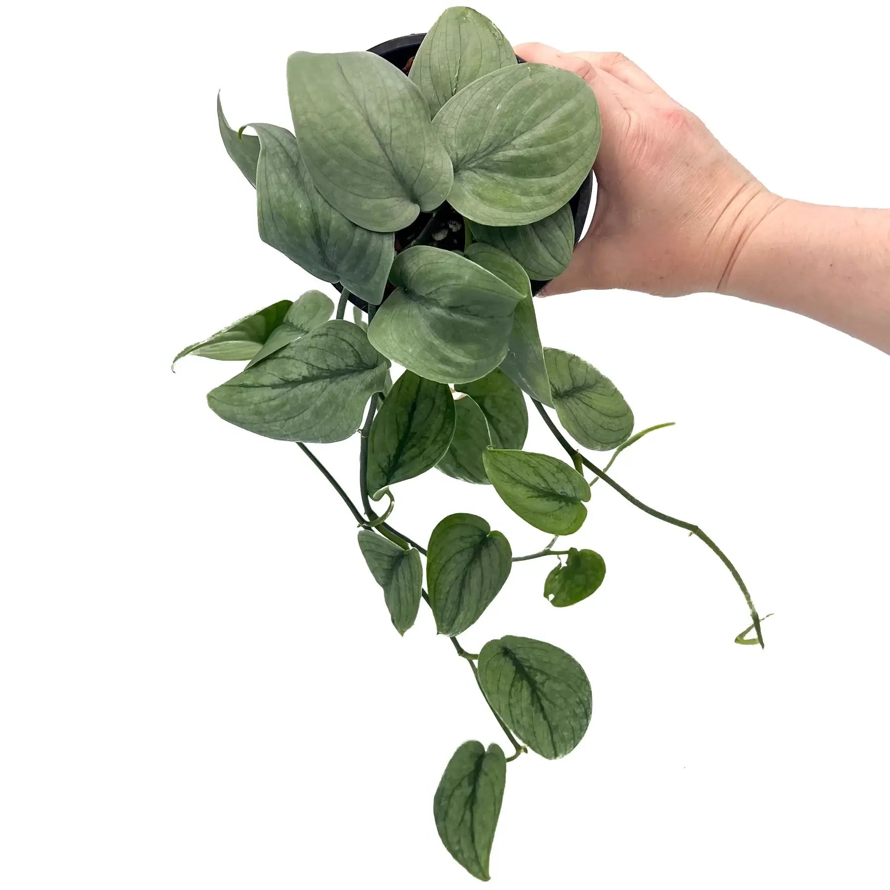 Scindapsus pictus Platinum, also known as Silver Hero, is a rare variety with stunning, silvery-green leaves that shimmer in the light. This trailing plant is perfect for hanging baskets or allowing them to cascade from shelves, adding a touch of elegance to any indoor space. It thrives in bright, indirect light and well-draining soil, making it both easy to care for and rewarding. The Silver Hero will grow quickly in its ideal conditions, showcasing its beautiful, metallic sheen.
