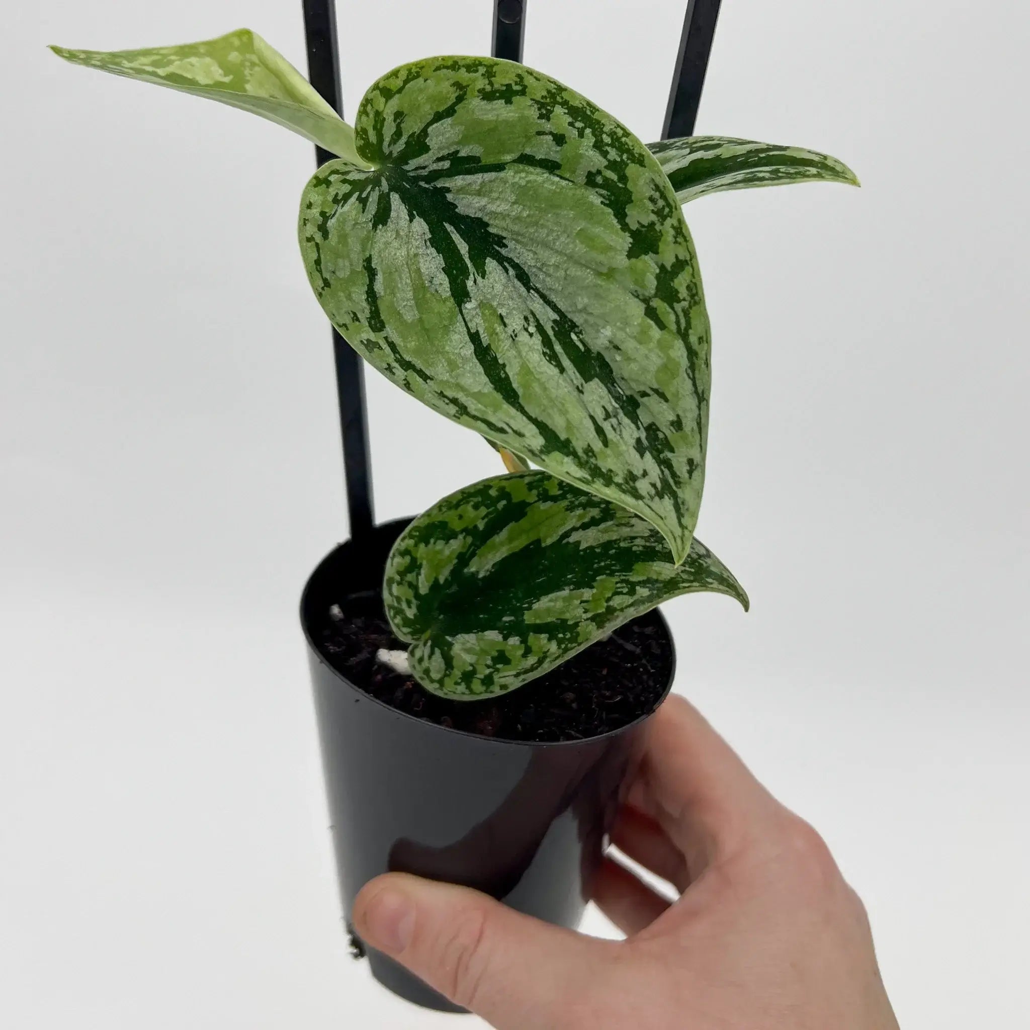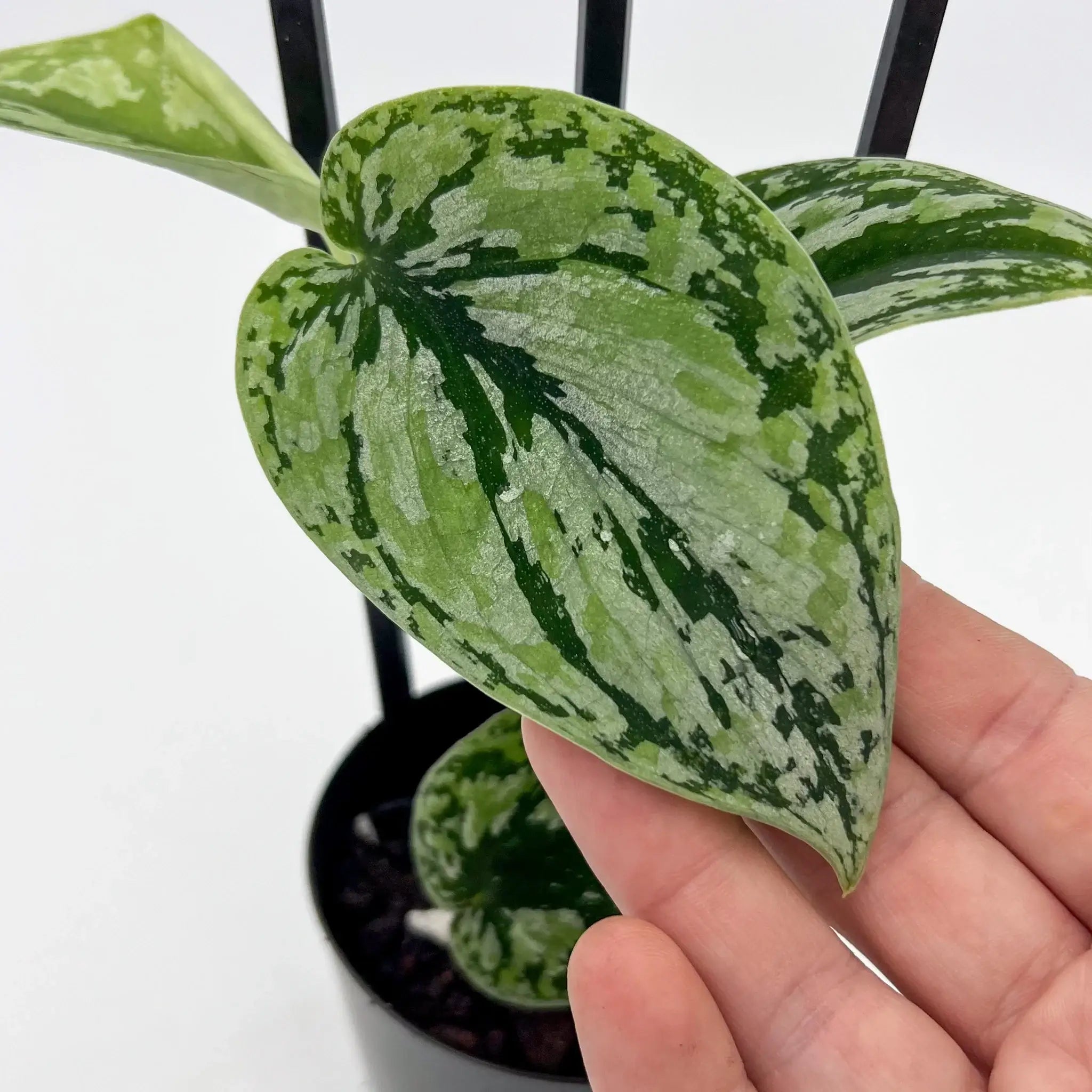 This rarely offered Scindapsus pictus 'Tricolour' features beautiful heart-shaped leaves with a mix of mint, silver, and soft green tones, often with subtle cream streaks that vary from leaf to leaf. These plants have exceptional variegation, making them a true collector’s item. Grown in 10cm propagation pots, this trailing or climbing aroid thrives in bright, indirect light and does best when allowed to dry slightly between waterings. A slow grower but very rewarding over time, this variety is ideal for collectors chasing unusual foliage with high visual appeal.