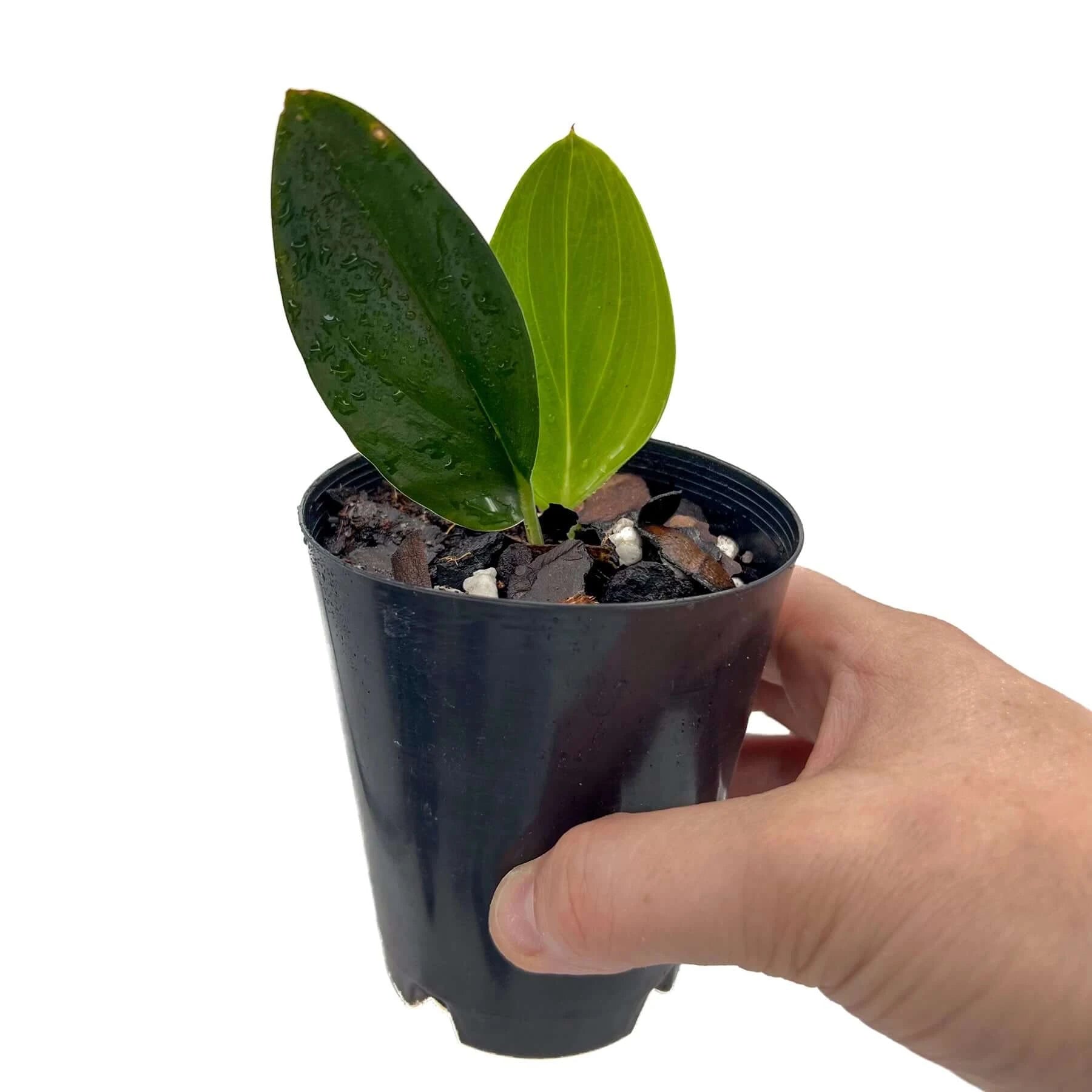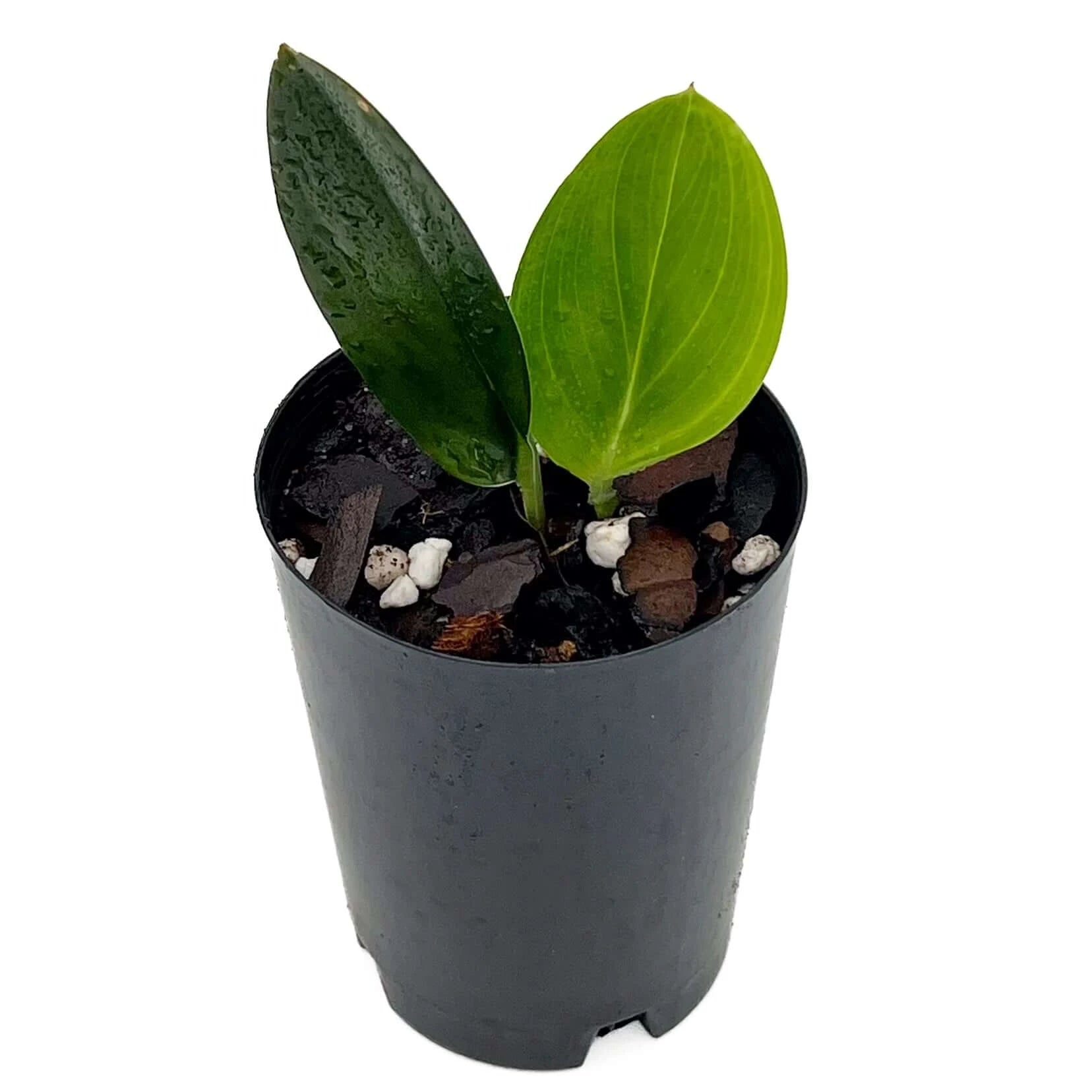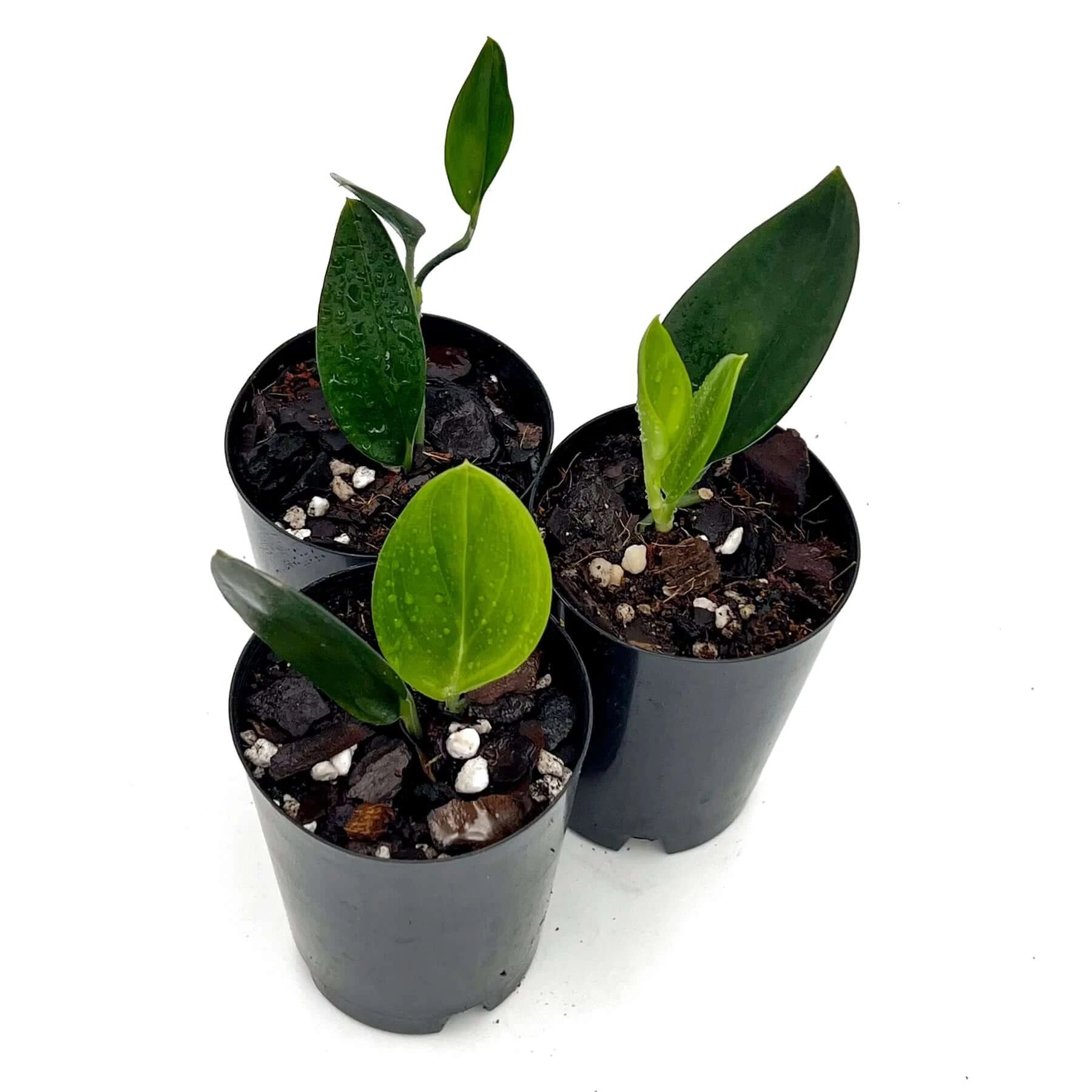 The Scindapsus treubii 'Dark Form' features striking, deep green to almost black leaves, giving it a unique and sophisticated look. The glossy, dark leaves add a bold contrast to any indoor setting, making it a popular choice for plant collectors. This plant is a strong climber, but it's also low-maintenance, thriving in indirect light and requiring minimal watering. It's perfect for adding a touch of drama to your home decor without needing constant care.