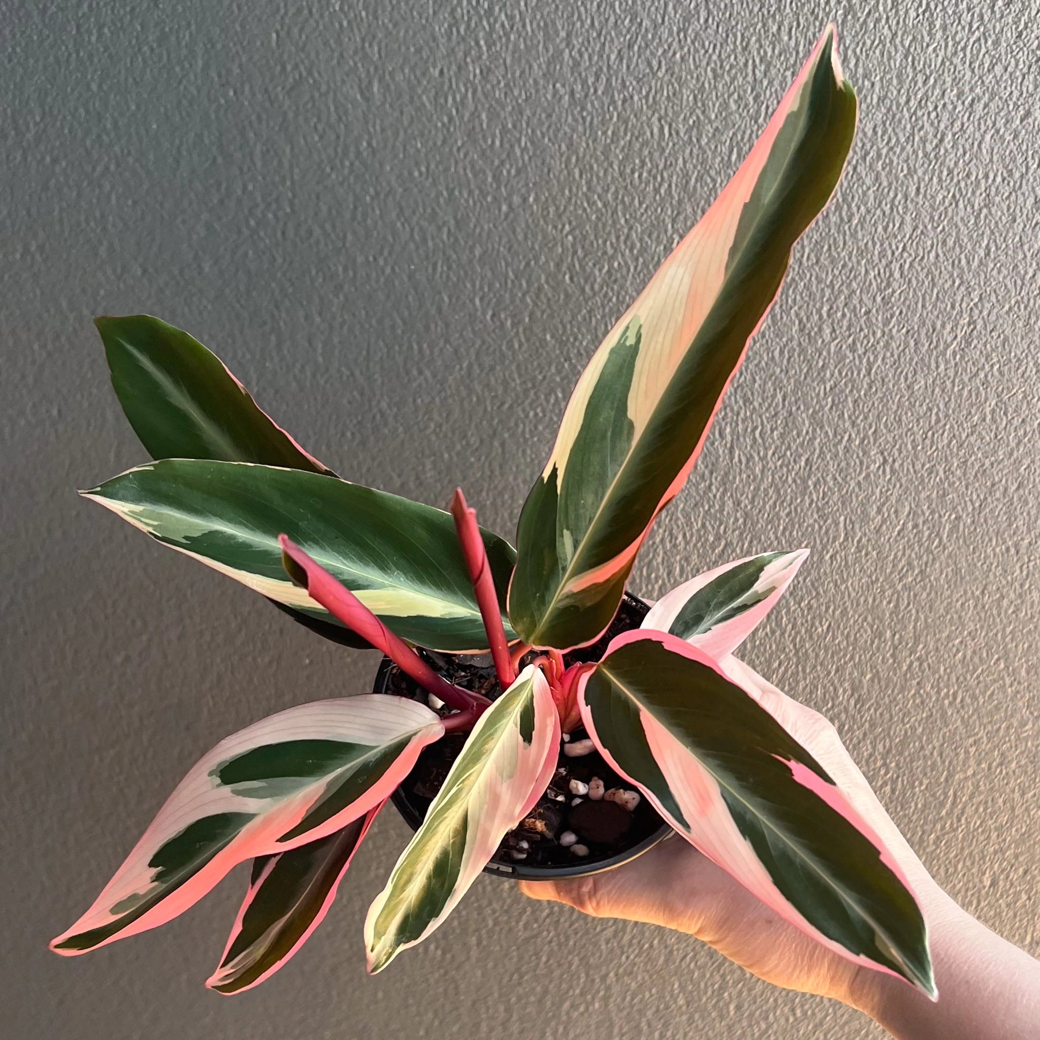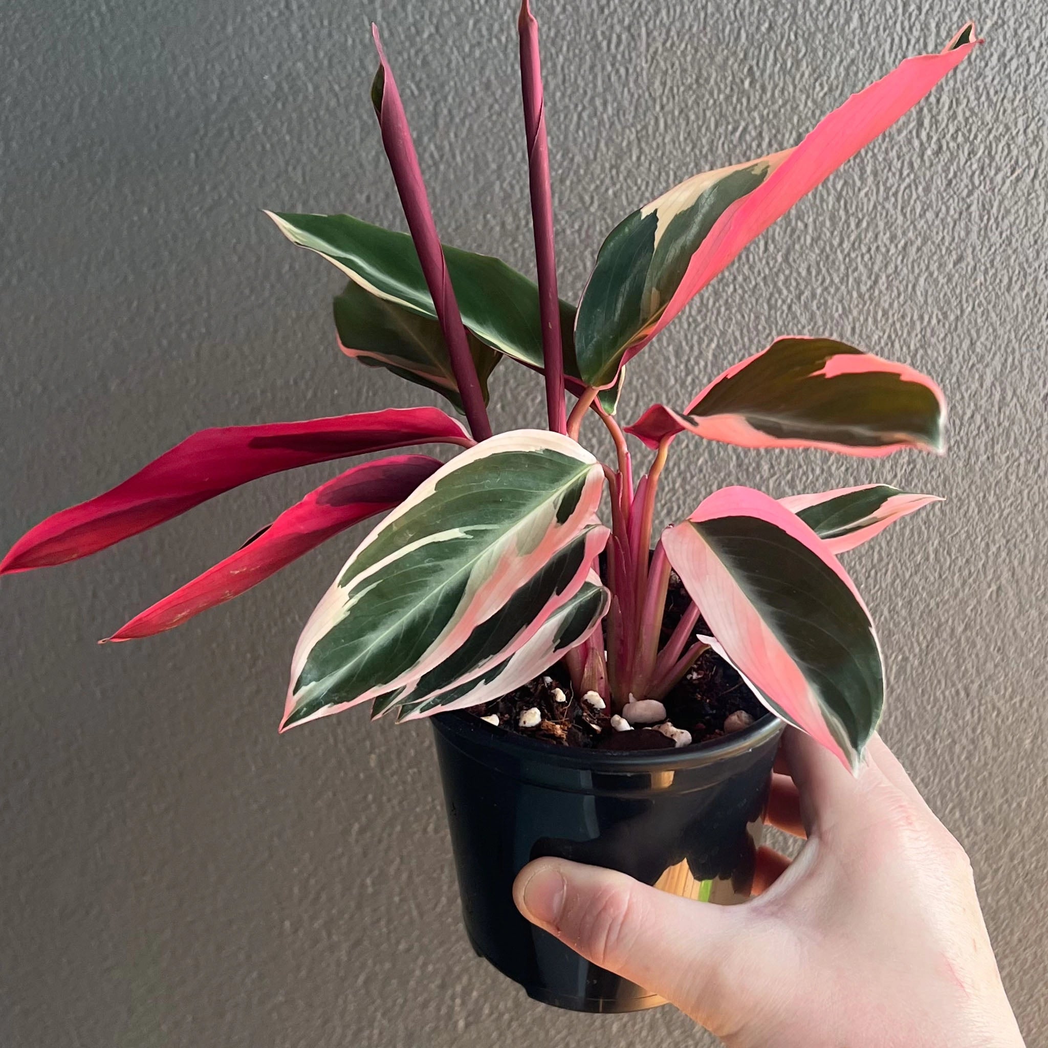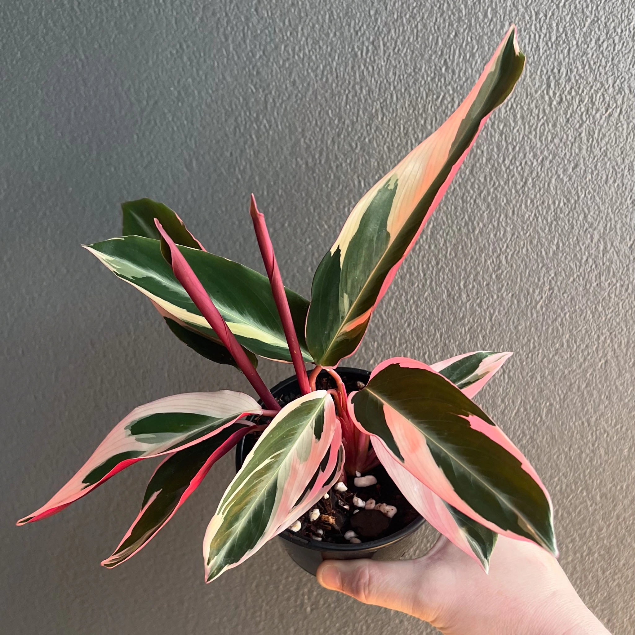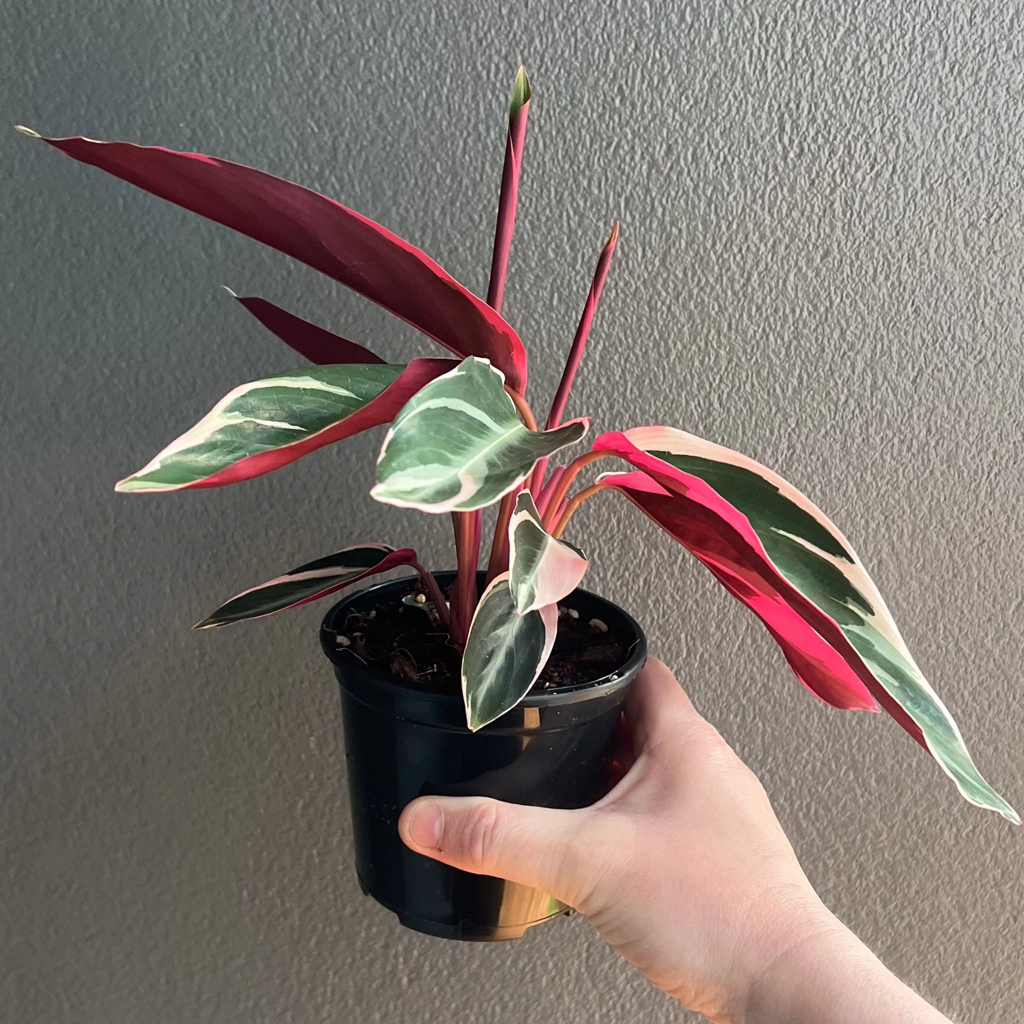 Stromanthe sanguinea Tricolour is a striking tropical plant known for its vibrant, tricoloured foliage.