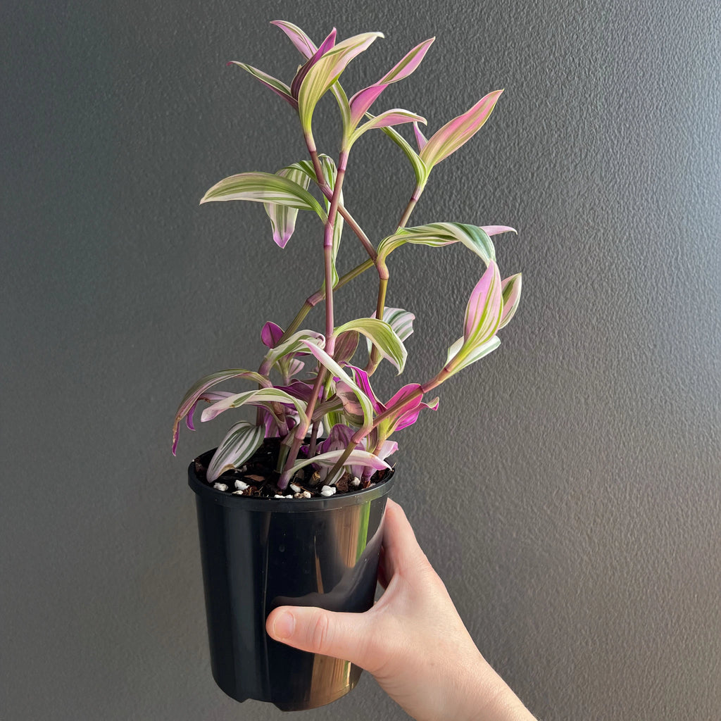 Water: Allow the top few centimetres of soil to dry before watering. Tradescantias are sensitive to overwatering, so ensure good drainage. Try not to get the leaves wet when watering.