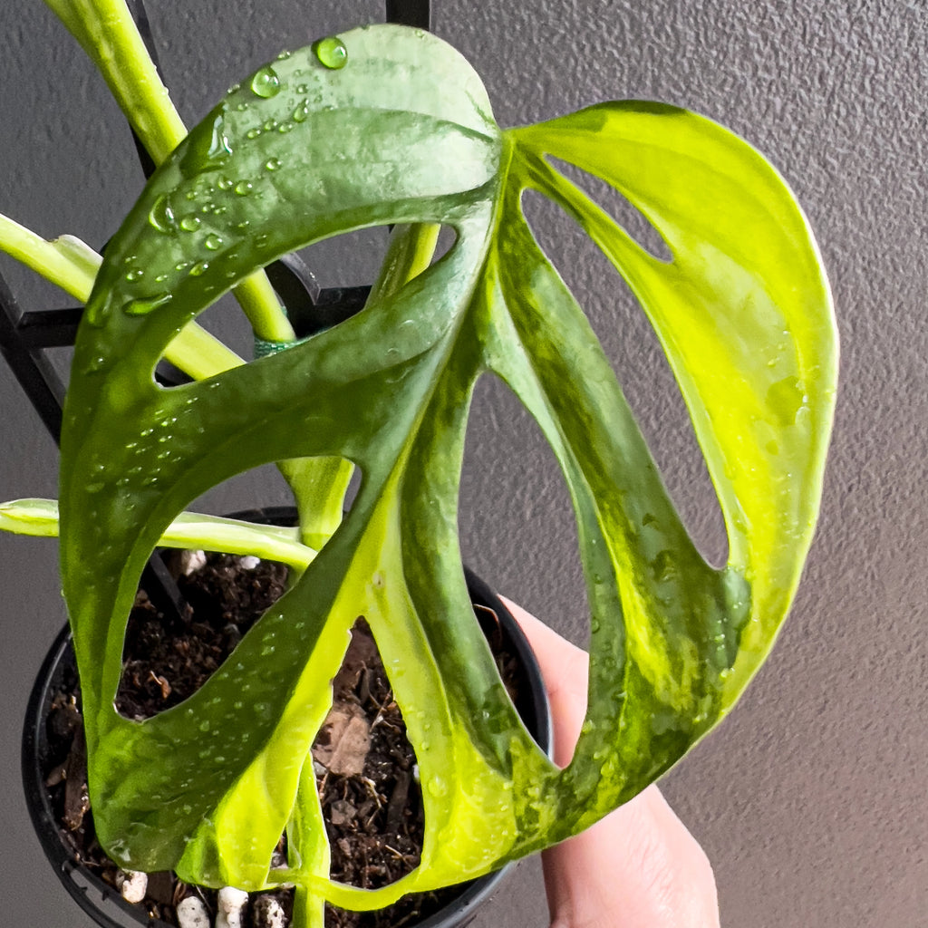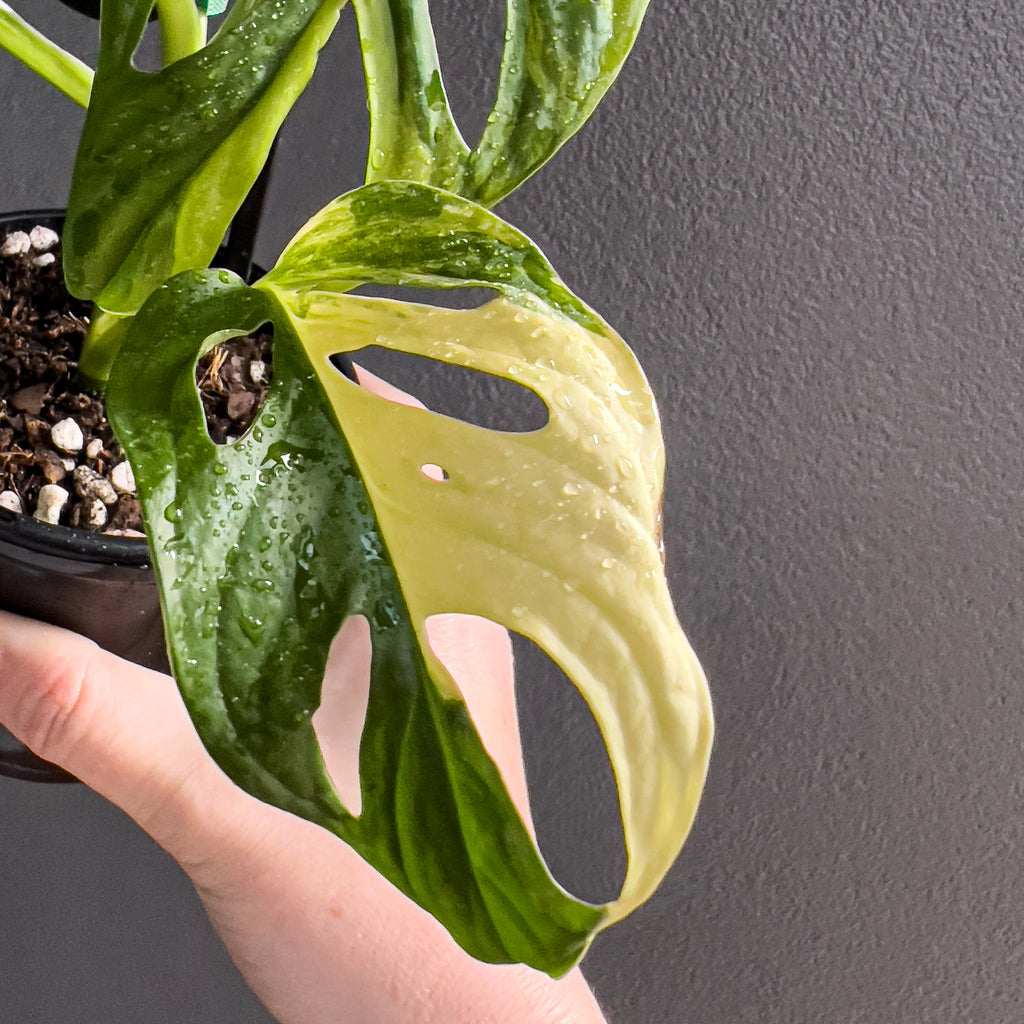 Humidity: Thrives in humidity levels above 60%. Higher humidity is especially beneficial for variegated Monsteras to encourage lush, vibrant growth and larger leaves.